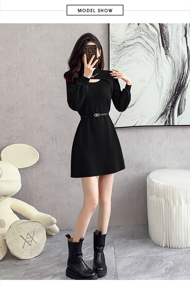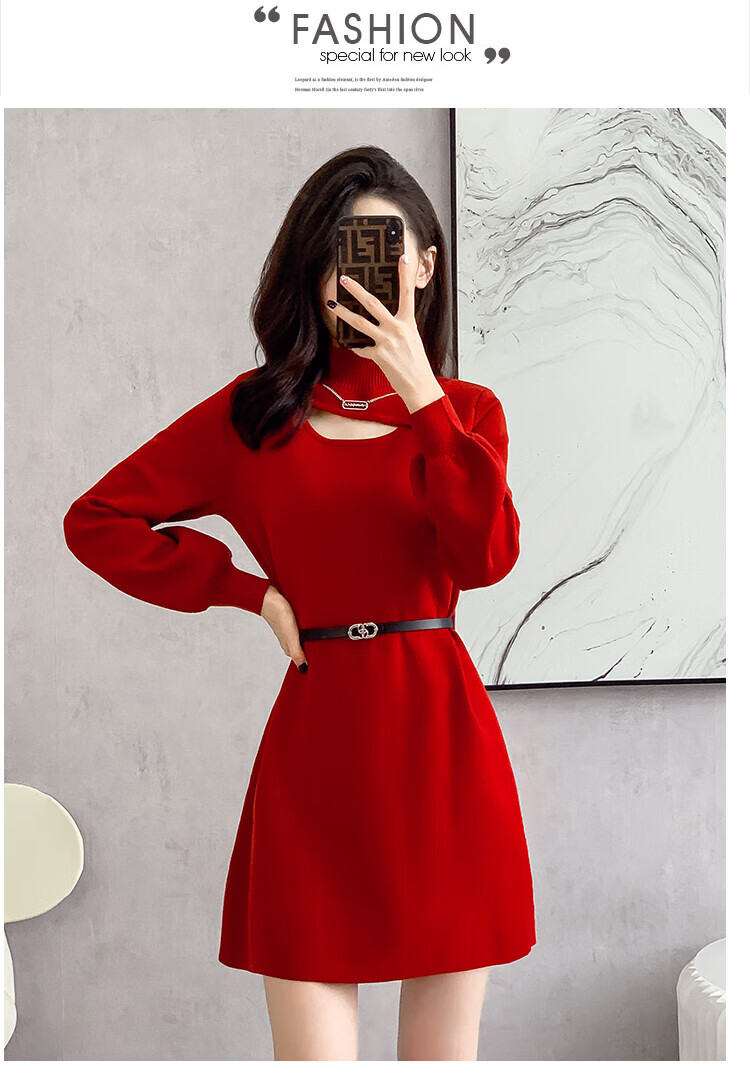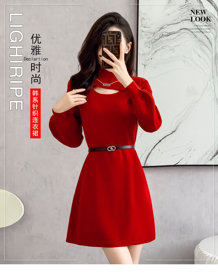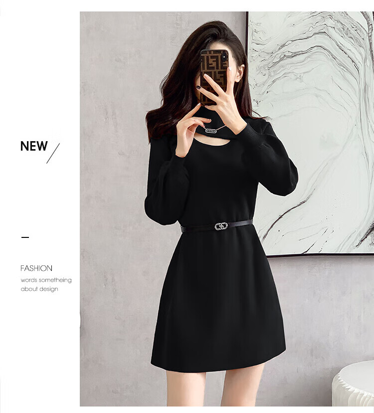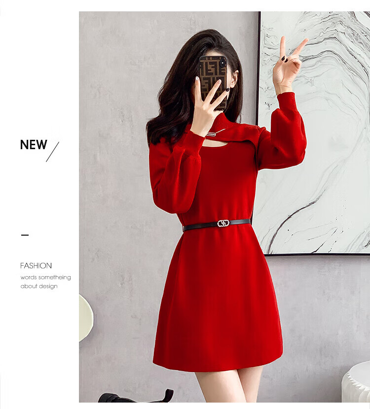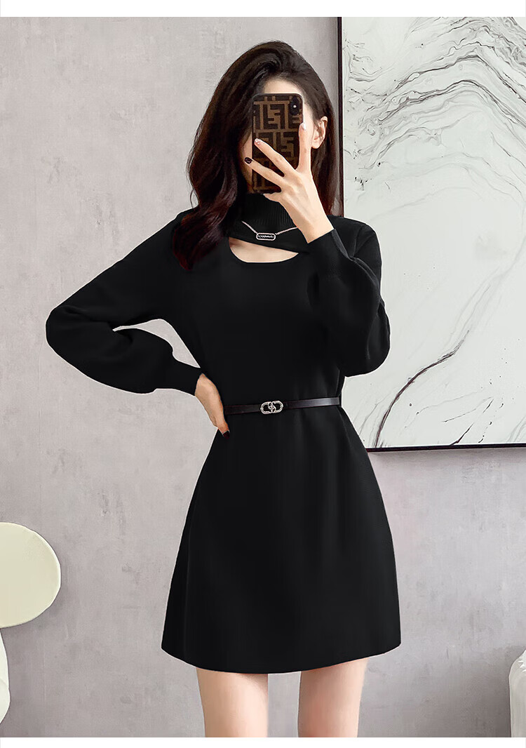 Xiao Yu (XIAOYU) 2025 Spring and Autumn New Women's Dress Small Bottoming Knitted Red Temperament Clothes Black One Size (Recommended 85-135Jin Jin is equal to 0.5 kg)