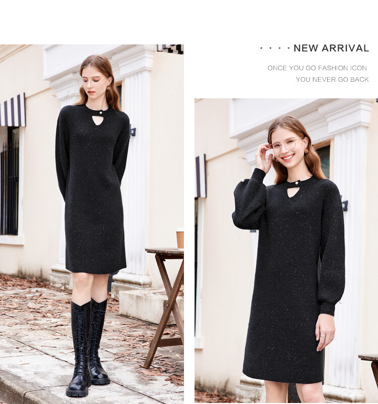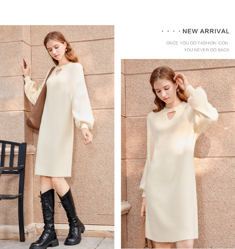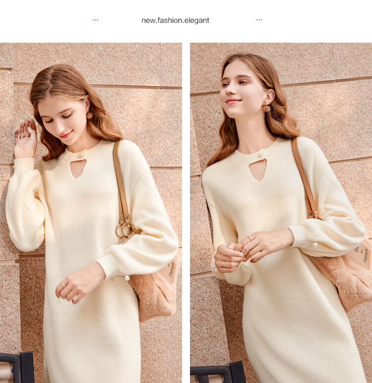 Betu women's new winter dress round neck lazy style knitted dress women 2311T69 light apricot M