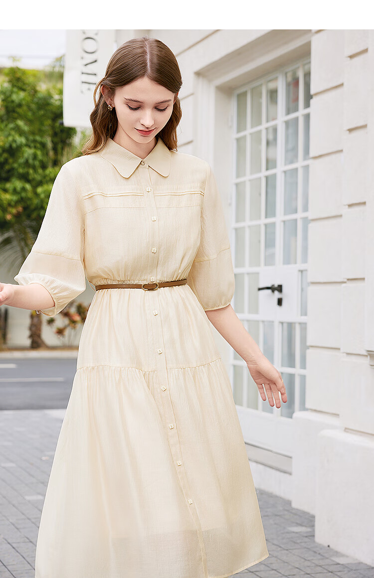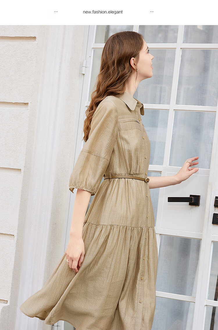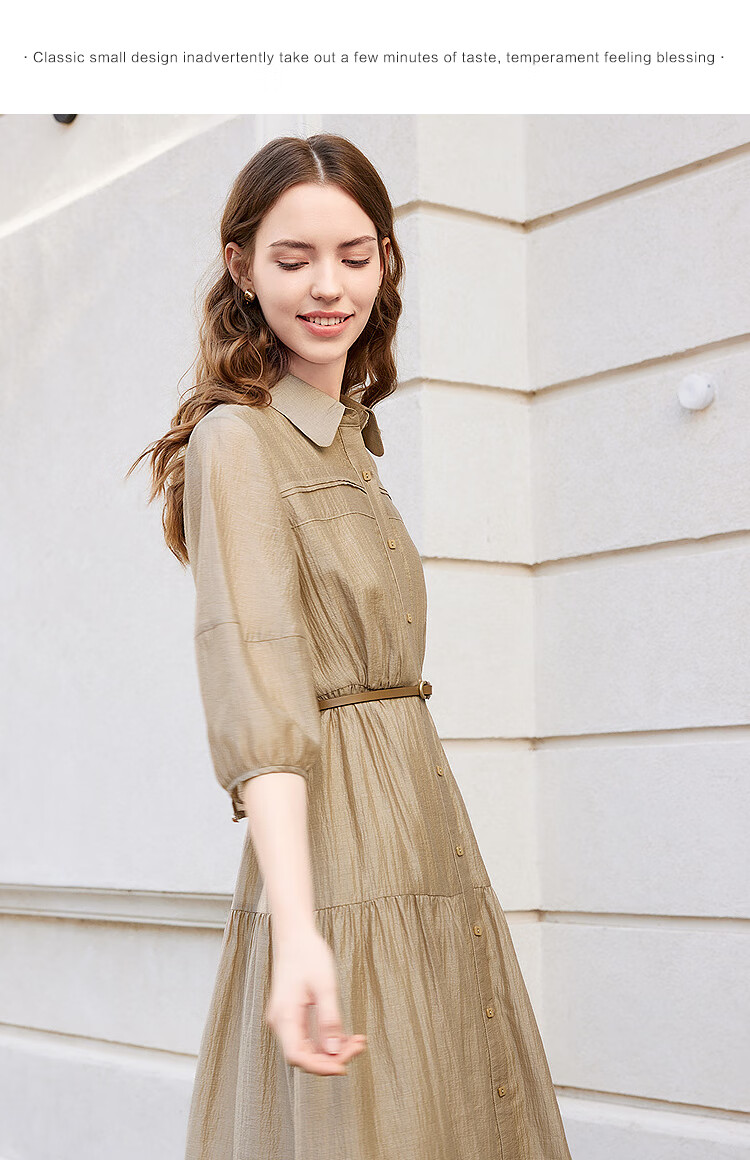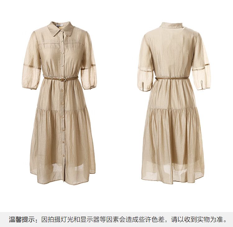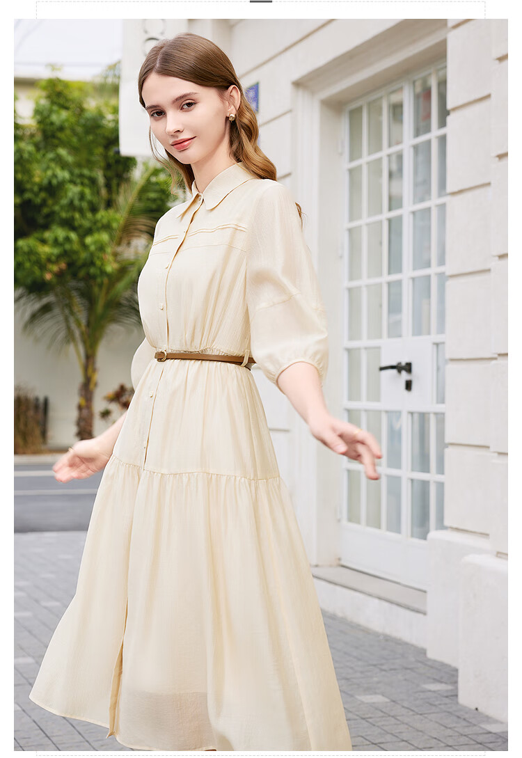 Betu women's spring new dress retro loose French waist slim dress 2402T84 apricot L