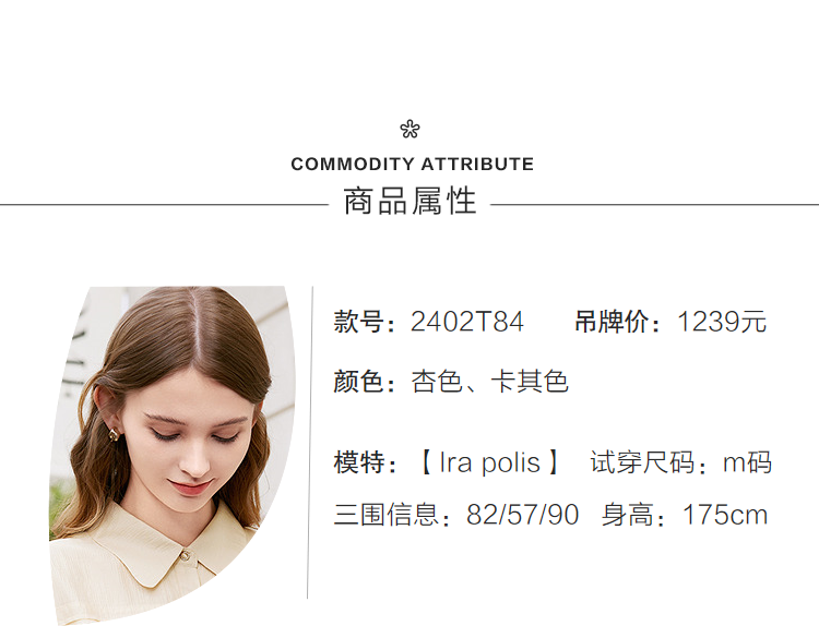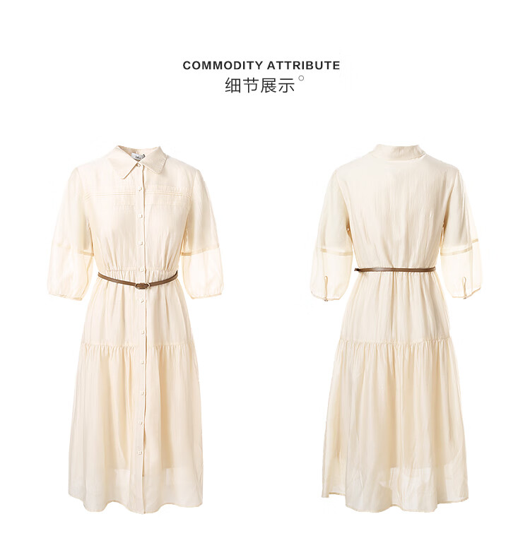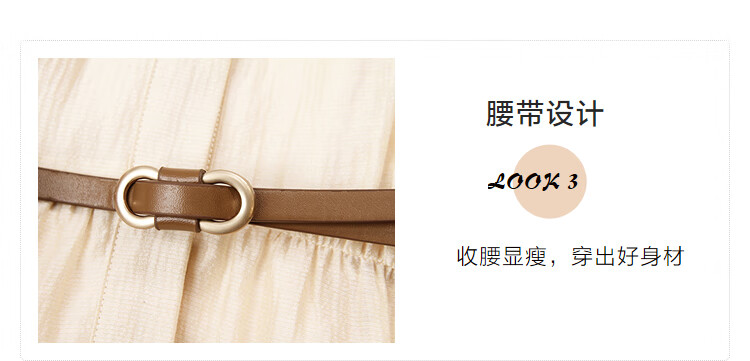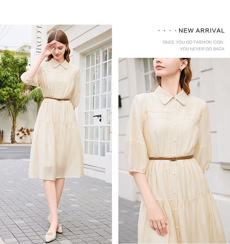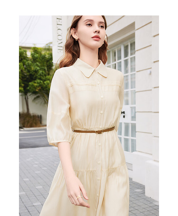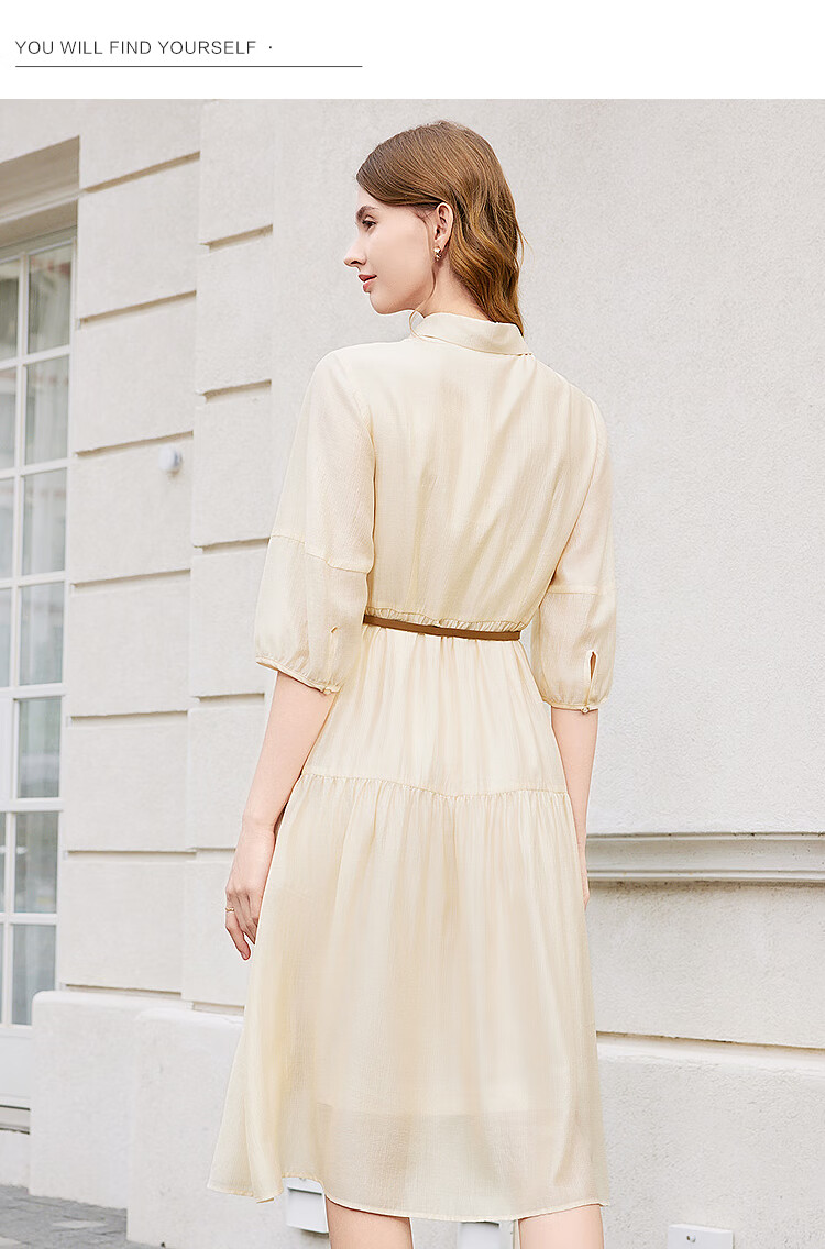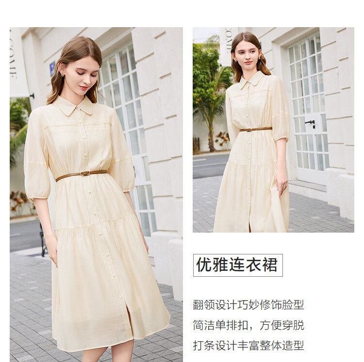 Betu women's spring new dress retro loose French waist slim dress 2402T84 apricot L