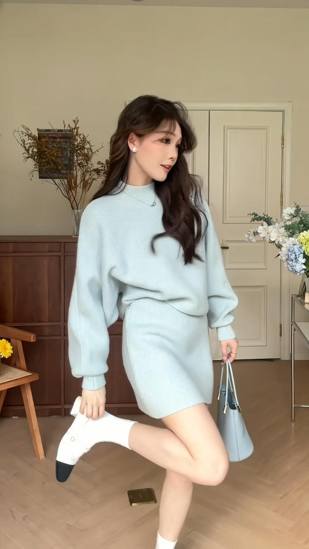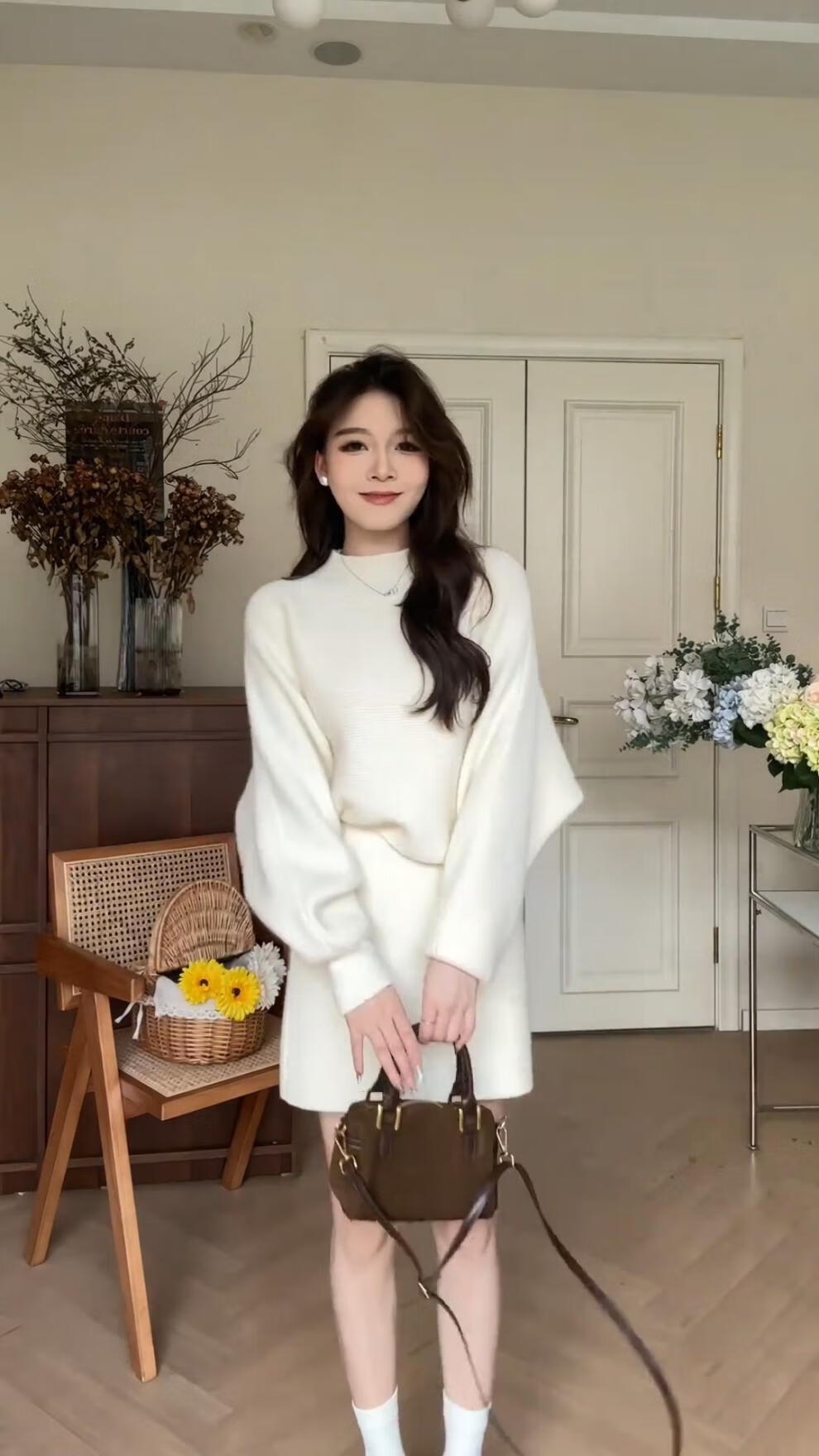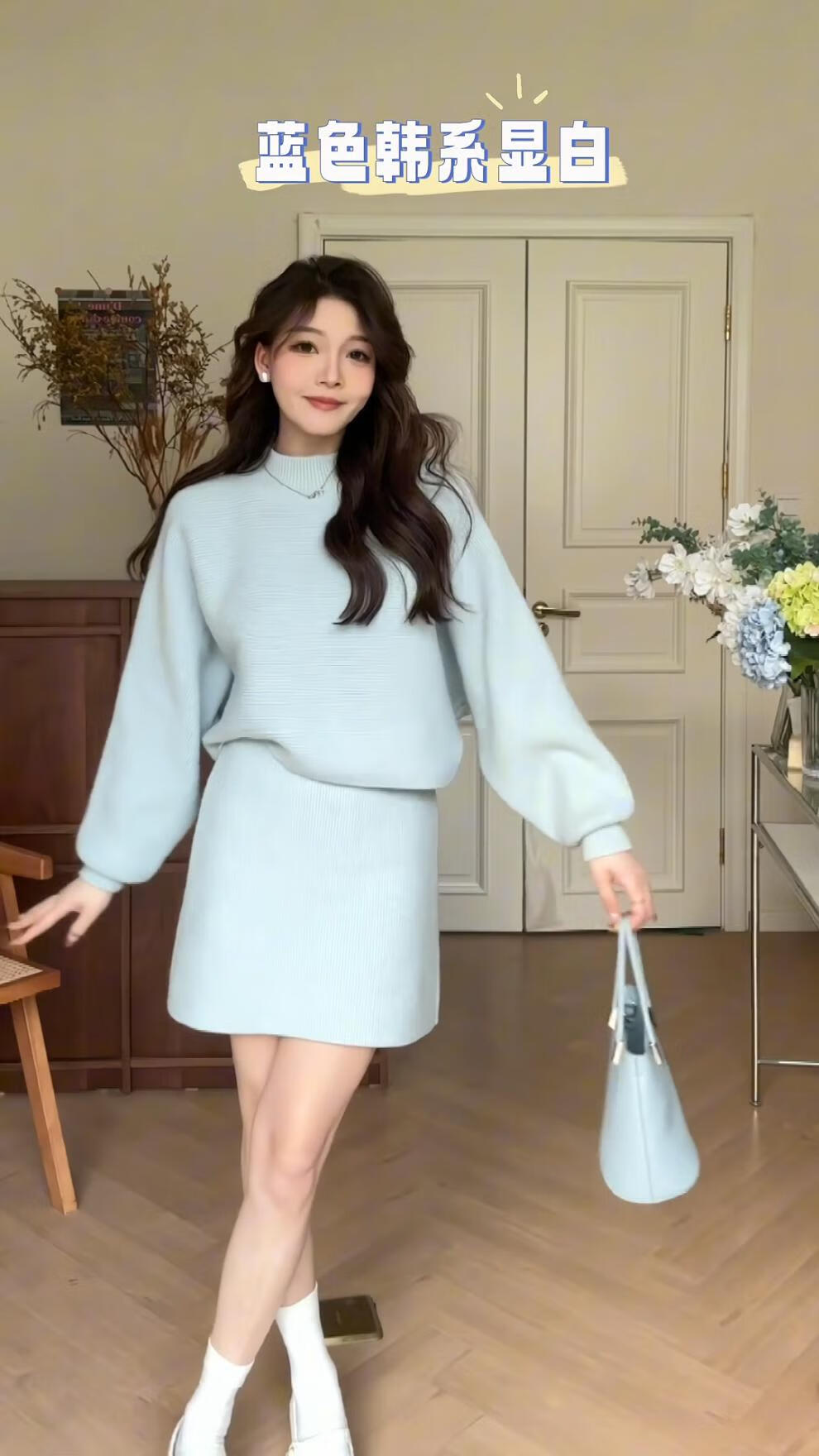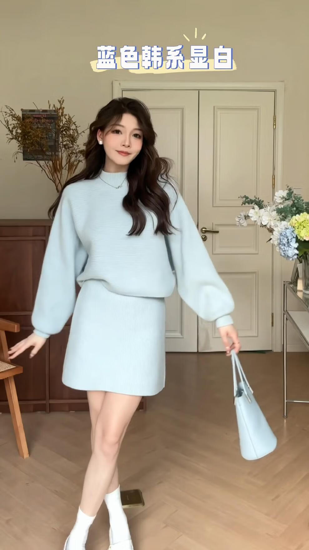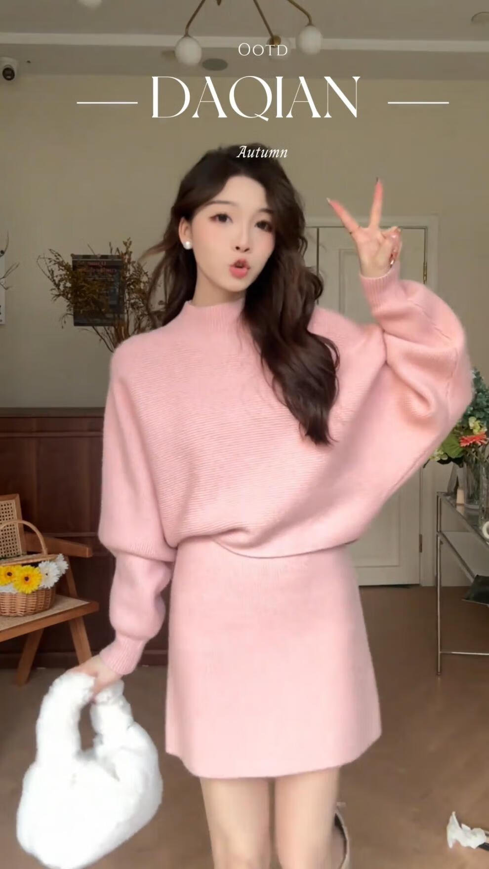 Majiaomei Knitted Dress Women's Suit 2025 Spring and Autumn New Korean Style Versatile Lazy Style Half Turtleneck Sweater Skirt Apricot Suit One Size 80-120Jin Jin is equal to 0.5 kg