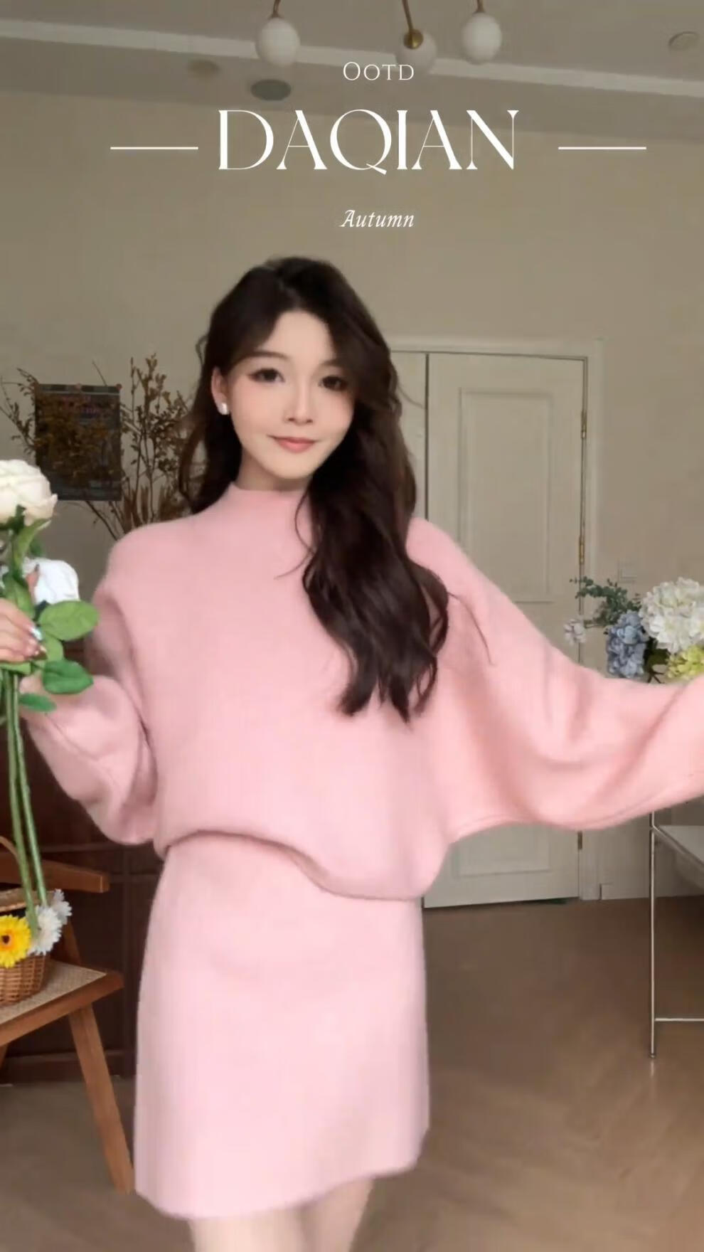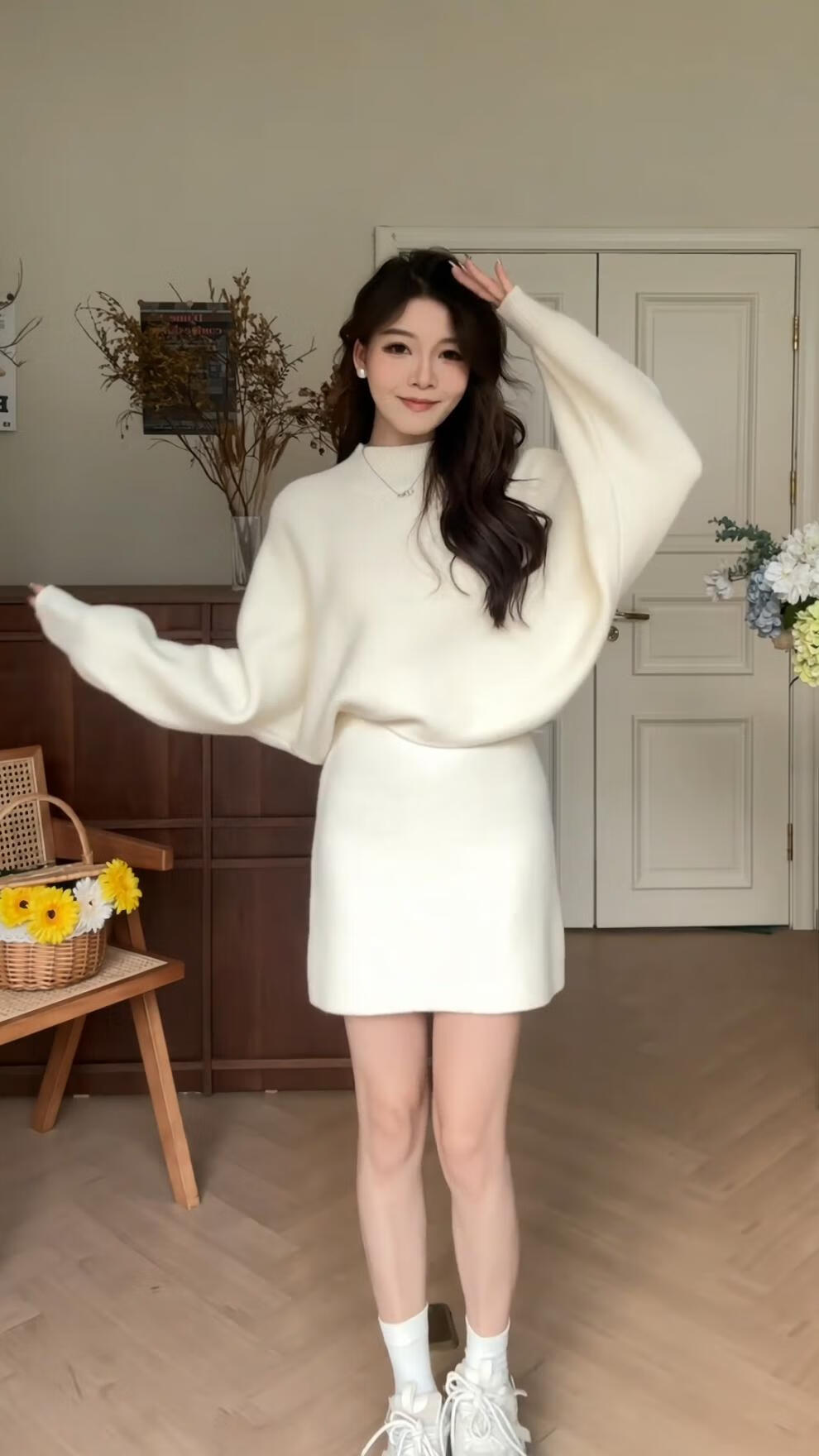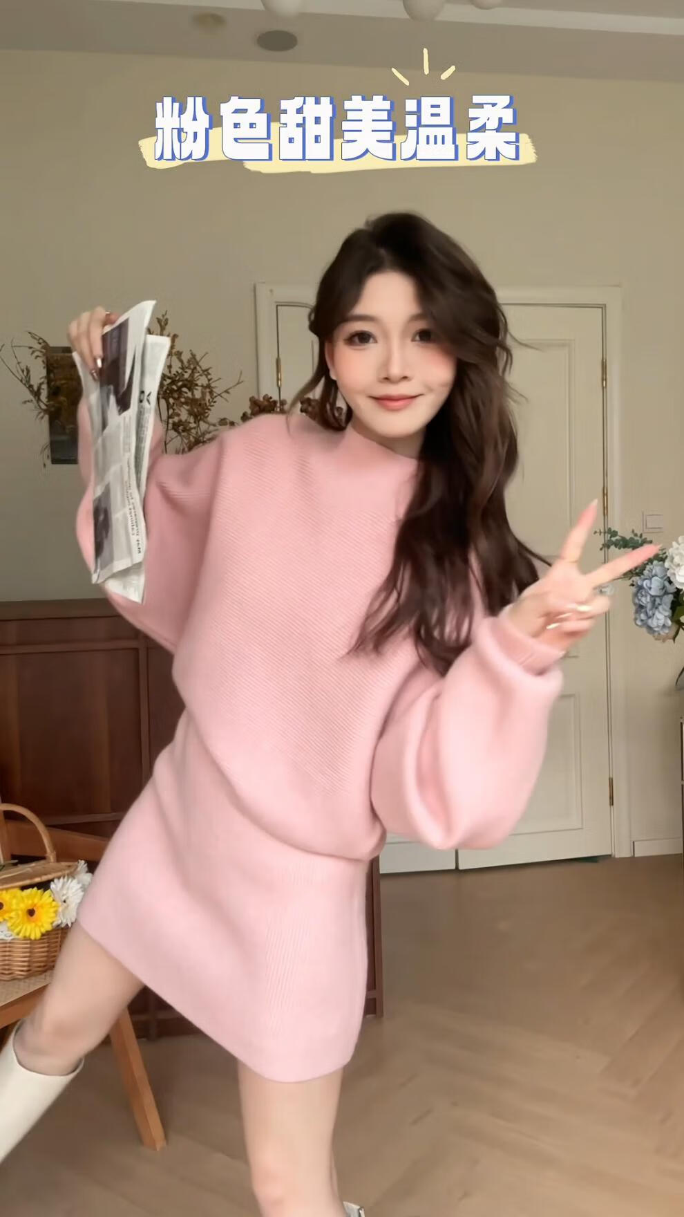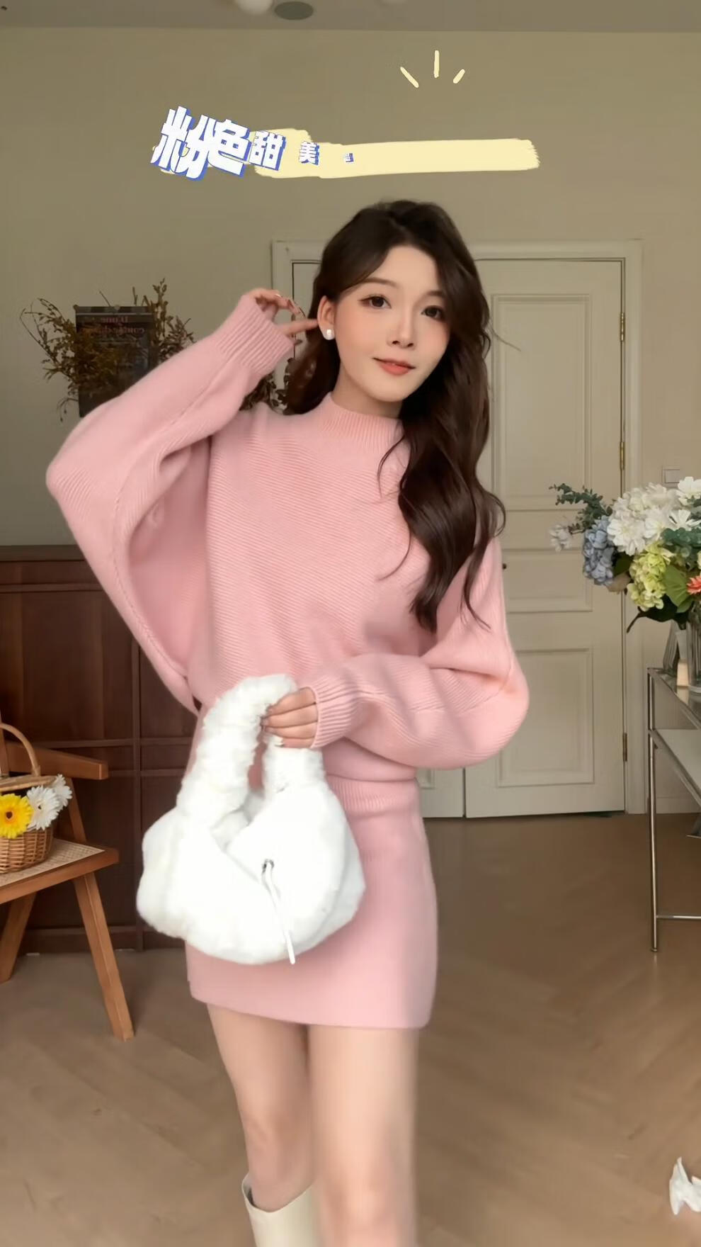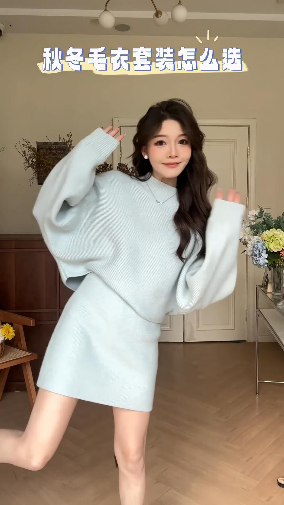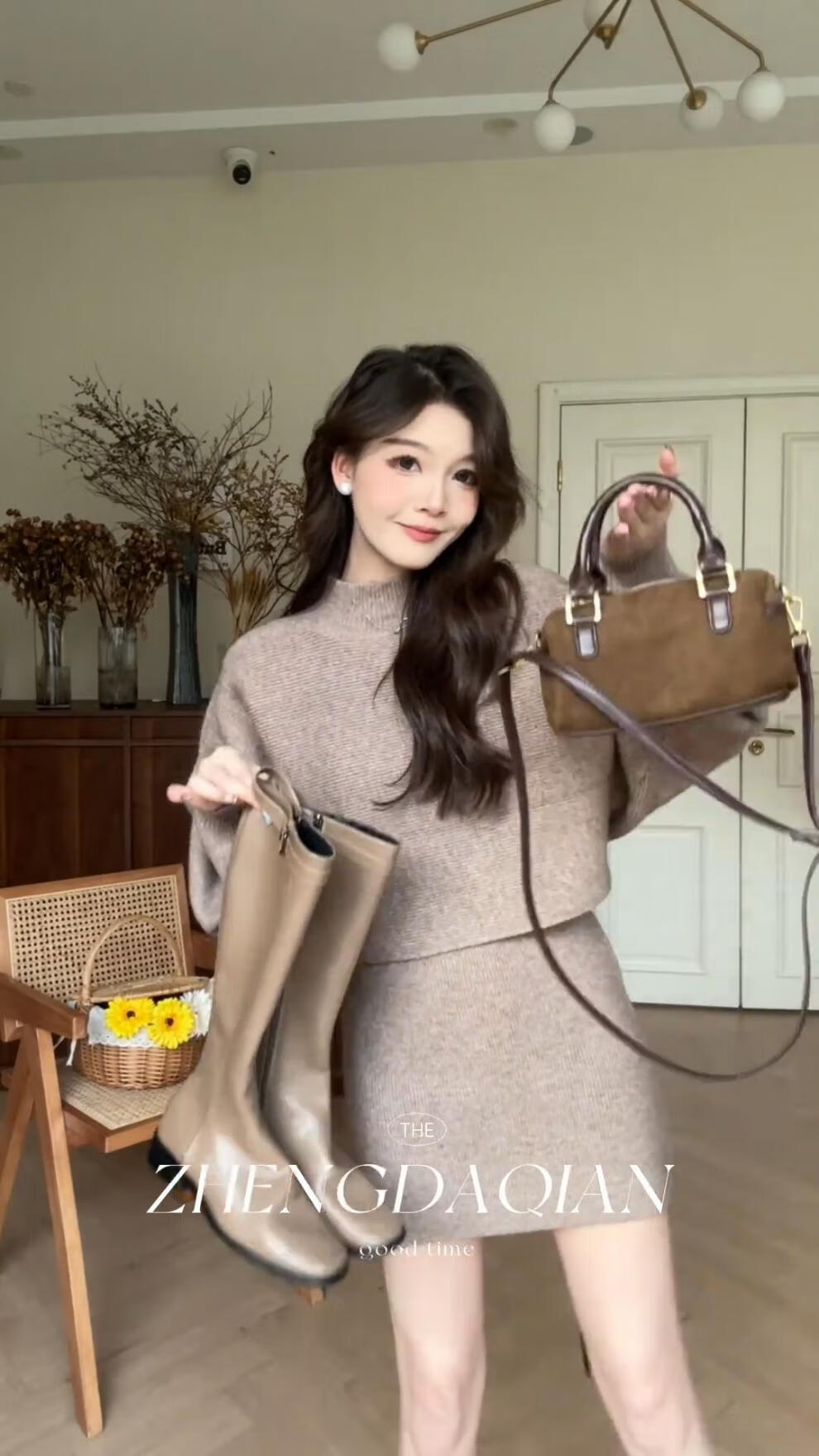 Majiaomei Knitted Dress Women's Suit 2025 Spring and Autumn New Korean Style Versatile Lazy Style Half Turtleneck Sweater Skirt Apricot Suit One Size 80-120Jin Jin is equal to 0.5 kg