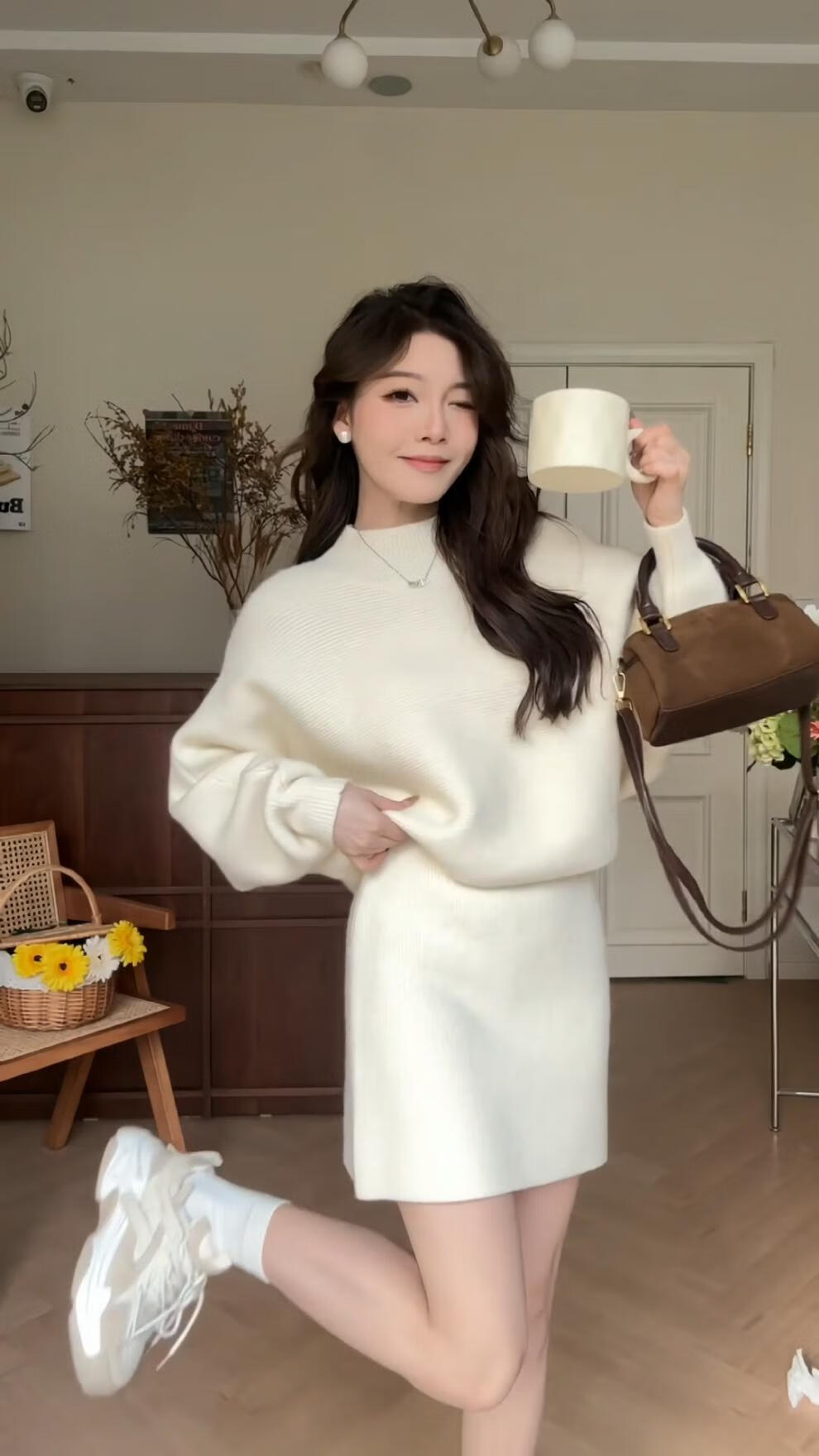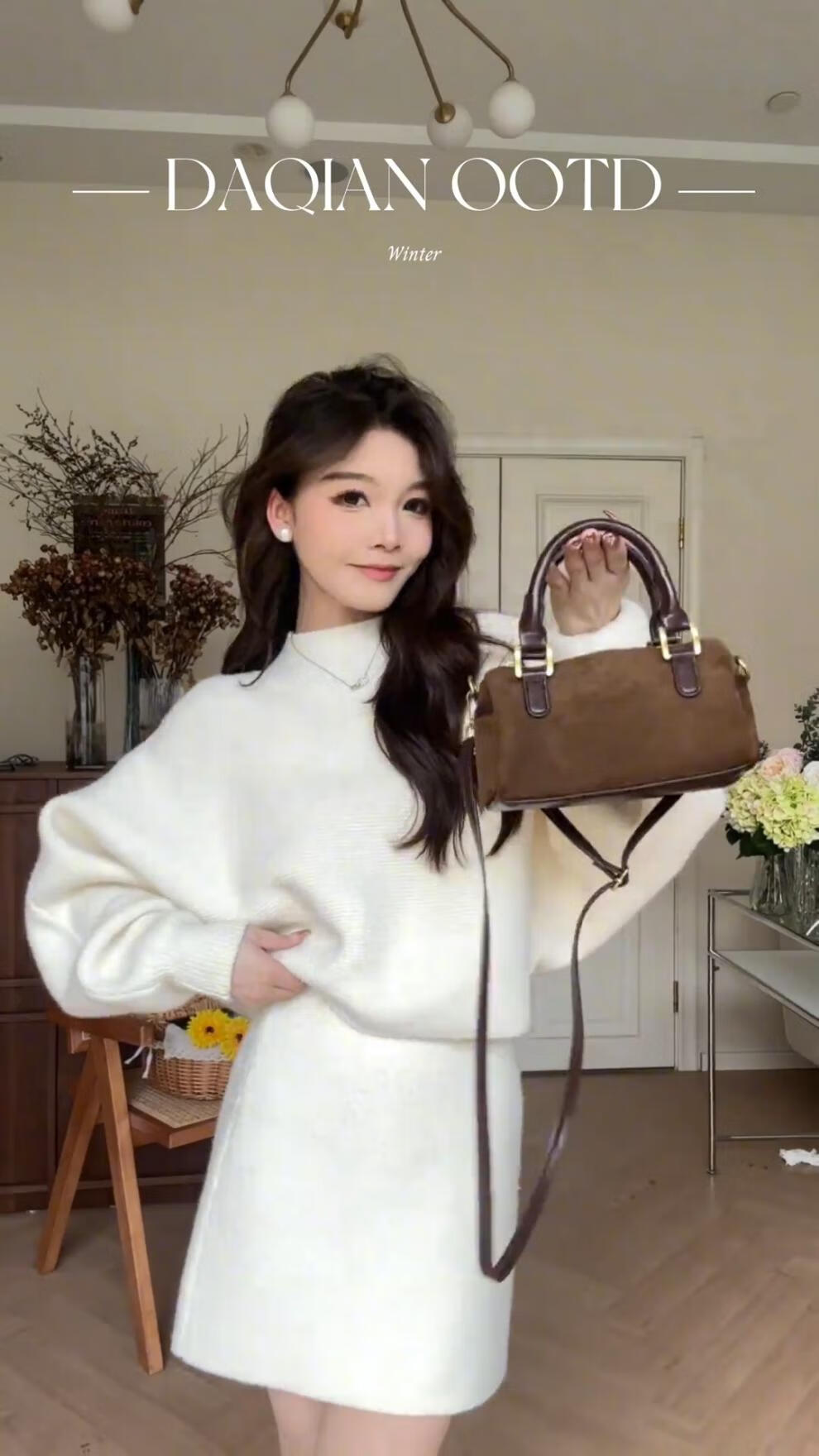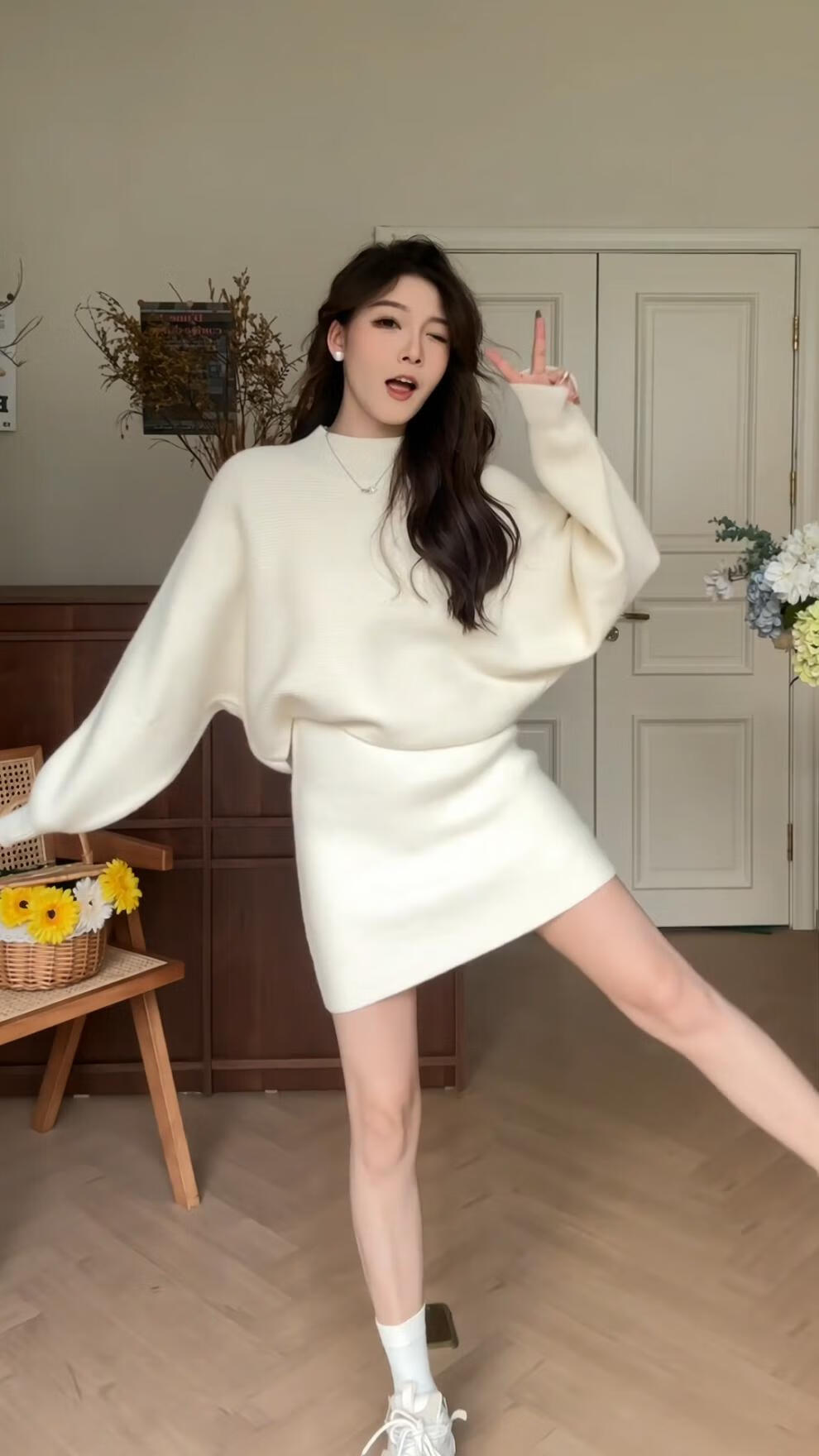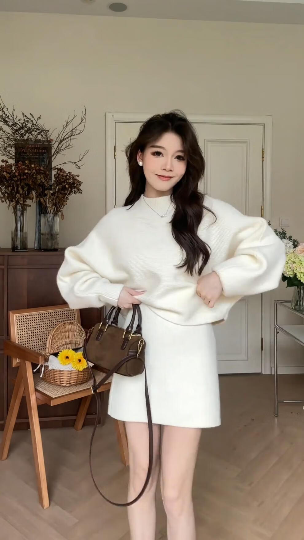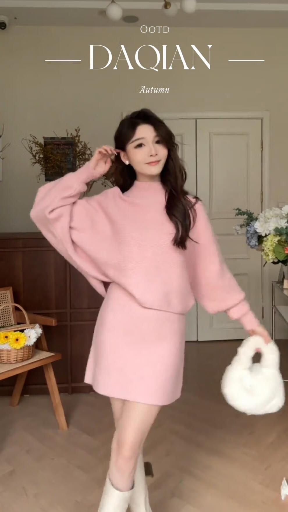 Majiaomei Knitted Dress Women's Suit 2025 Spring and Autumn New Korean Style Versatile Lazy Style Half Turtleneck Sweater Skirt Apricot Suit One Size 80-120Jin Jin is equal to 0.5 kg
