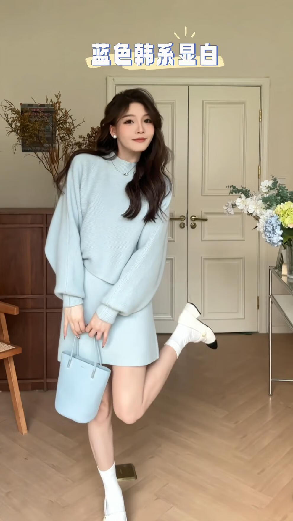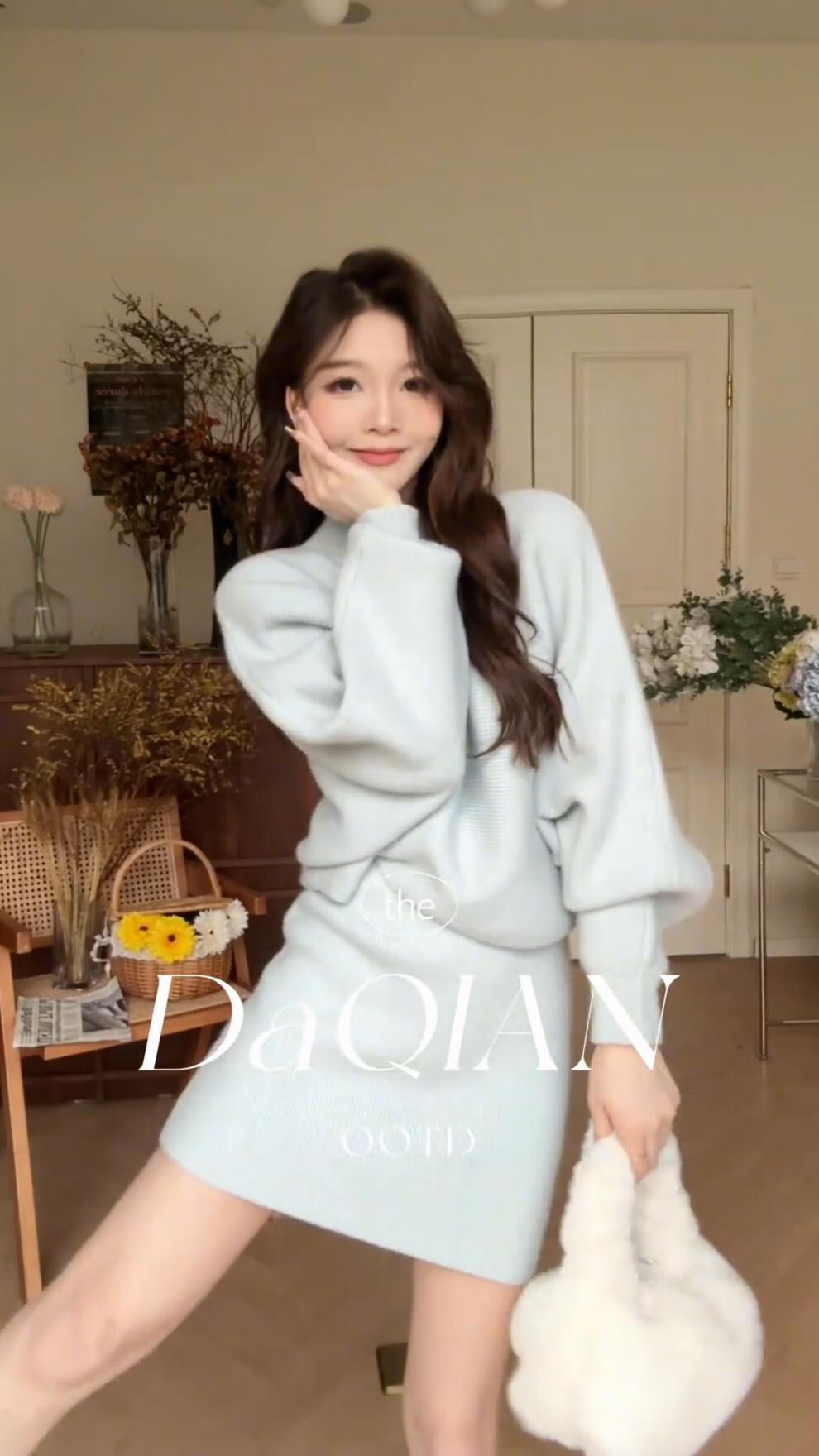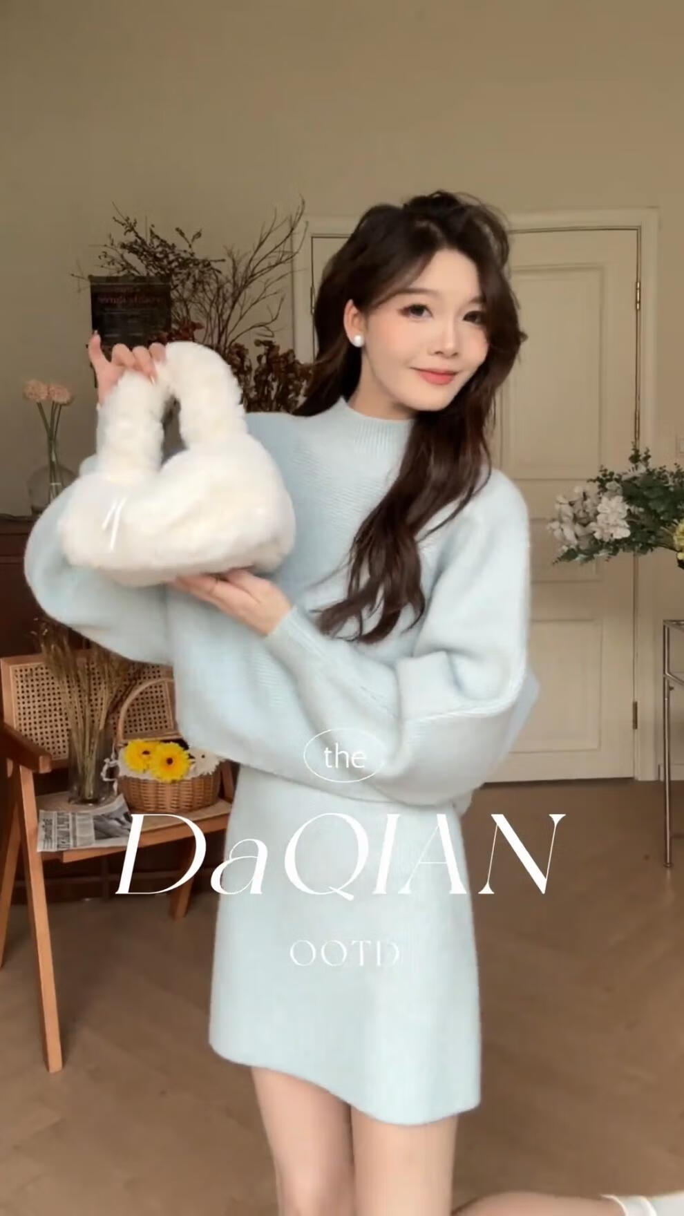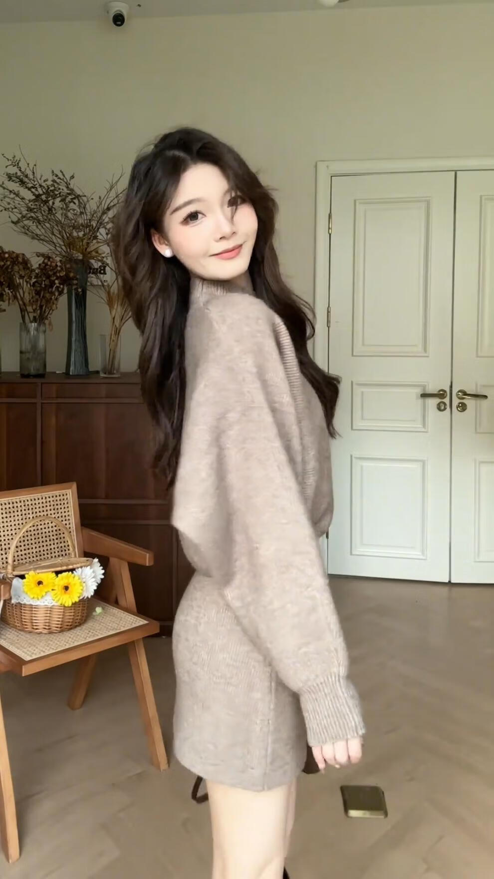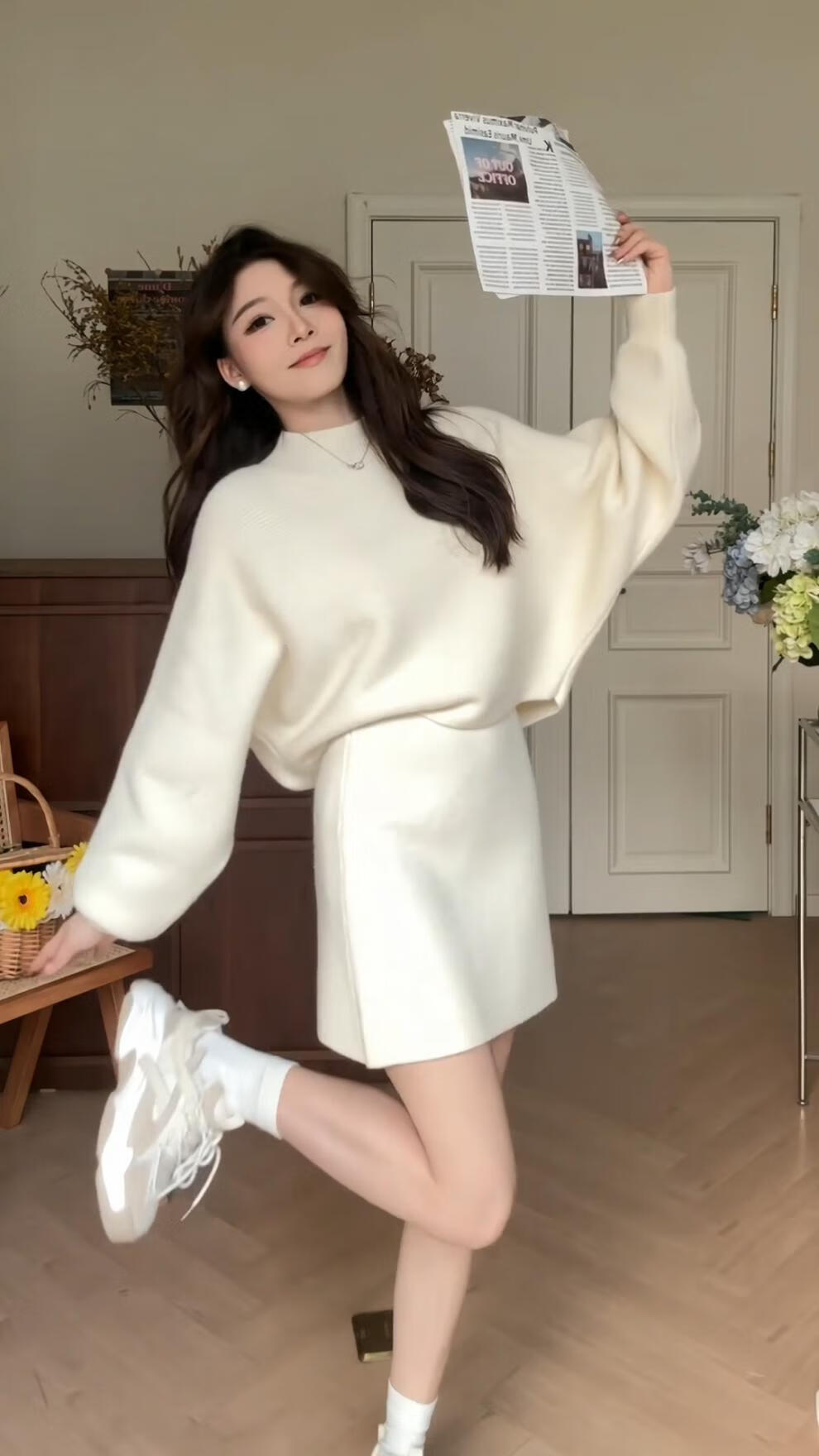 Majiaomei Knitted Dress Women's Suit 2025 Spring and Autumn New Korean Style Versatile Lazy Style Half Turtleneck Sweater Skirt Apricot Suit One Size 80-120Jin Jin is equal to 0.5 kg