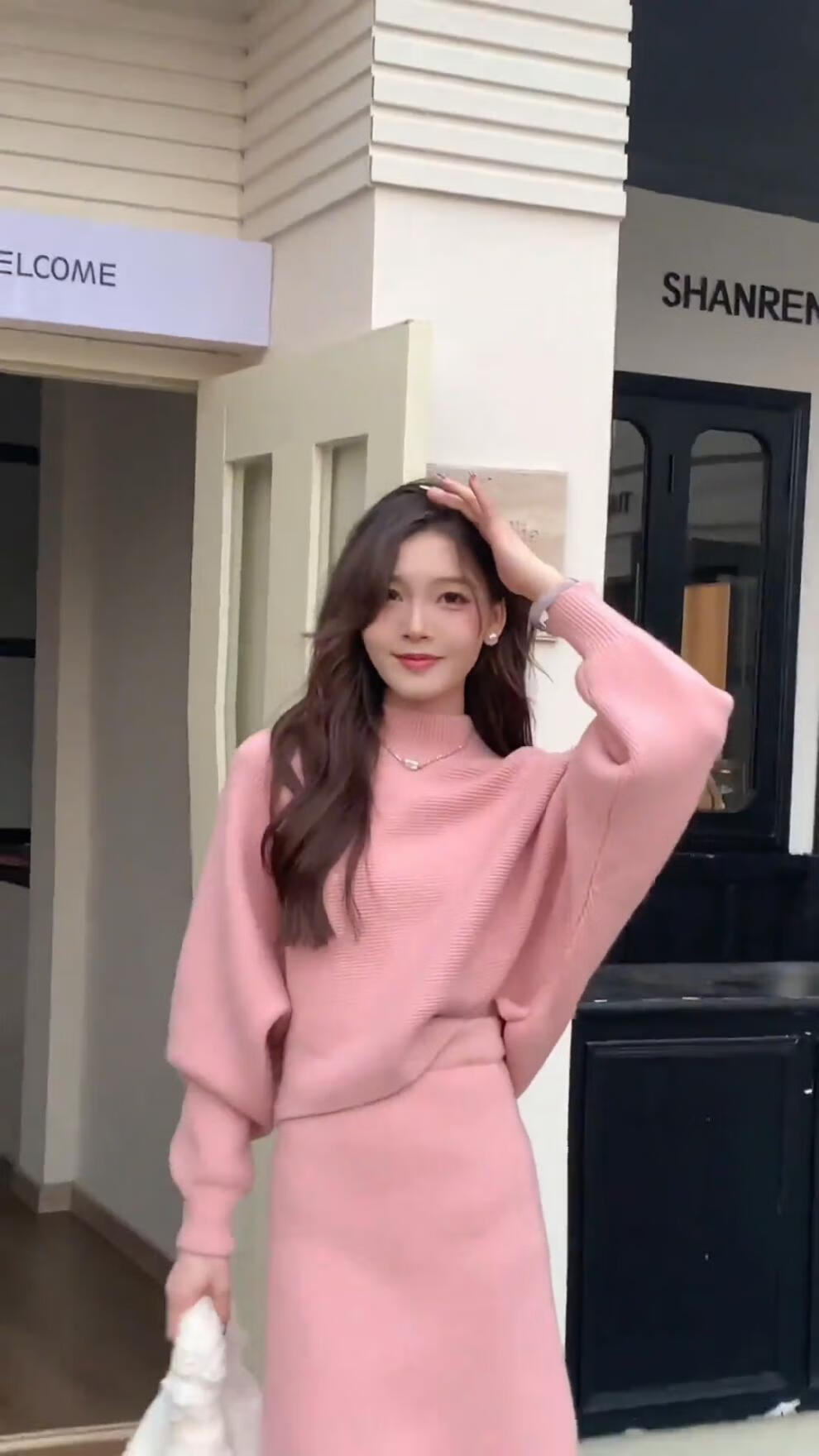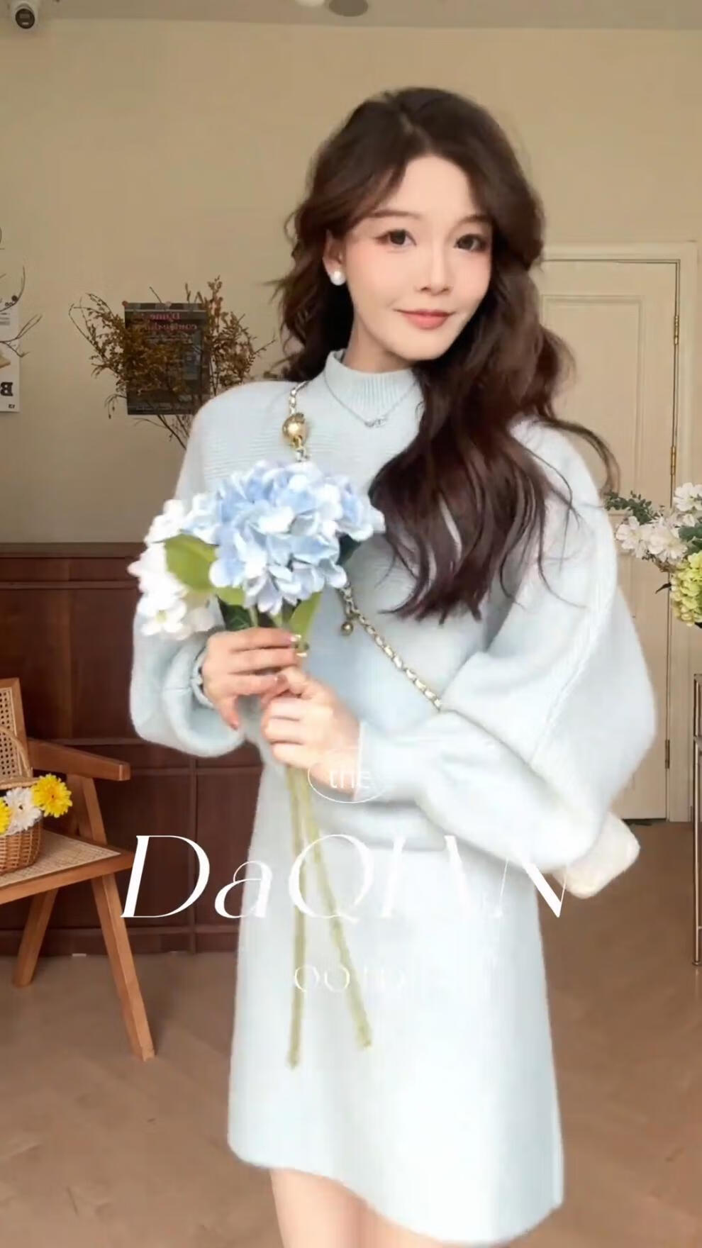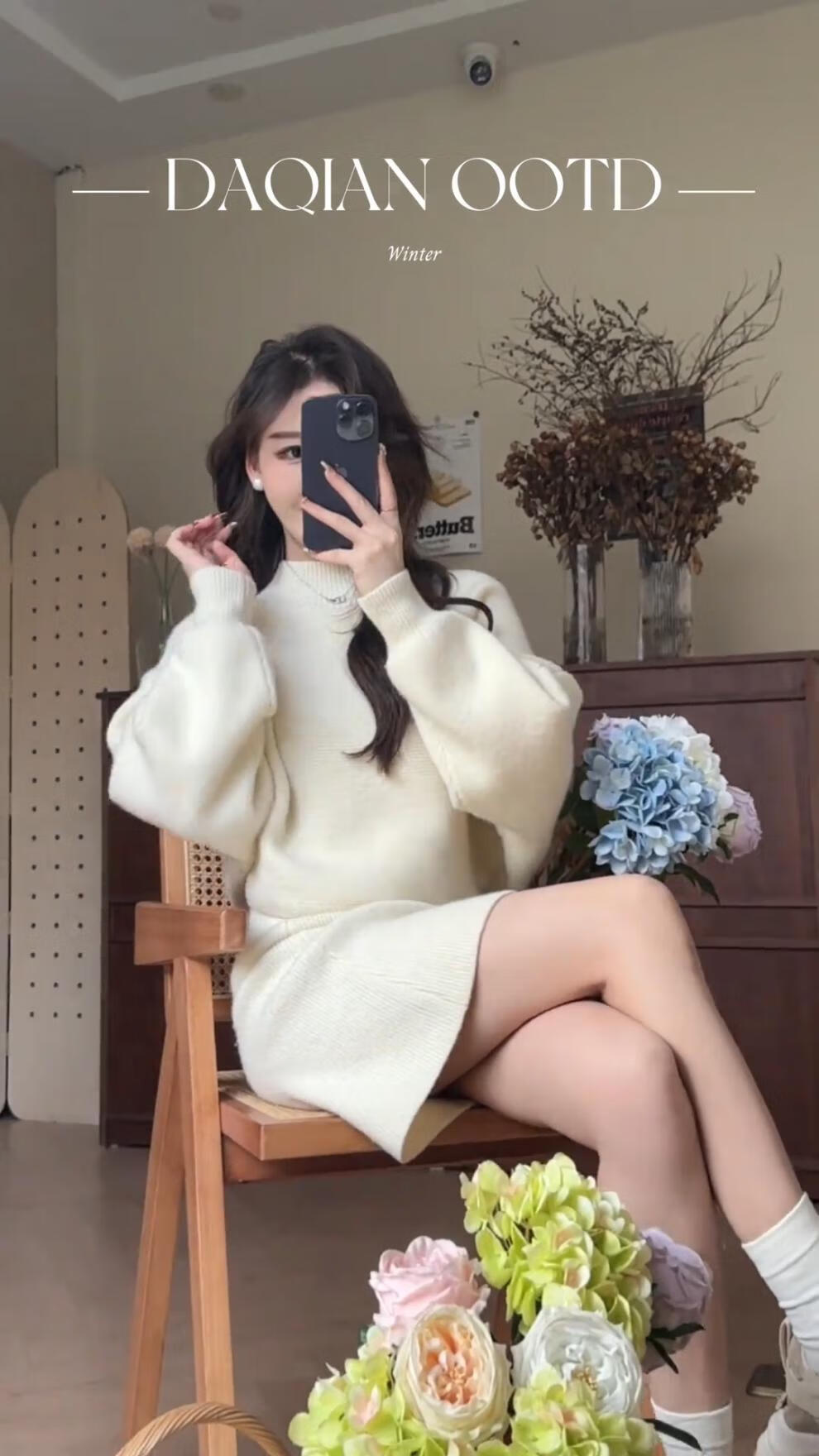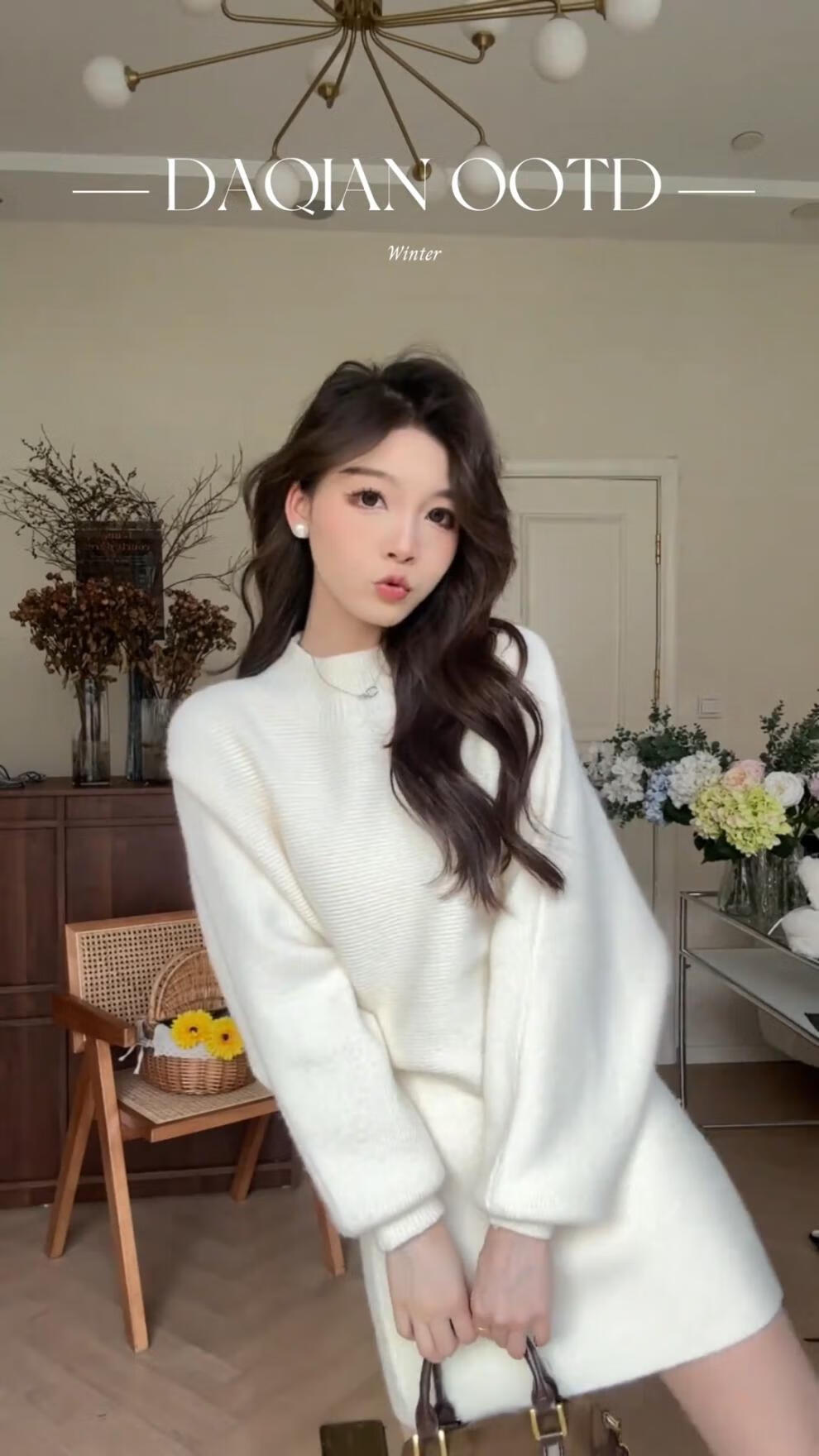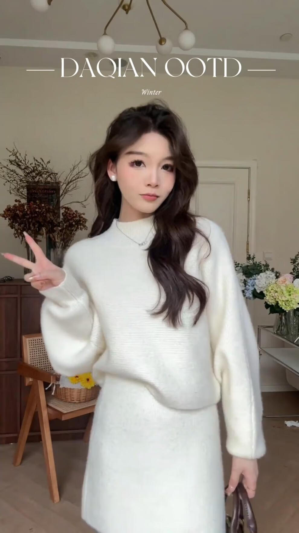 Majiaomei Knitted Dress Women's Suit 2025 Spring and Autumn New Korean Style Versatile Lazy Style Half Turtleneck Sweater Skirt Apricot Suit One Size 80-120Jin Jin is equal to 0.5 kg