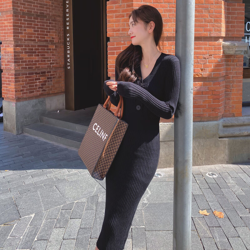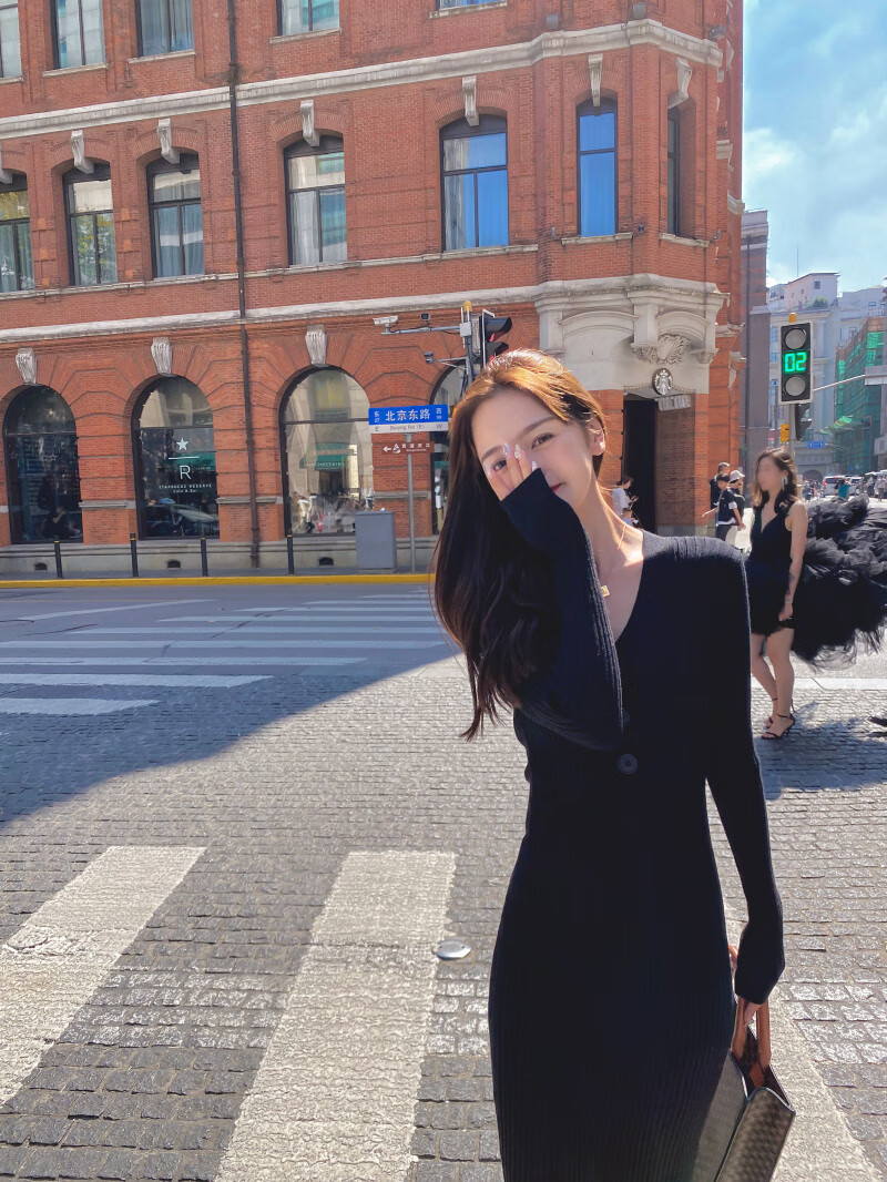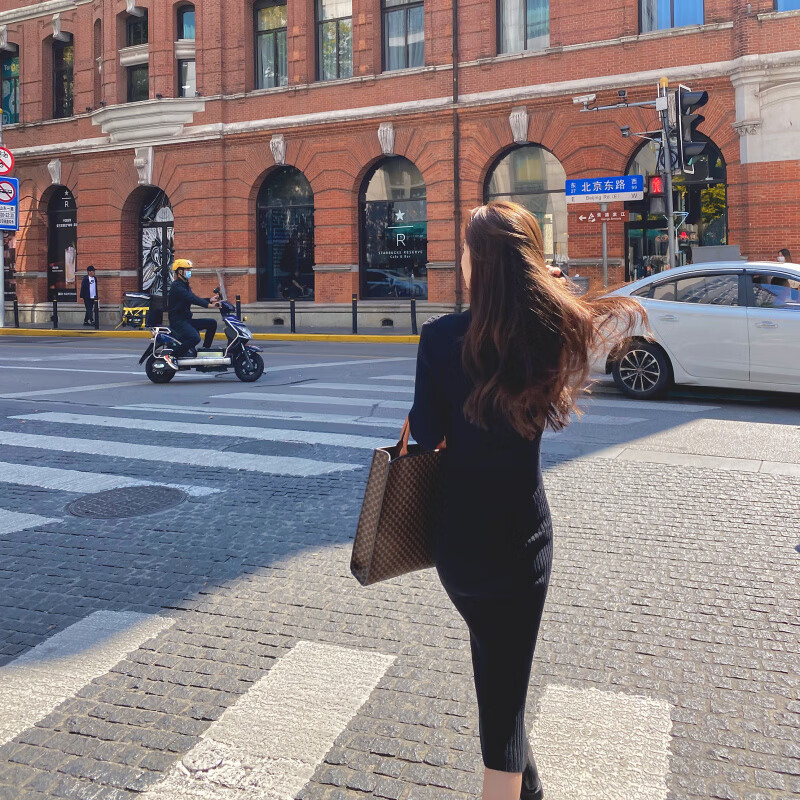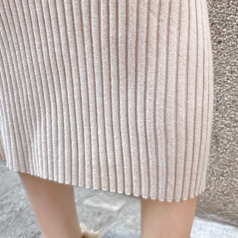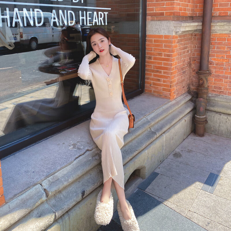 Xiao Yu 2025 spring and autumn new women's long-sleeved dress small fashion hip-hugging A-line temperament clothes apricot one size fits all 85-125 Jin Jin is equal to 0.5 kg