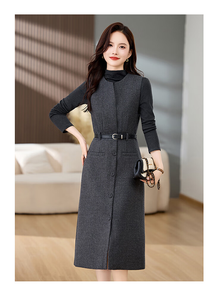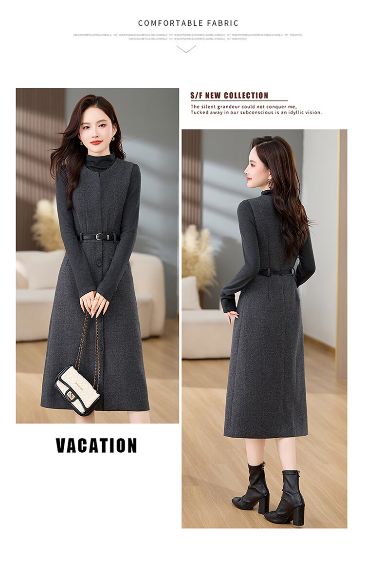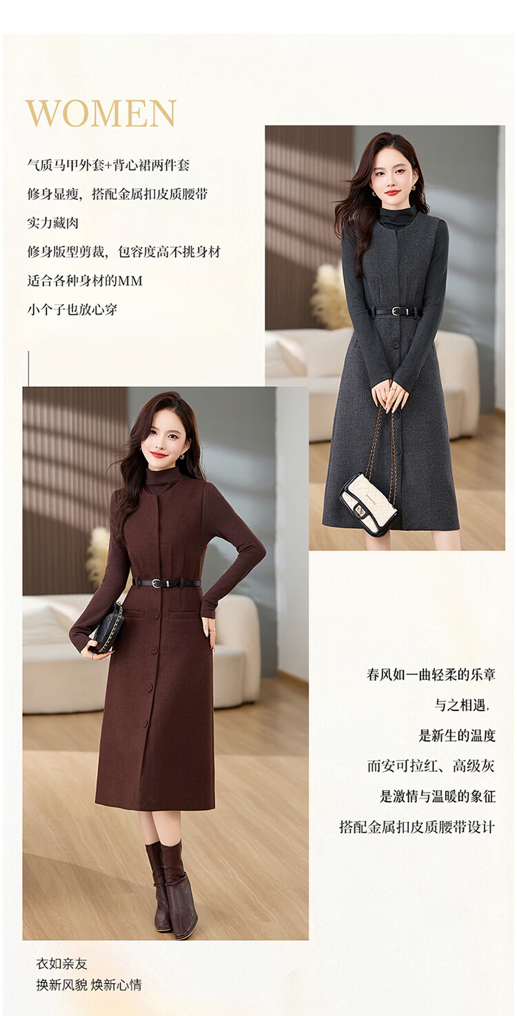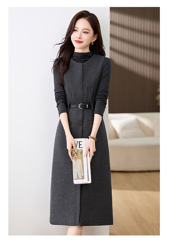 Bailanjiao high-end western-style woolen thickened suspender vest dress two-piece set for women 2025 spring and autumn new suit skirt gray XL