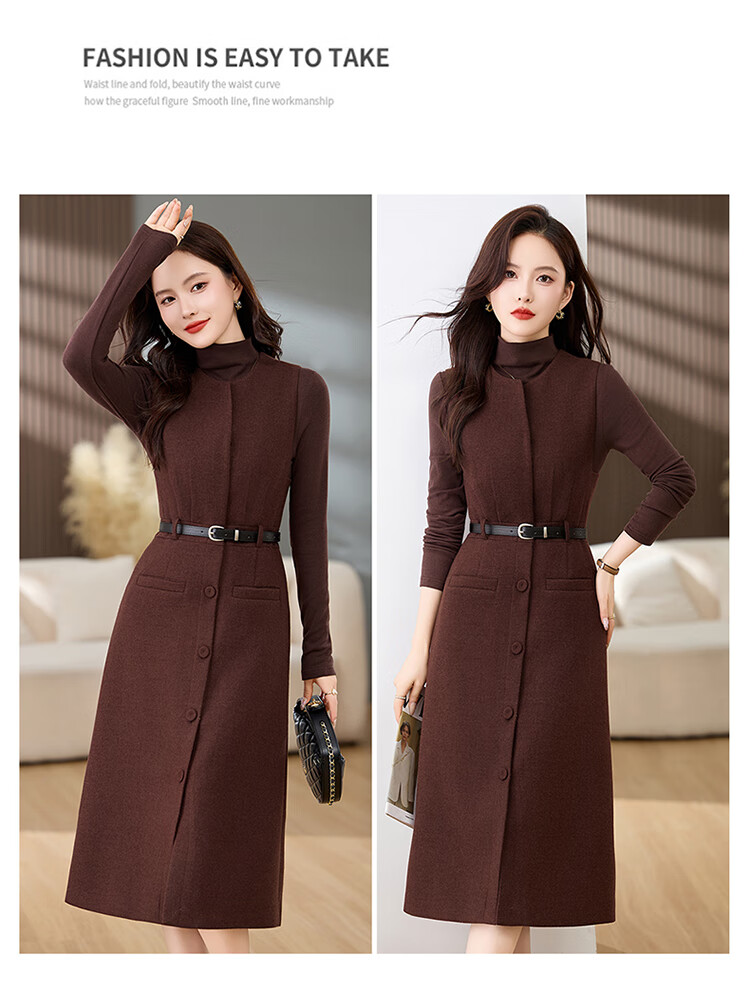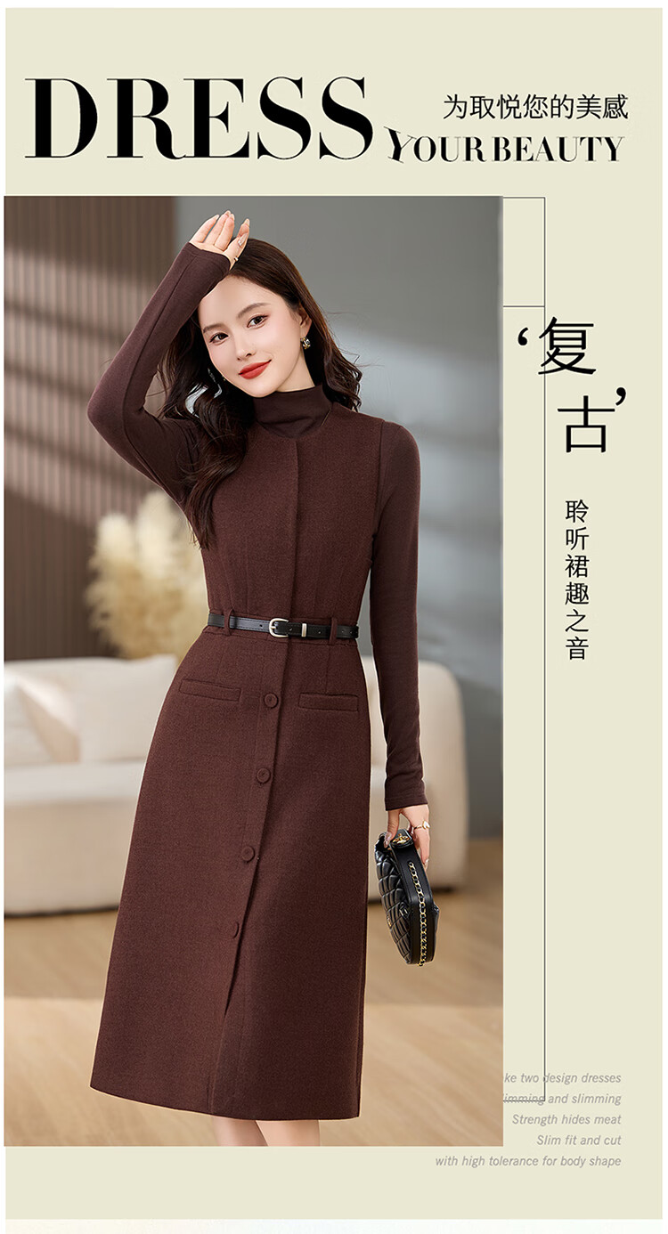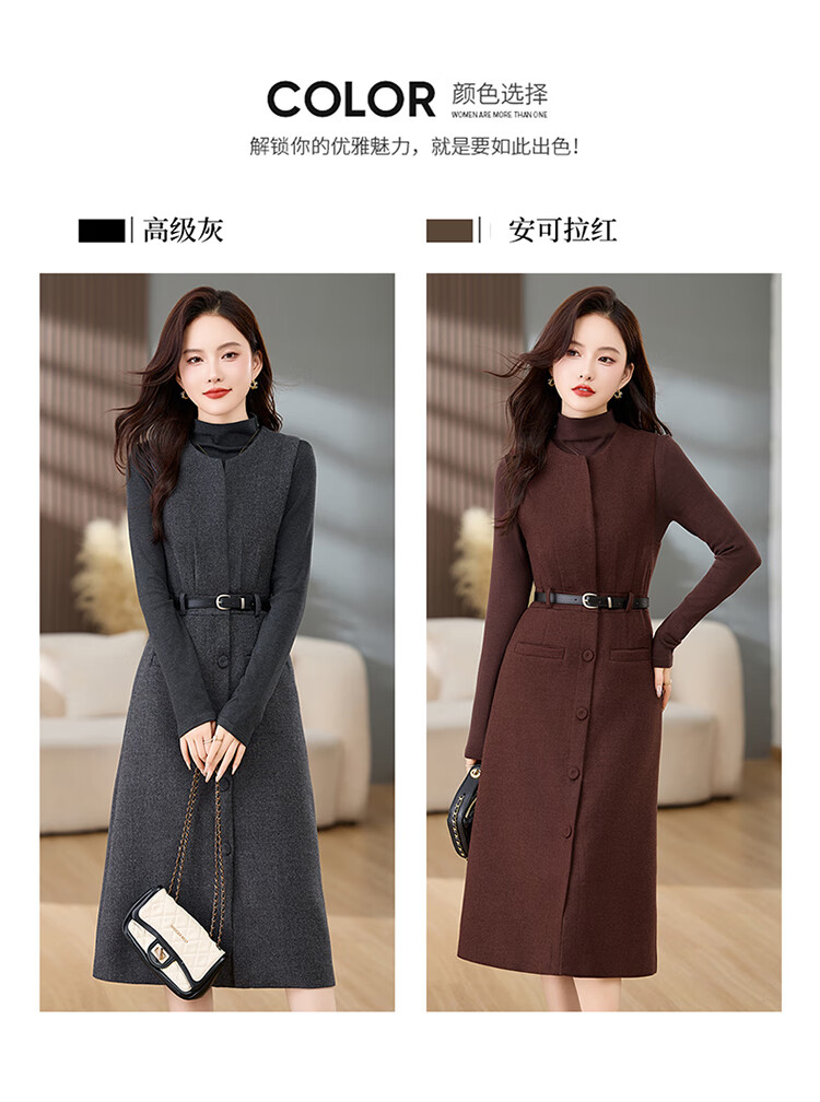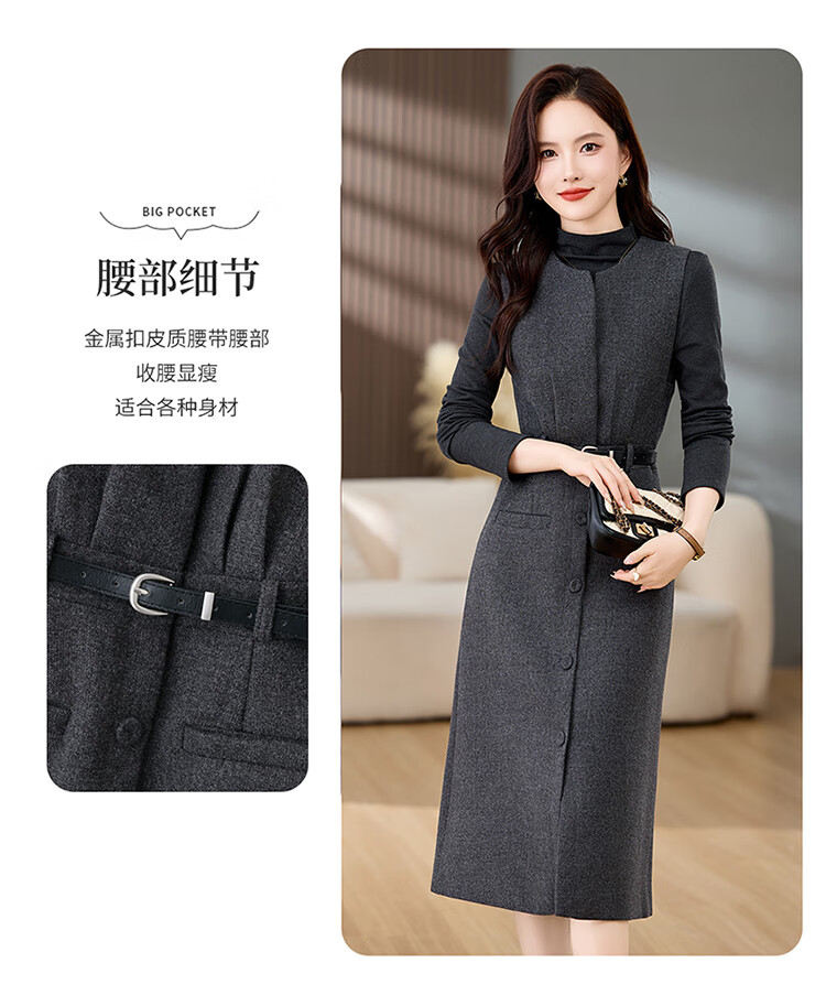 Bailanjiao high-end western-style woolen thickened suspender vest dress two-piece set for women 2025 spring and autumn new suit skirt gray XL
