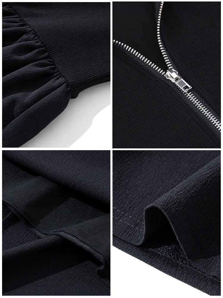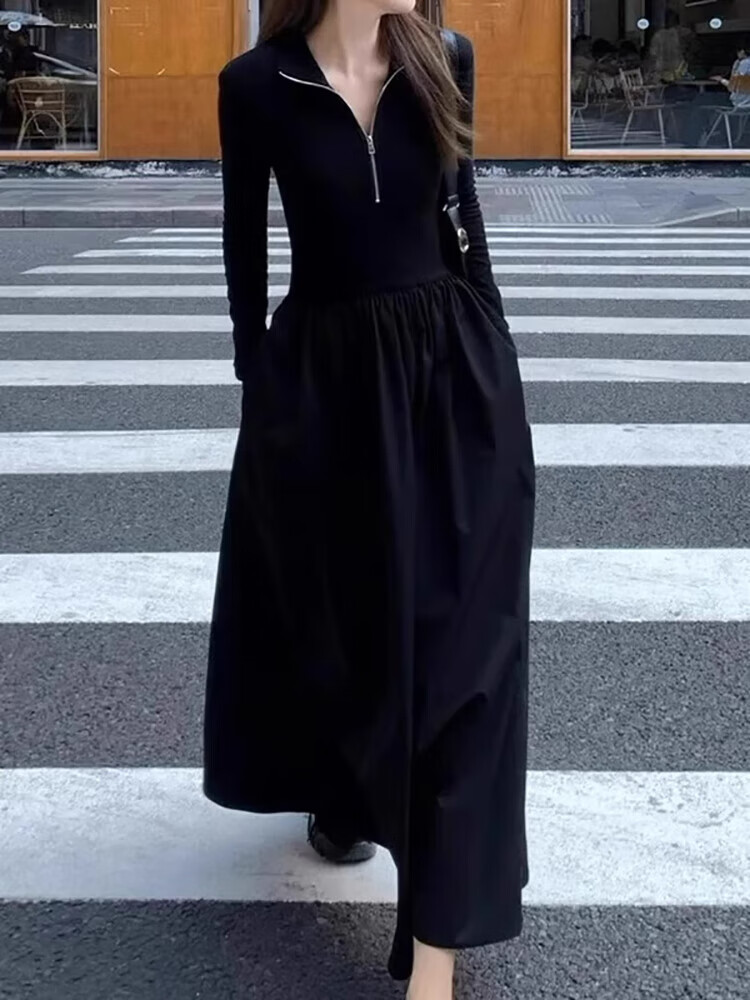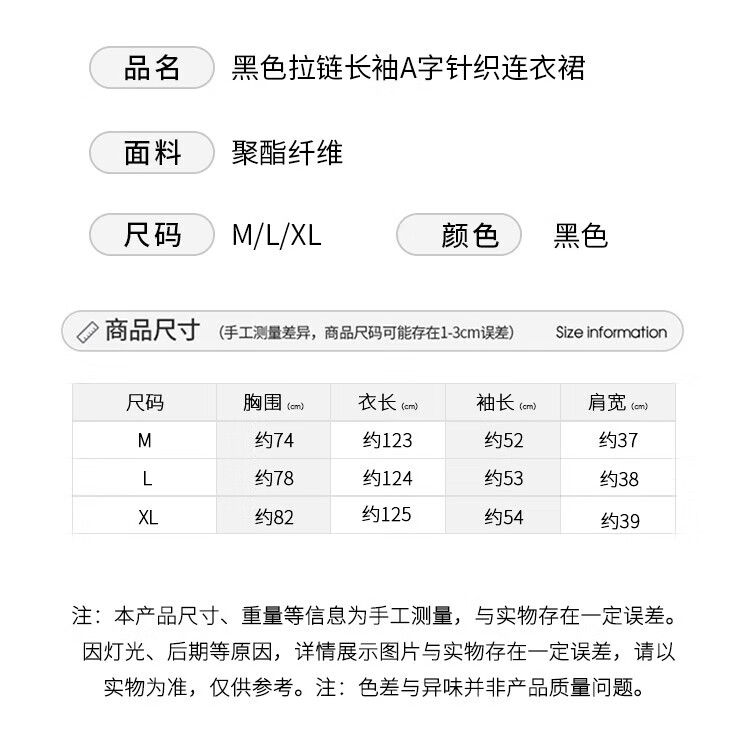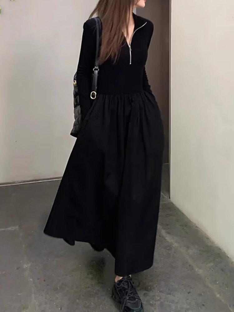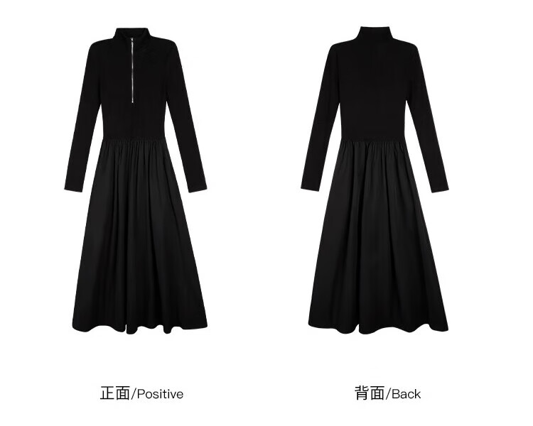 Miao Yijia Dress Women's Autumn Women's Skirt Knitted New High-end Long Skirt with Coat French Waist Slimming Black Zipper Long Sleeve A-Line Hepburn Style Dress XL Recommended 105-120 Jin Jin is equal to 0.5 kg