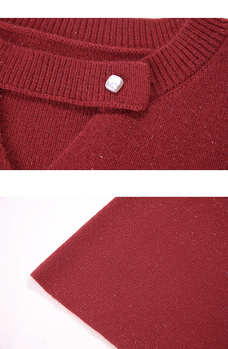 Betu women's new winter dress V-neck bright silk hollow bottom skirt dress female 2412T24 red XS