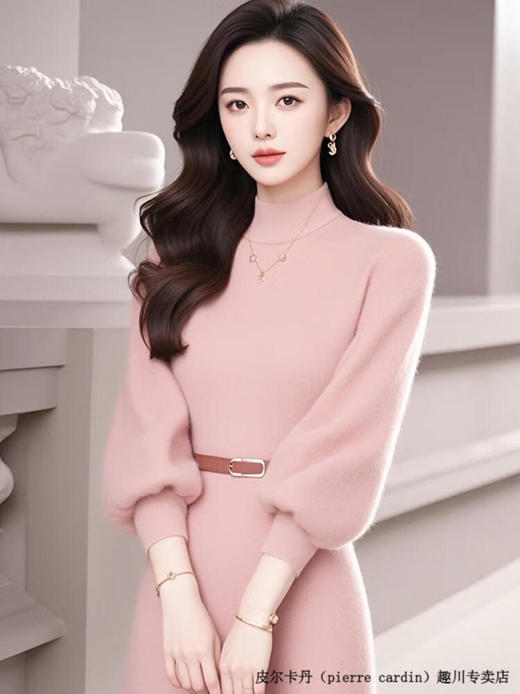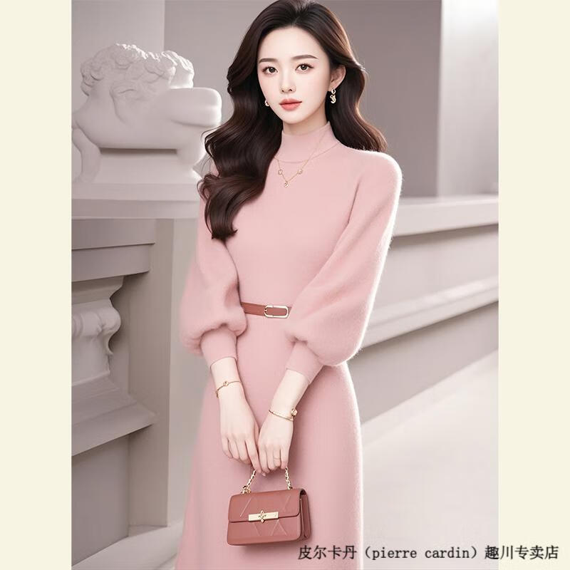 Pierre Cardin (Pierre Cardin) French style age-reducing pink knitted dress ladies temperament bottoming sweater skirt with coat autumn and winter new style pink XL 115-130Jin Jin is equal to 0.5 kg