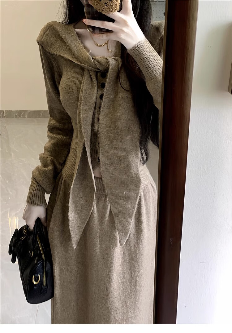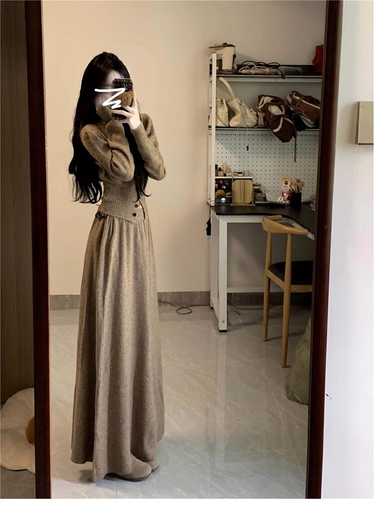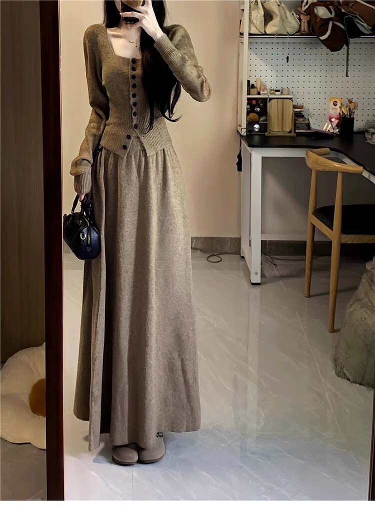 St. Paul's small fragrant style knitted sweater dress for women spring and autumn 2025 new style high-end long skirt suit slimming suit top + skirt M size