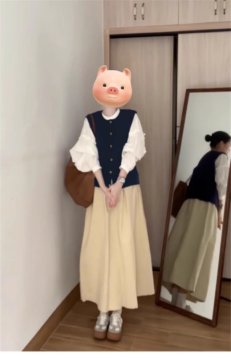 St. Paul's small fragrant dress spring and autumn women's clothing 2025 new style for small people to wear with vest, half-length skirt suit, three-piece set, vest + shirt + skirt S size