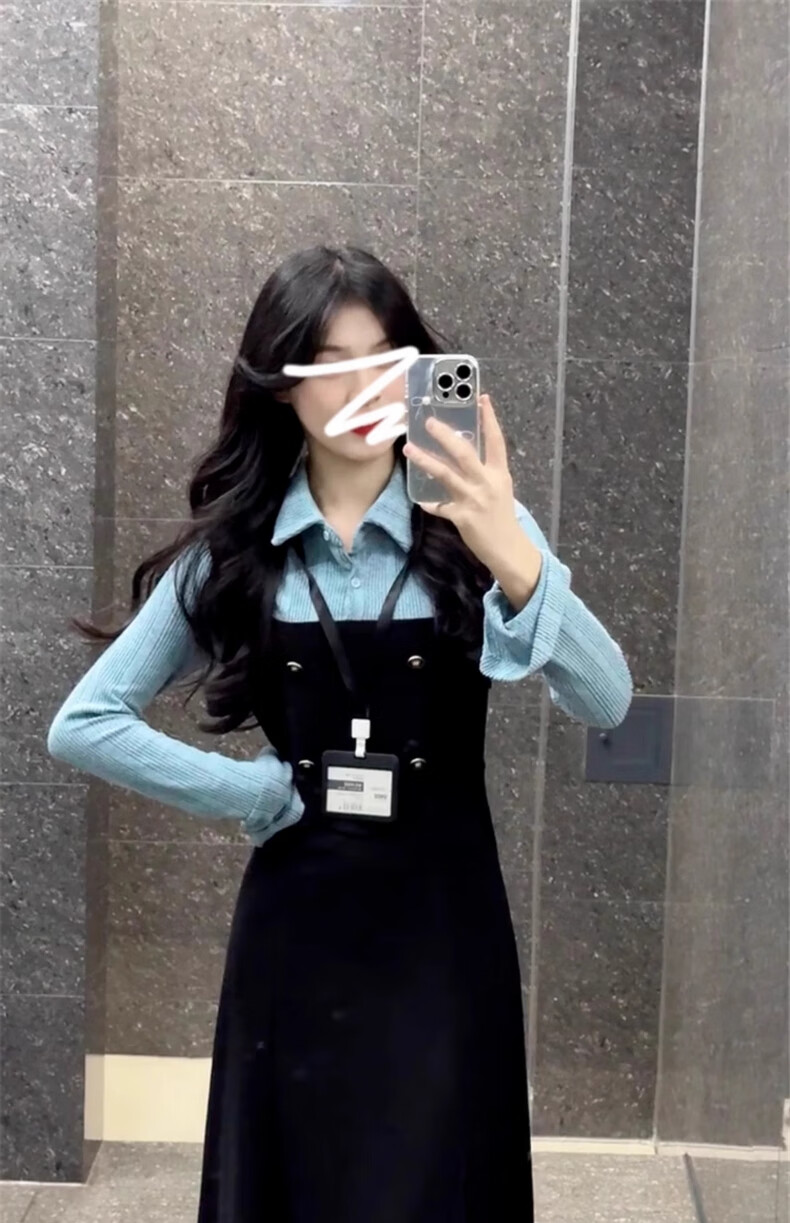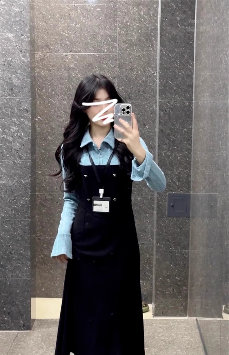 St. Paul's fake two-piece knitted long-sleeved shirt dress women's spring and autumn 2025 new waist slimming A-line long skirt dress S size