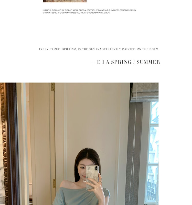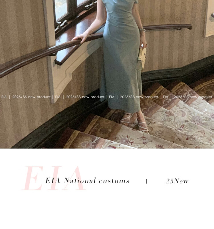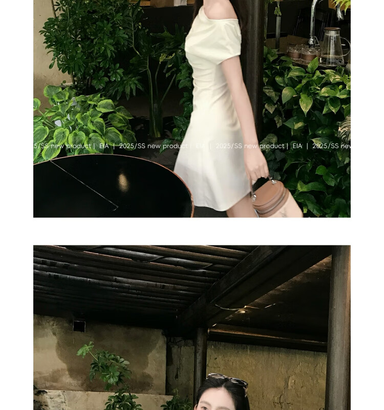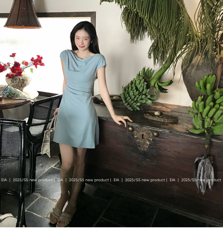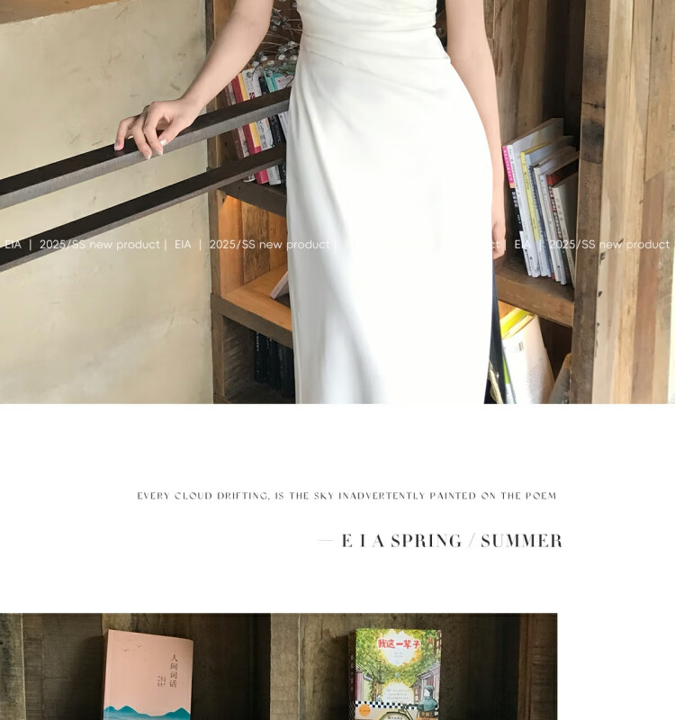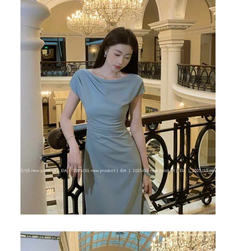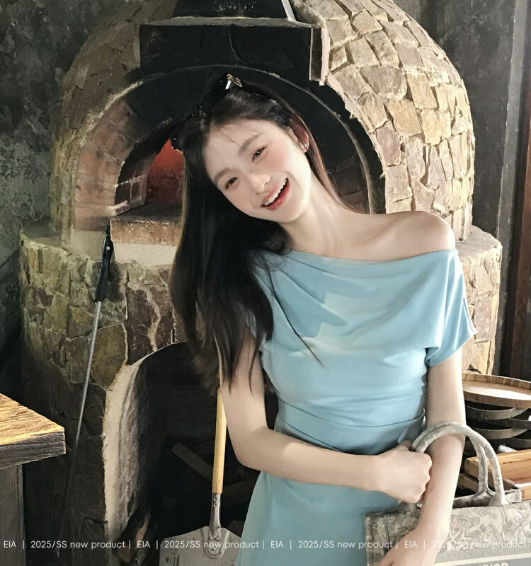 EIA Yiyao elegant art student temperament intellectual simple slanted shoulder dress women summer long and short skirt apricot long dress slightly shot L 110Jin Jin is equal to 0.5kg 120Jin Jin is equal to 0.5kg