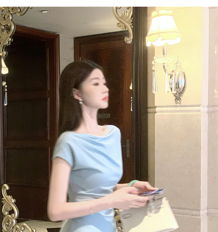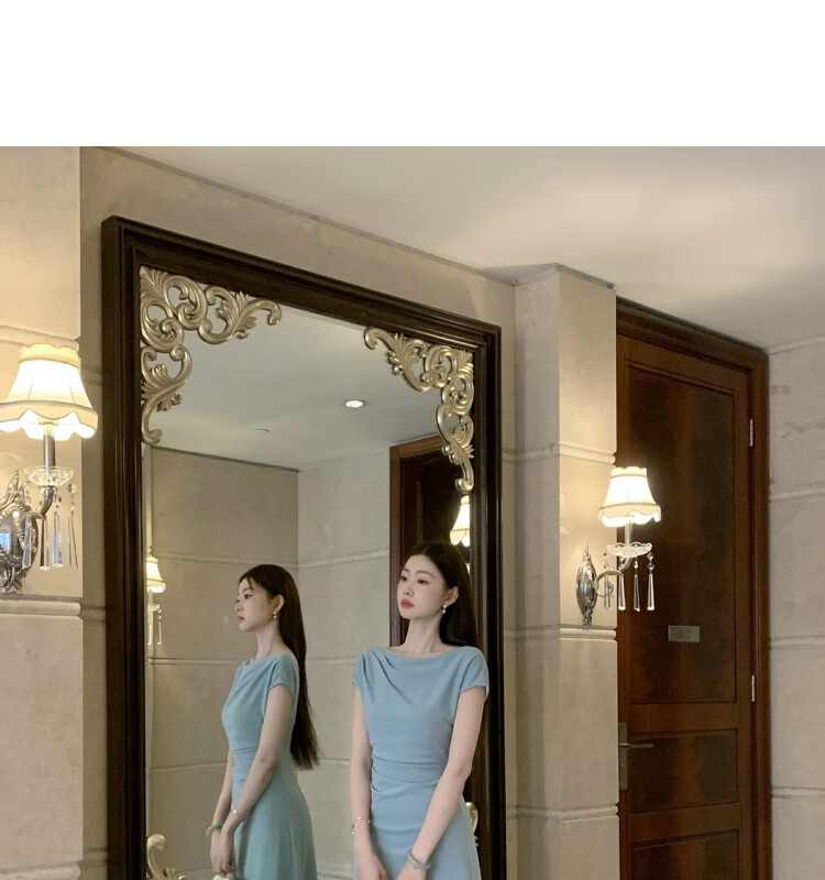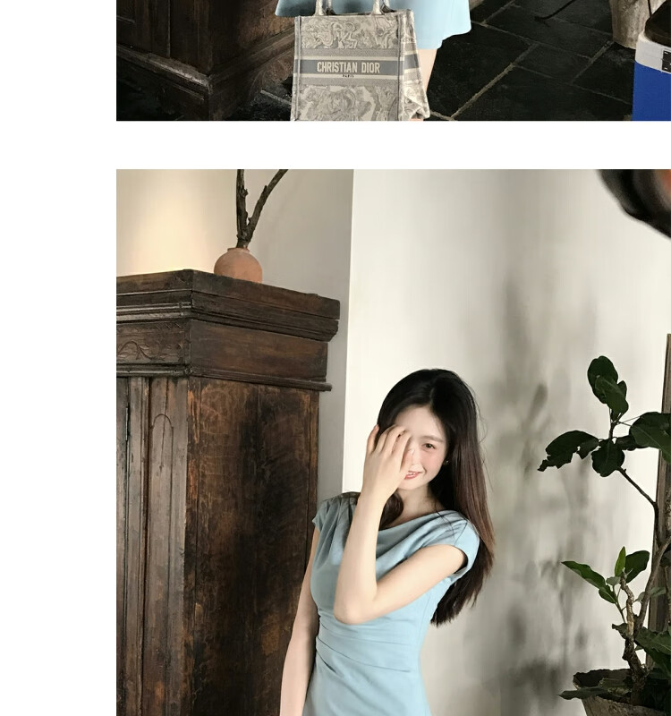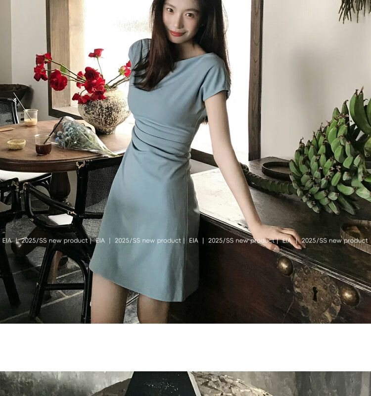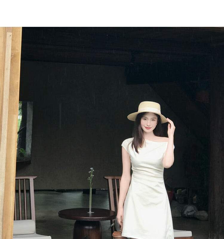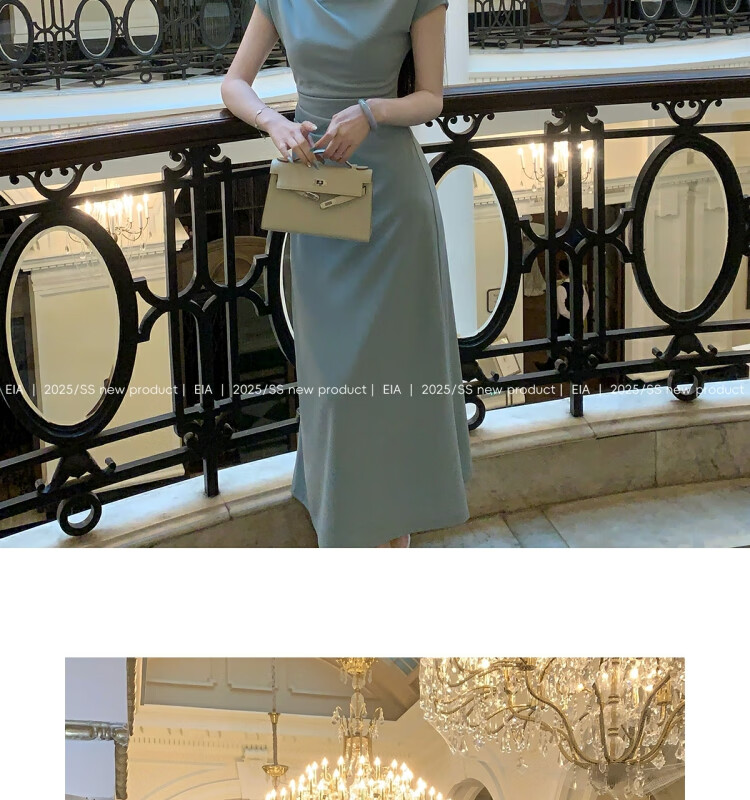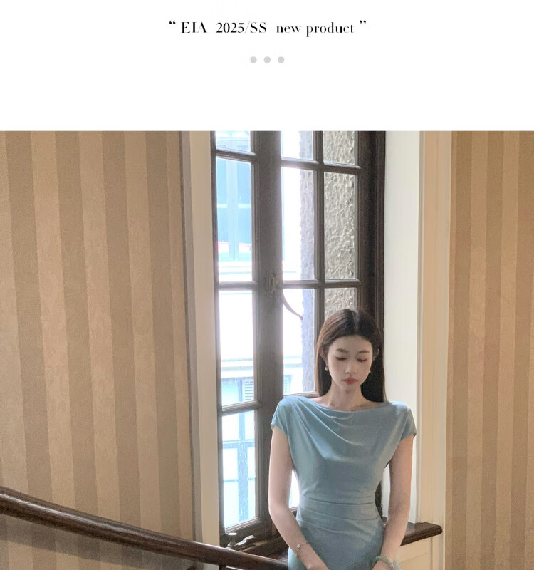 EIA Yiyao elegant art student temperament intellectual simple slanted shoulder dress women summer long and short skirt apricot long dress slightly shot L 110Jin Jin is equal to 0.5kg 120Jin Jin is equal to 0.5kg