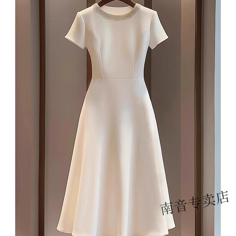 Romont French dress for women 2025 new style dignified and elegant designer chic and beautiful white round neck niche dress white M 100-110Jin Jin is equal to 0.5 kg