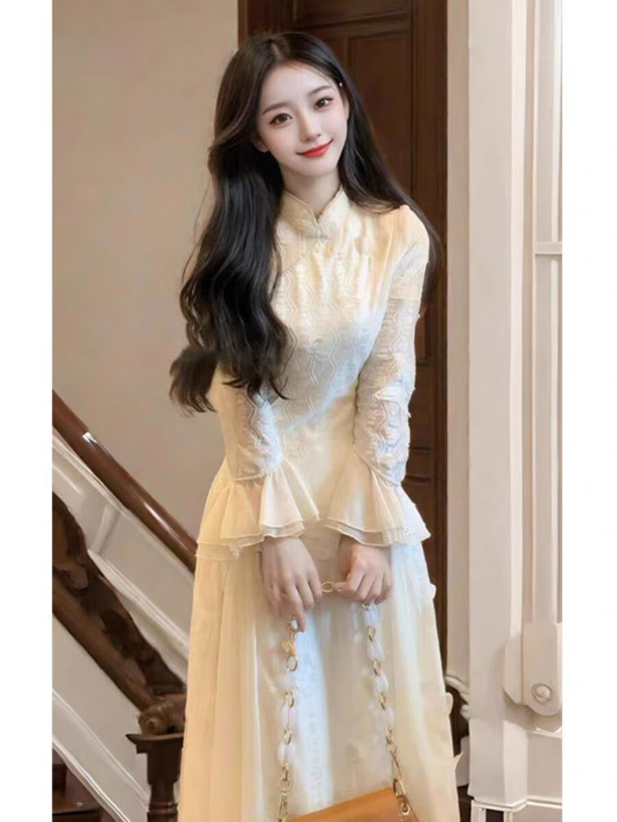 Pierre Cardin New Chinese Style Three-dimensional Butterfly Cheongsam Dress Women's Autumn and Winter New White Fairy High-end National Style Skirt Graphic Dress Standard Edition M Recommendation 95-105 Jin Jin equals 0.5 kg