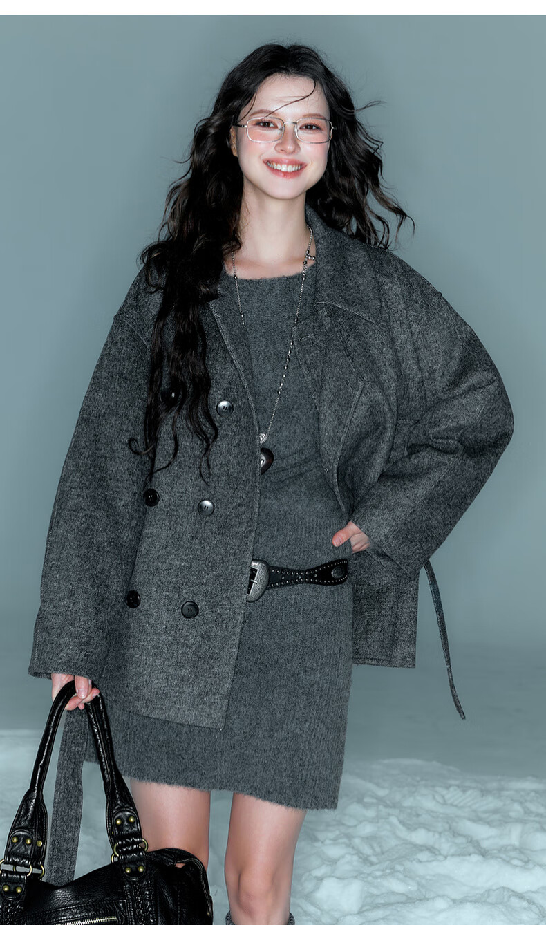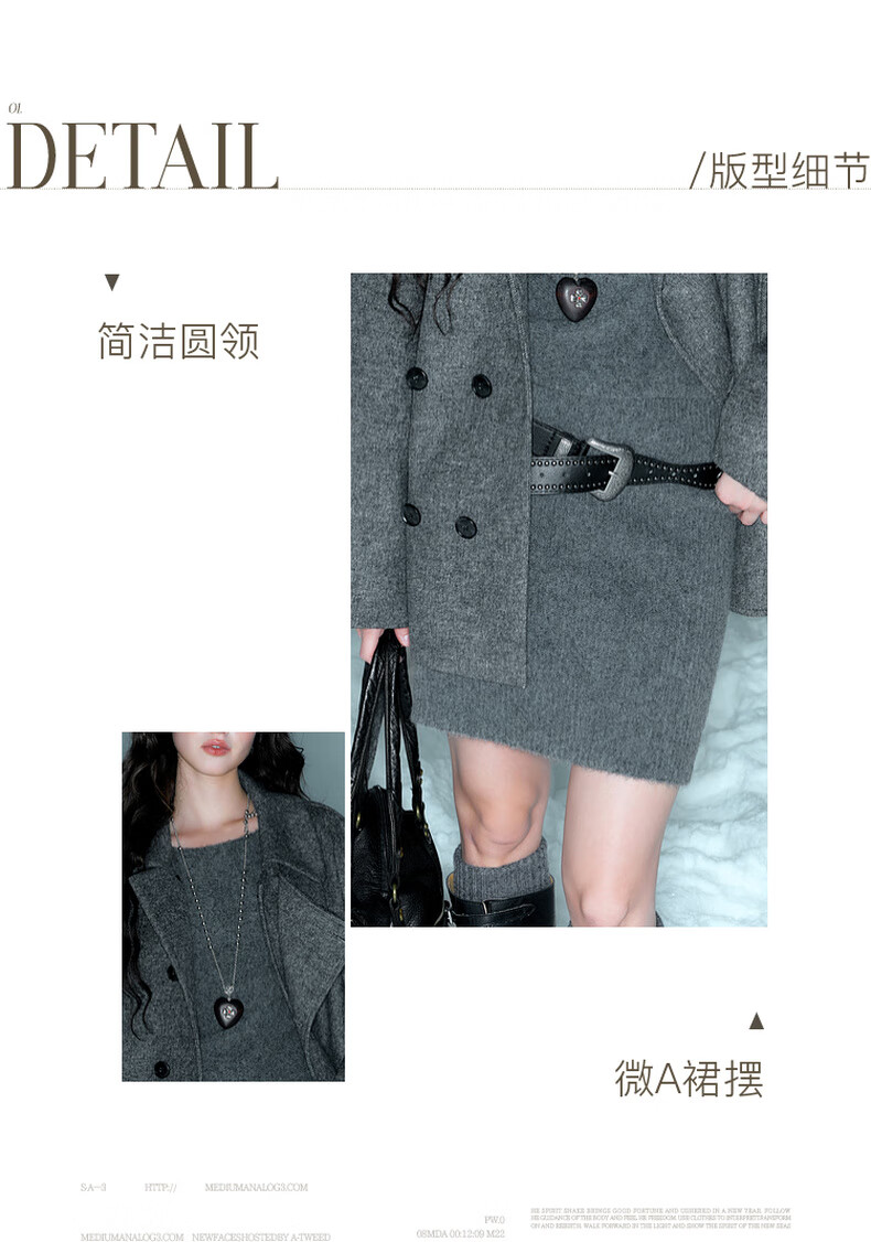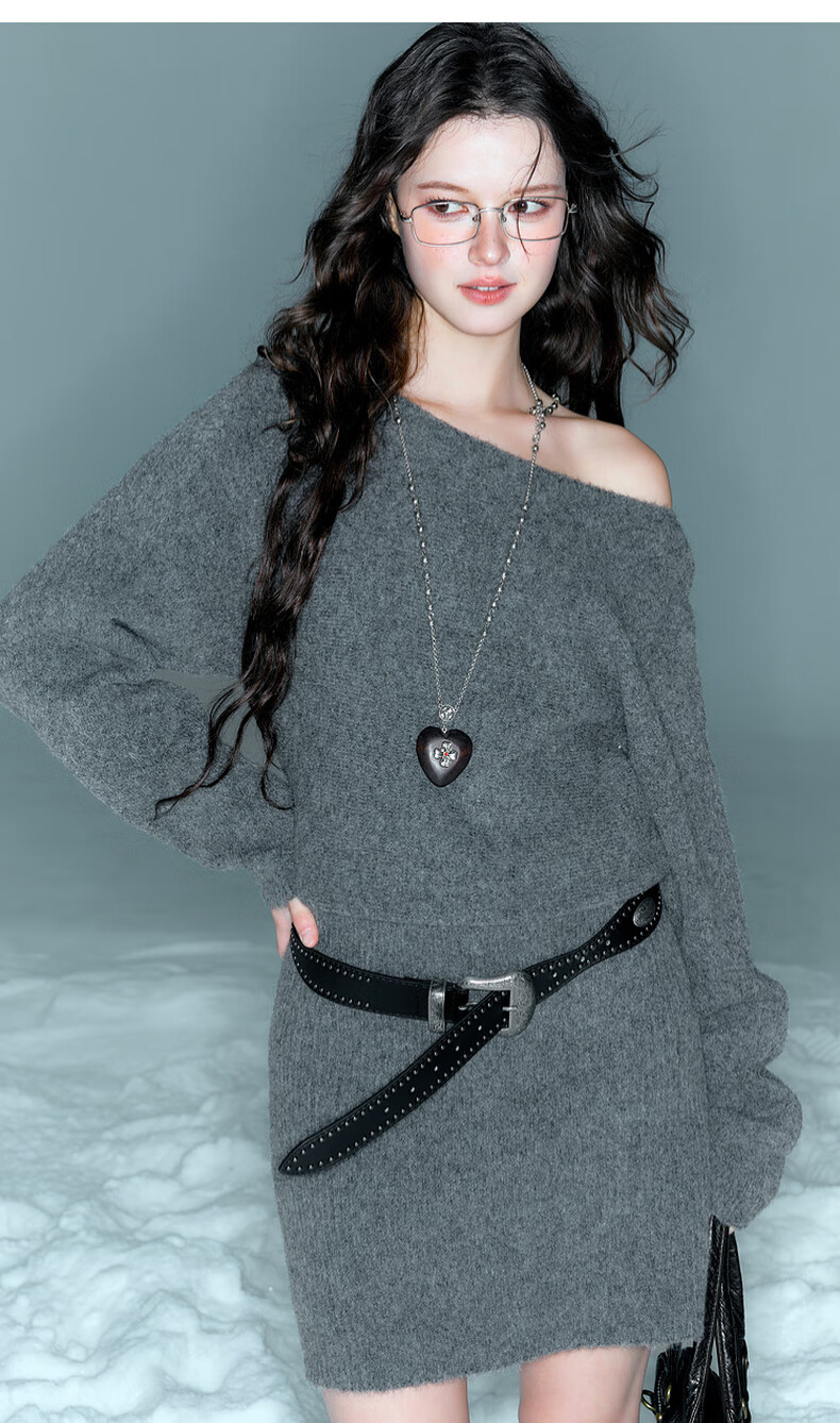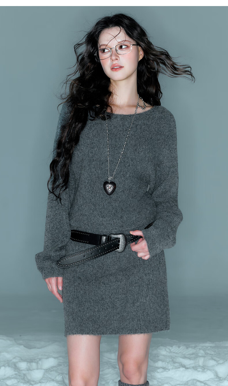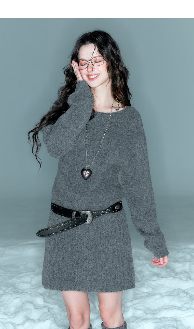 Sancai Duxing 2025 Winter New Style Round Neck Knitted Dress Long Sleeve Small A Short Skirt Bottoming Lazy F Dark Gray Pre-sale Send within 15 days of payment M 160/84A