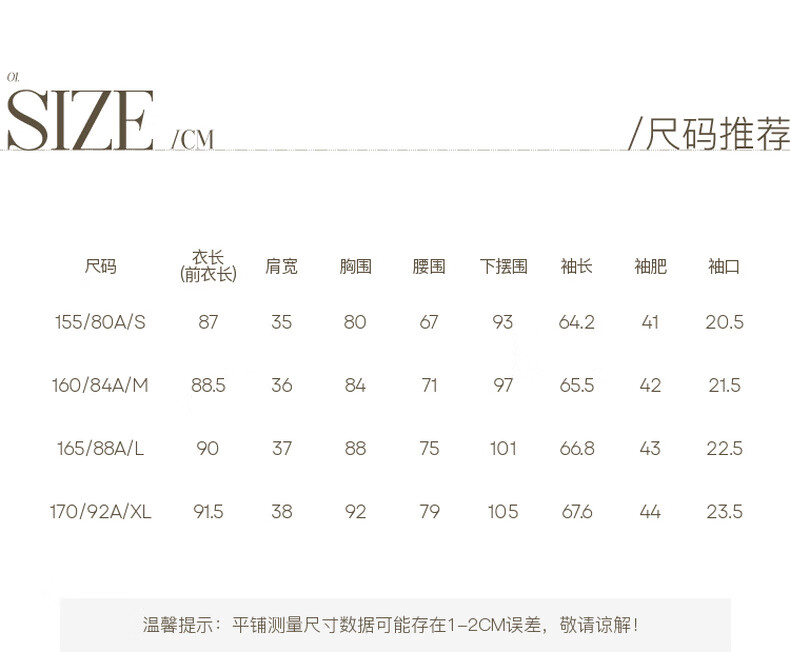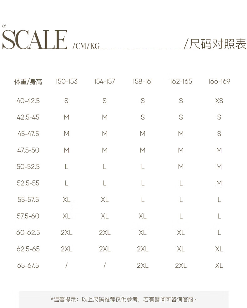 China (cm) 160-165/84-86 165-170 / 88-90 167-172 / 92-96 168-173 / 98-102 170-176 / 106-110
