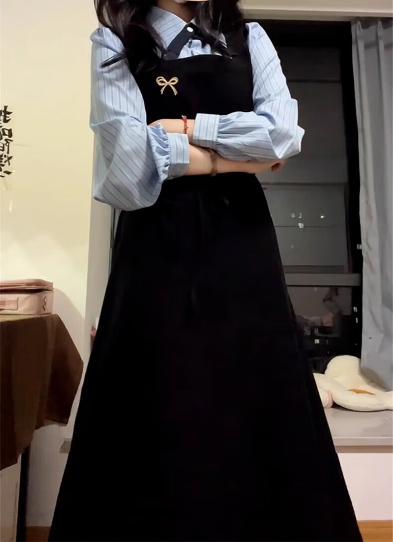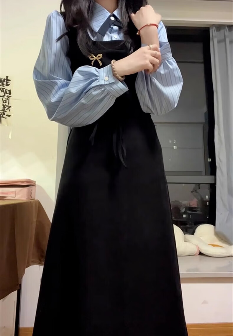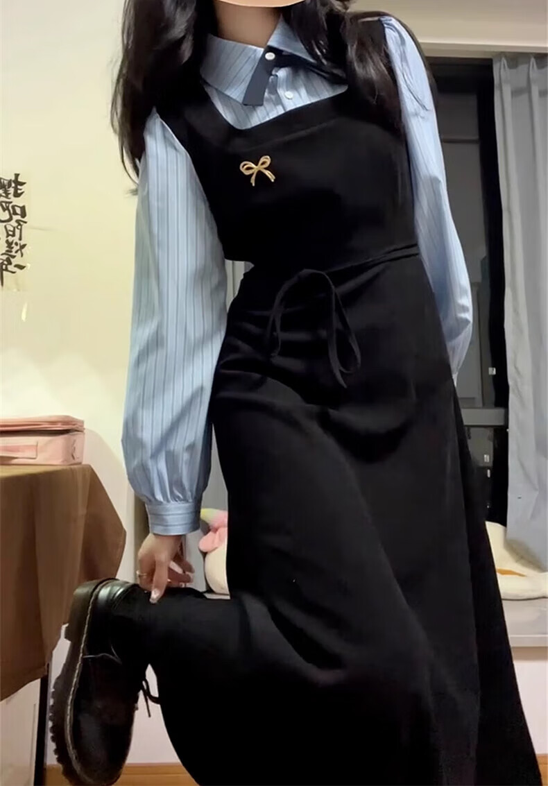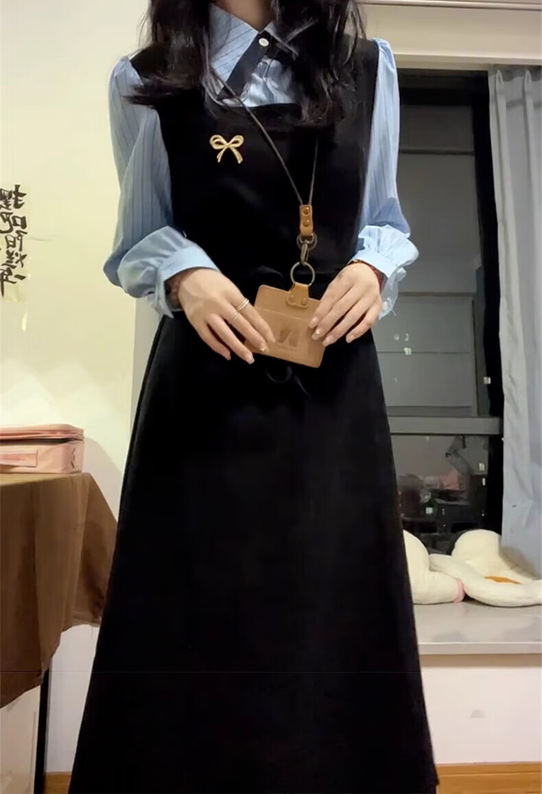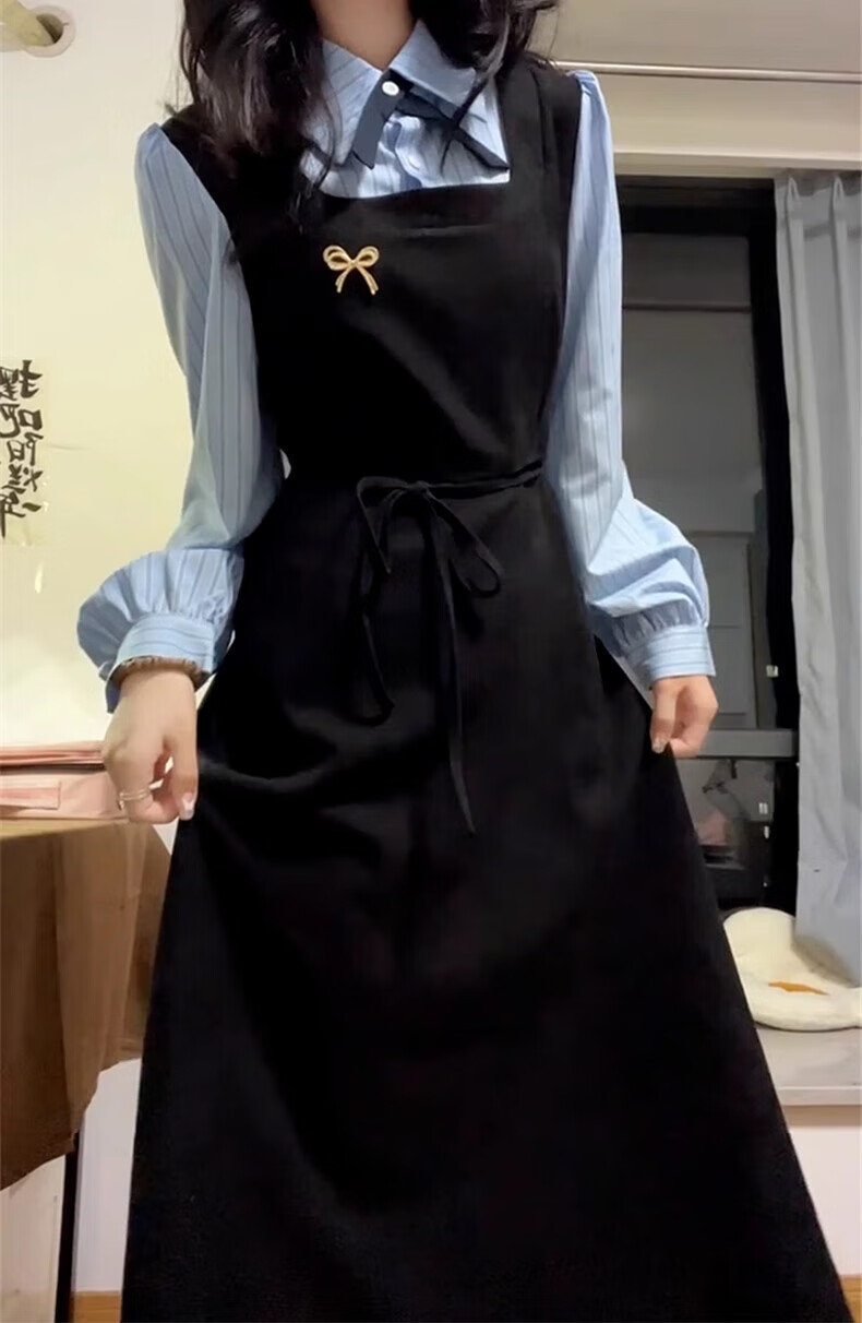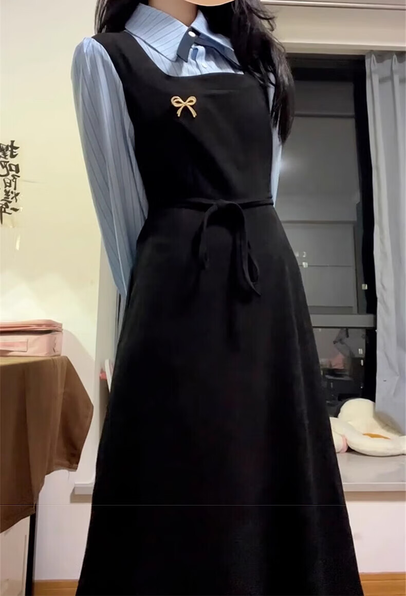 Lu Geli college style long-sleeved dress for women spring and autumn black outfit fake two-piece Korean style college style dress XL recommended 115-125 Jin Jin equals 0.5 kg