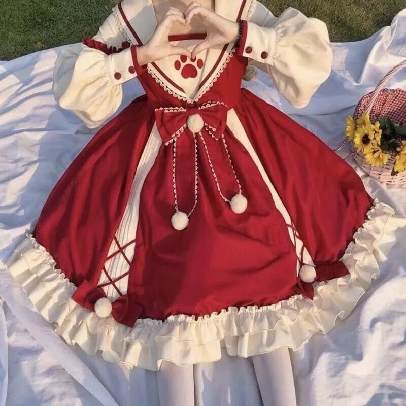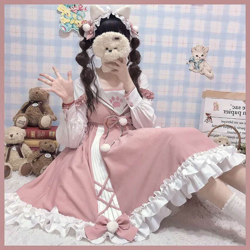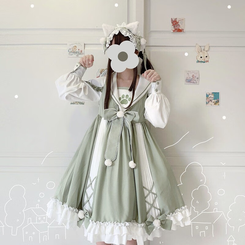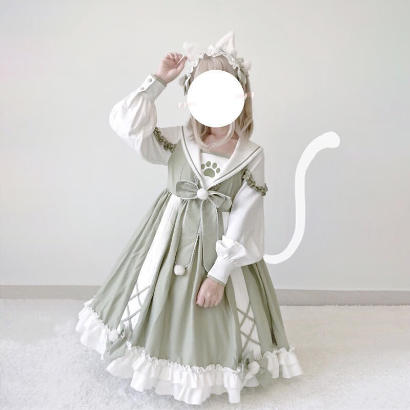 Tannuu Lolita dress dream girl op student lolita cute daily dress object sweet cat cat L