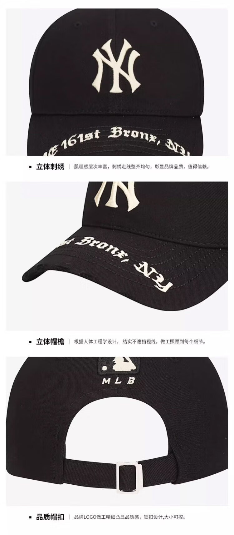 MLB hat men and women couple baseball cap hard top peaked cap autumn and winter sports cap four seasons 3ACPKP02N-07BKS-F