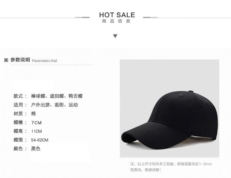 Hat Yijin Hat Unisex Couple Outdoor Baseball Cap Men's Summer Breathable Peaked Cap Trendy Fashion Sun Protection Hat Pure Black (Adjustable)