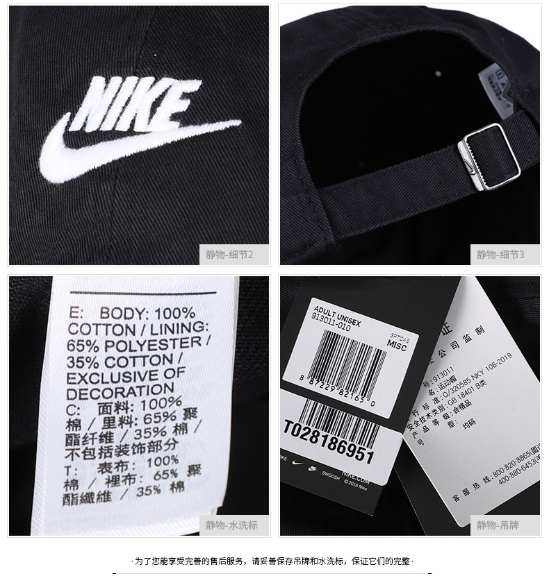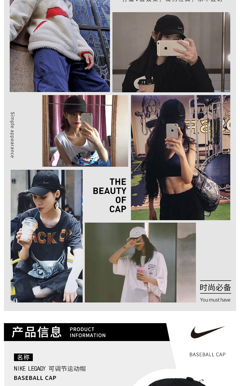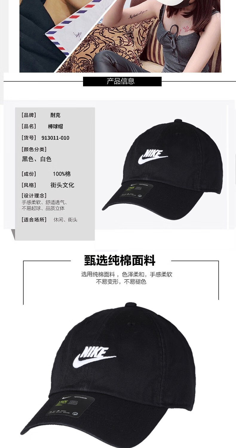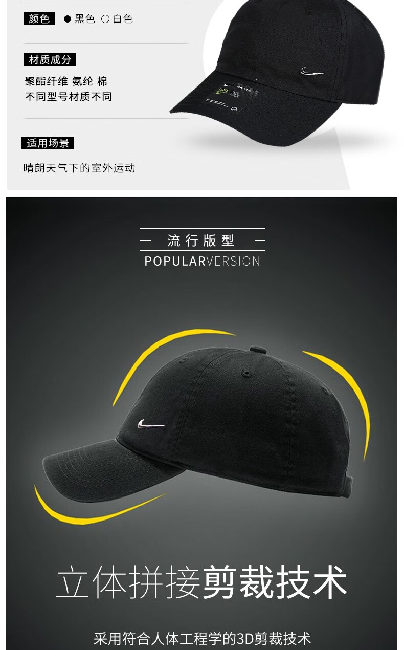 Nike (NIKE) hats for men and women, fashionable tennis hats, outdoor sports peaked caps, breathable baseball caps, student casual sun visors, FB5368-011/black, recommended by merchants, one size fits all