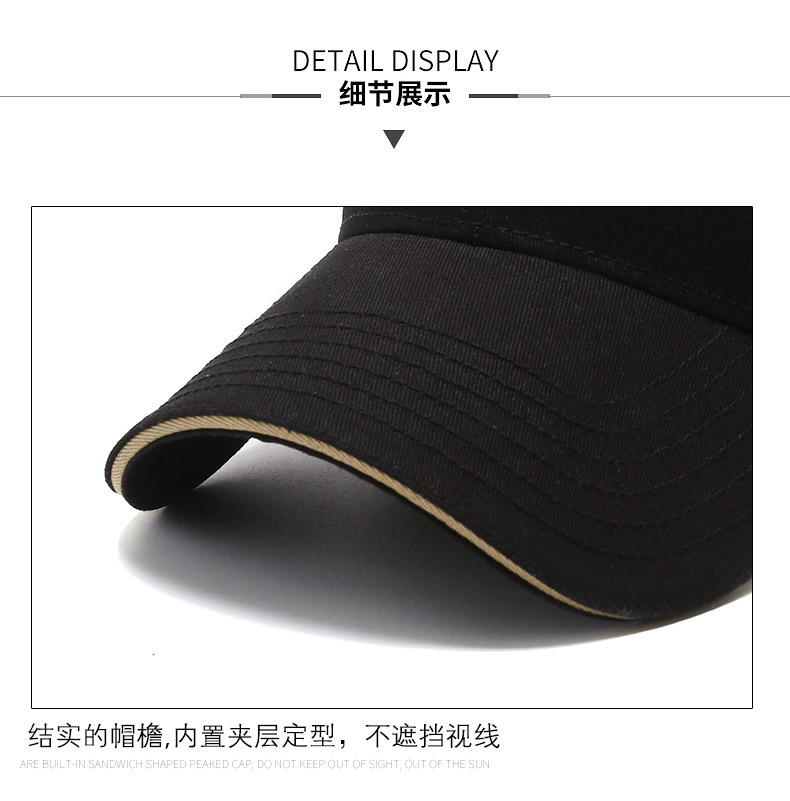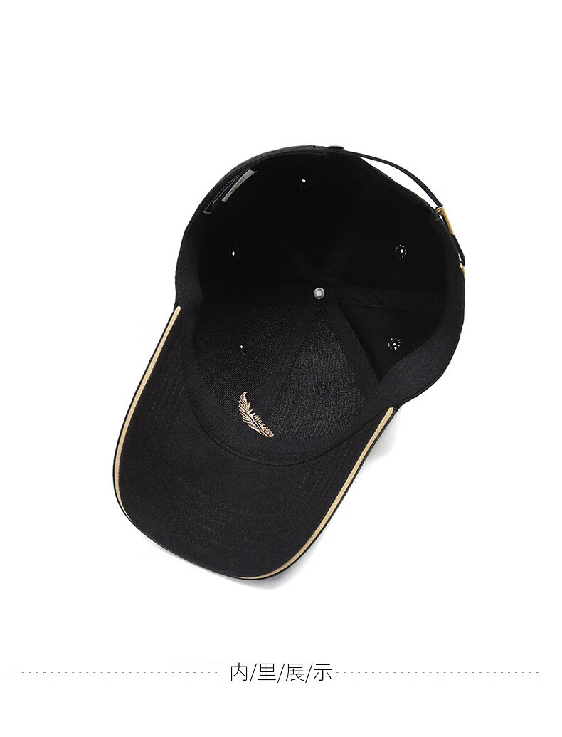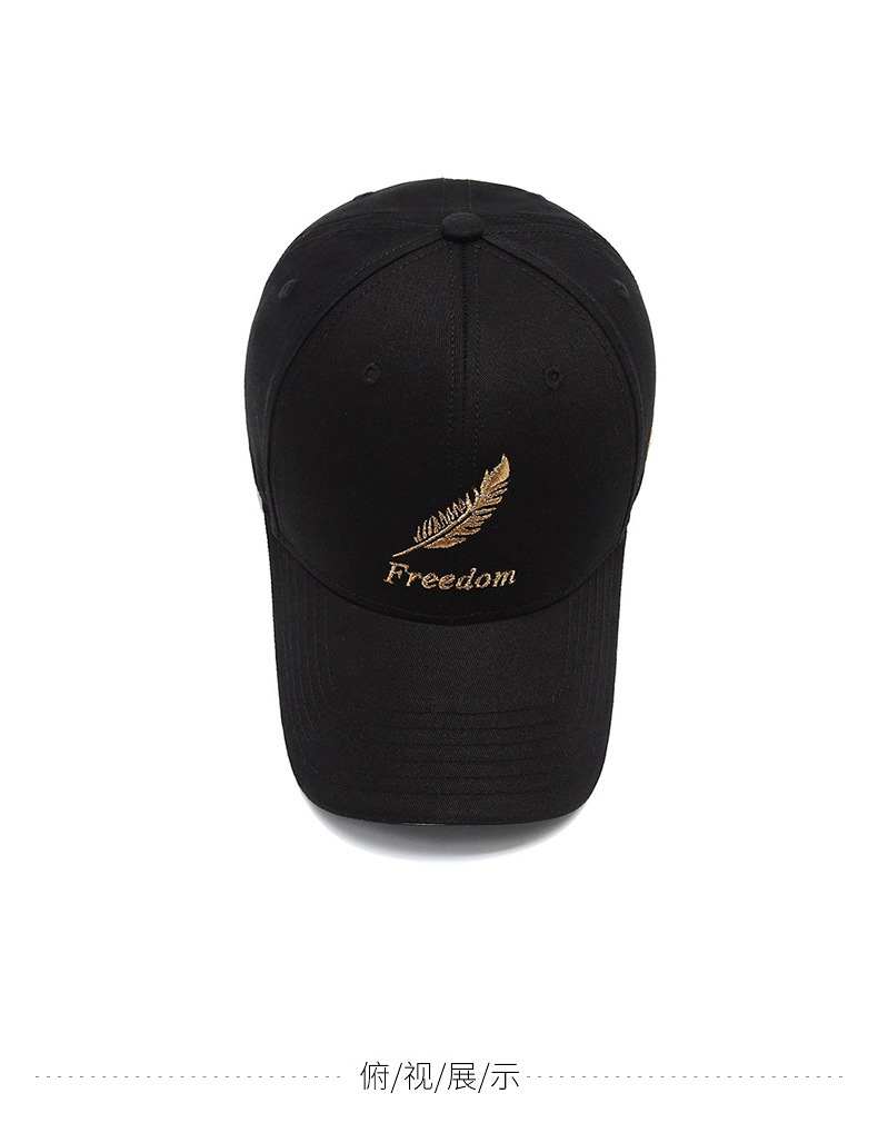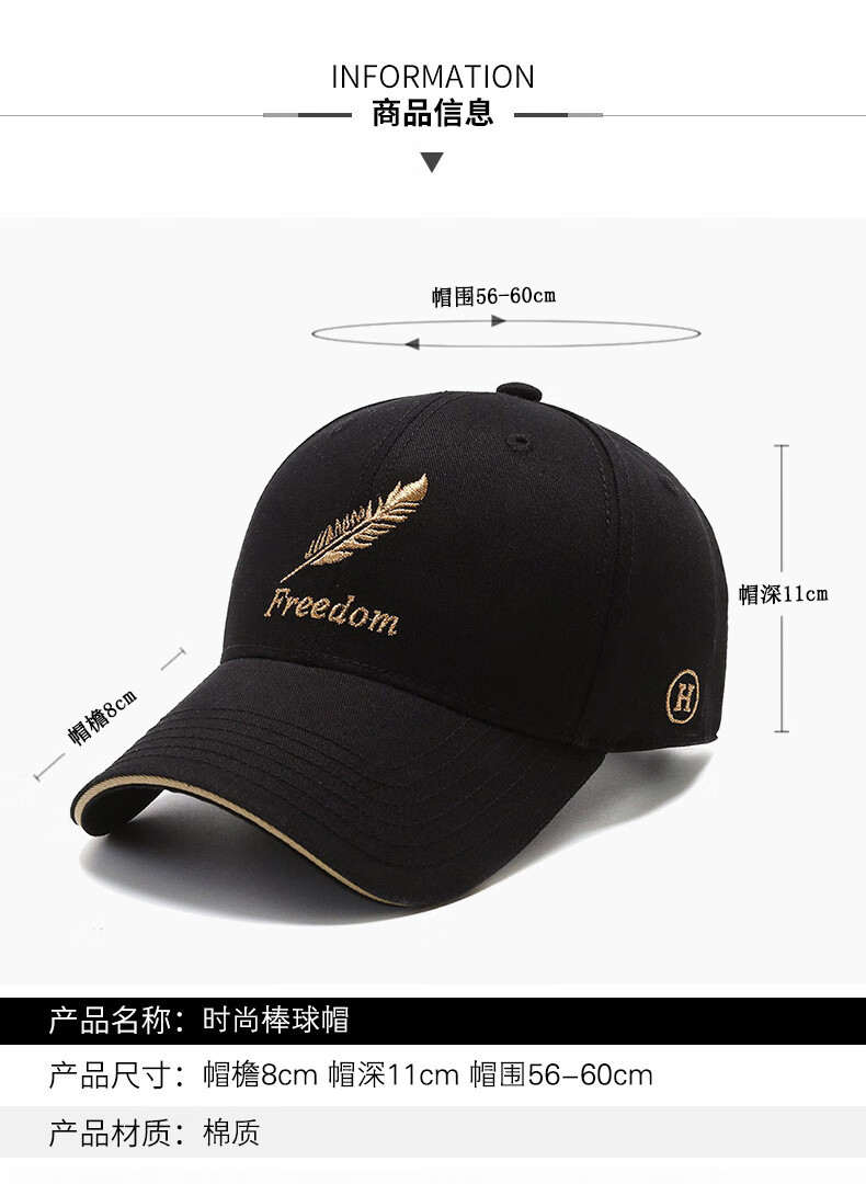 Charming hat for men, new peaked cap for all seasons, Korean version, trendy outdoor casual fashion, feather embroidery, versatile baseball cap for women, classic pure black plus size (head circumference 58-65) adjustable