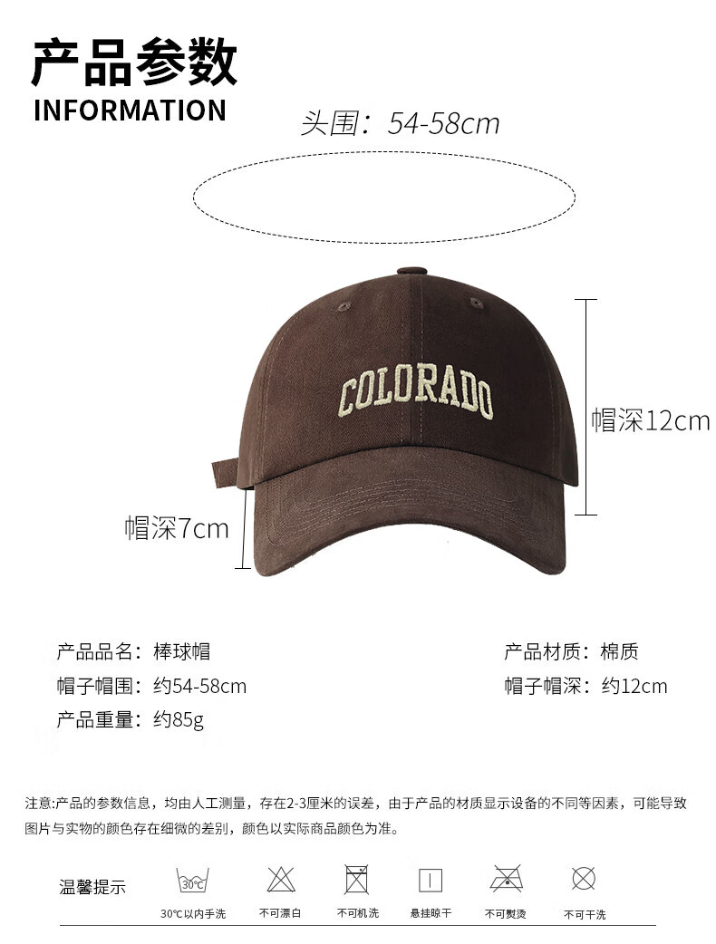 CONCISE KITE hat women's and men's baseball cap sun protection large head circumference sunshade peaked cap outdoor sports spring and autumn versatile embroidery Korean version CK-brown M hat circumference adjustable (54-58cm)