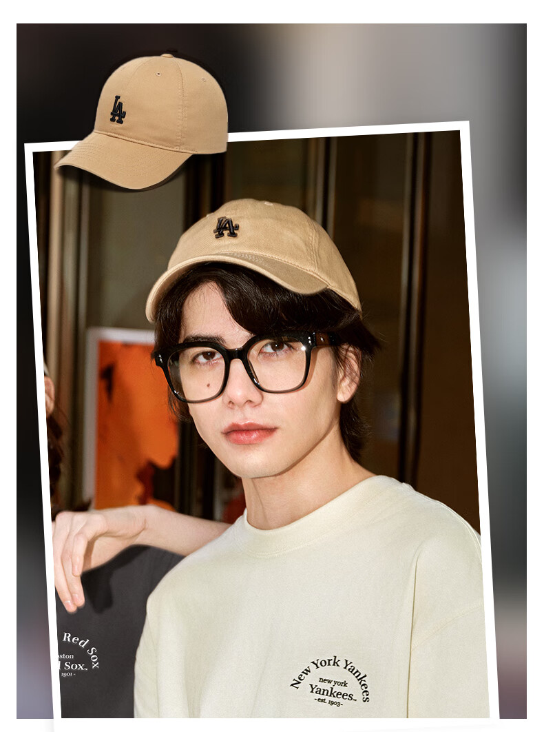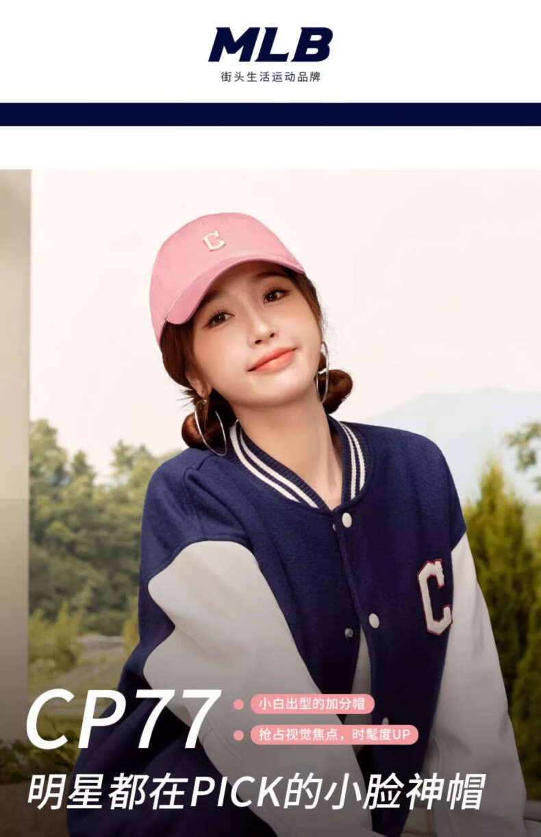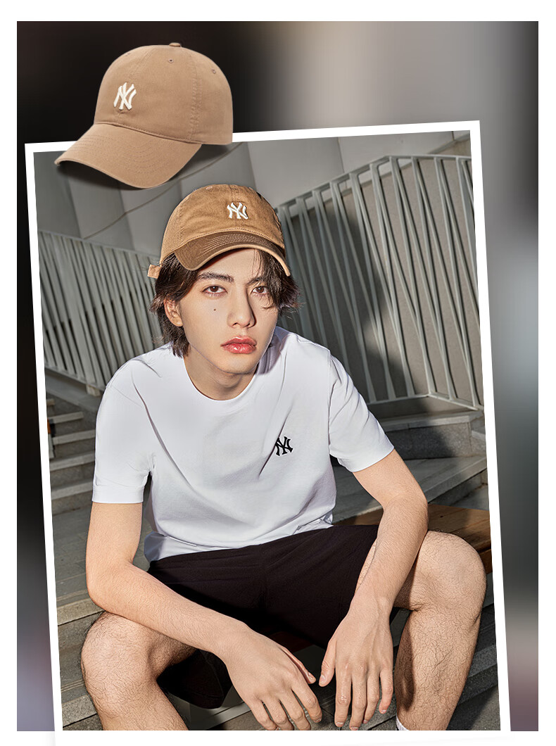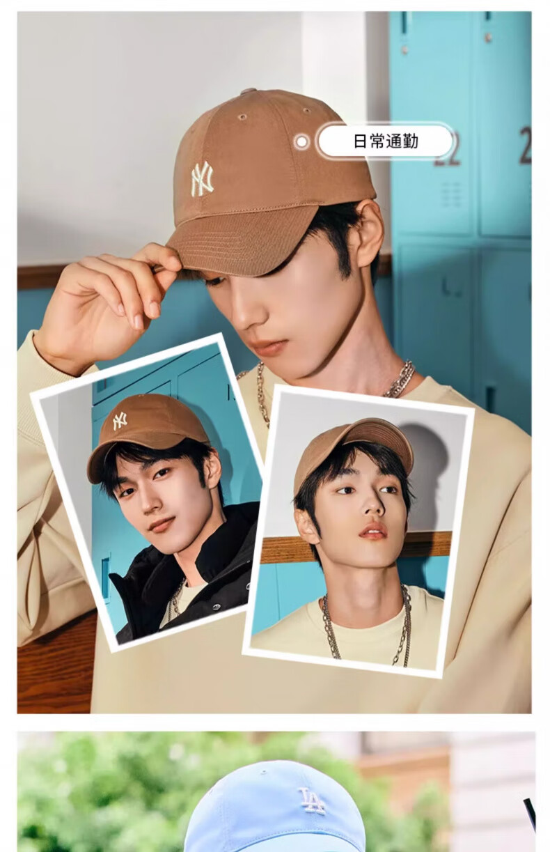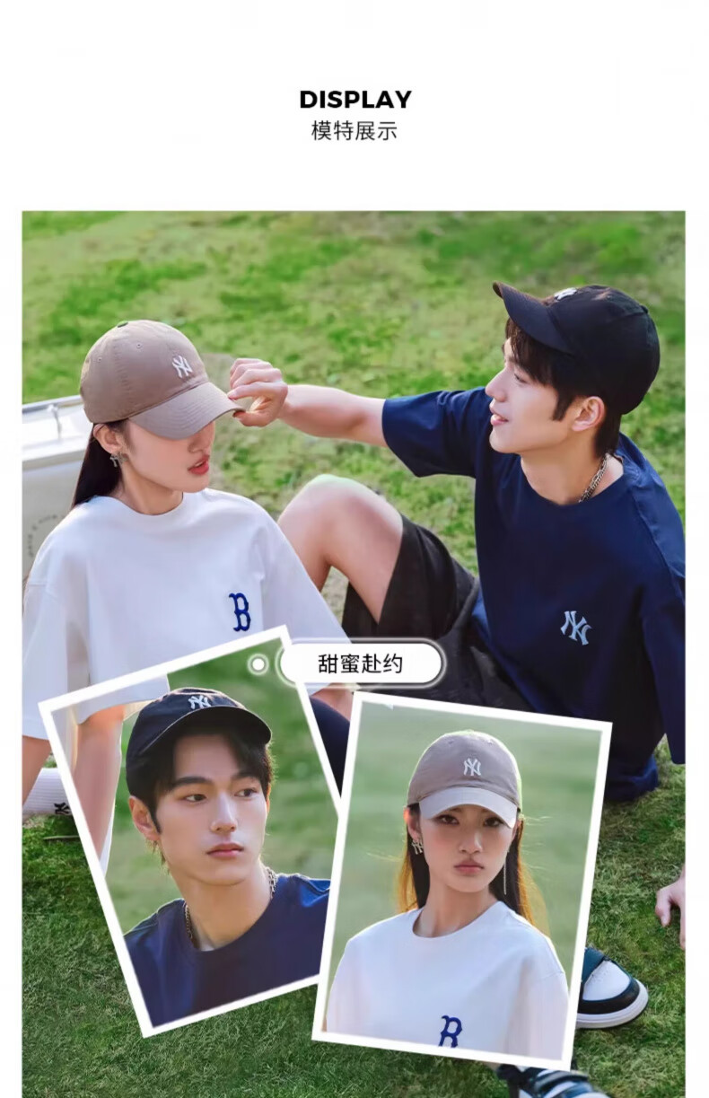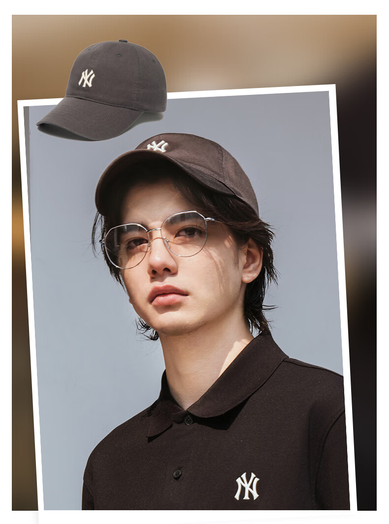 MLB official Yu Shuxin's same style for men and women, fashionable and versatile soft top baseball cap sun visor outdoor autumn CP77 New York Yankees/Navy Blue One Size