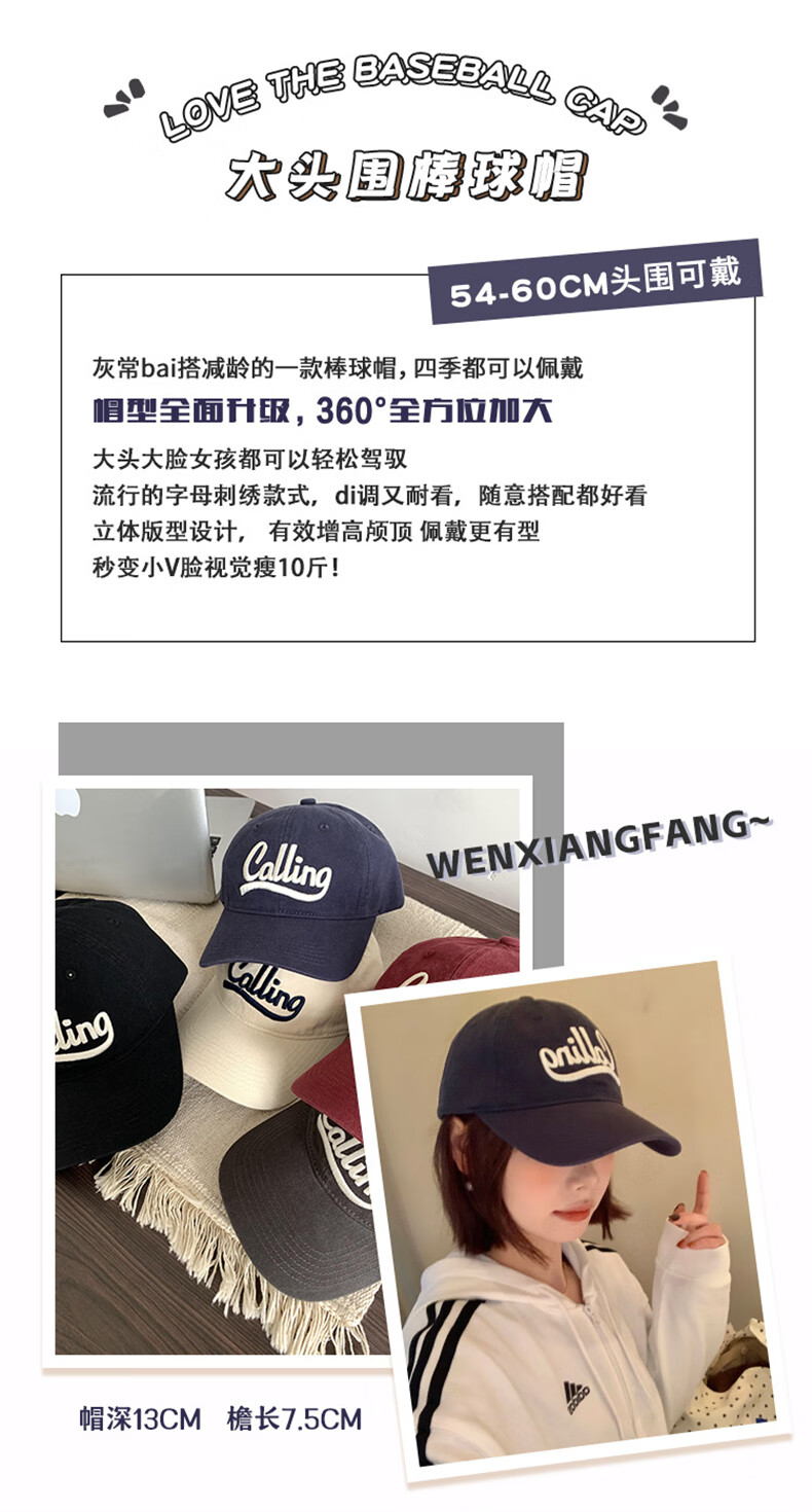 MITHAOL KUSC new style baseball cap for women, fashionable and casual Korean style face-showing couple's peaked cap for men all seasons sun hat with letter embroidery black