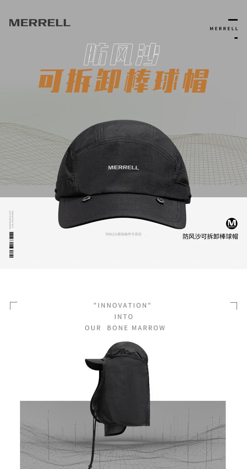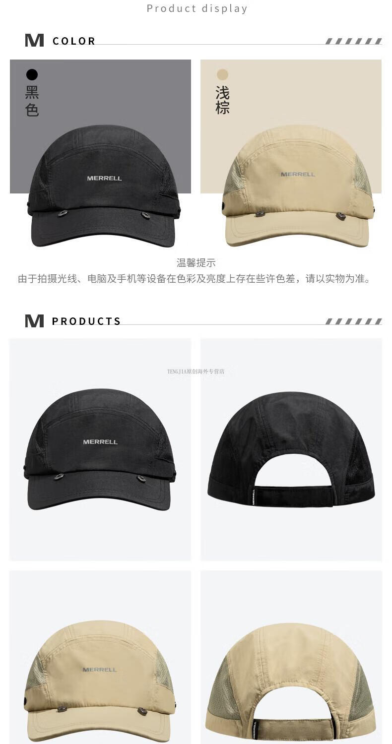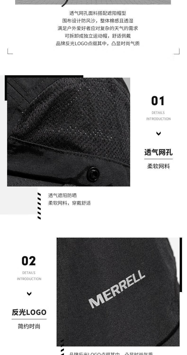 Merrell outdoor sports windproof and sand visor detachable multi-purpose unisex fashionable baseball cap for men and women, light brown