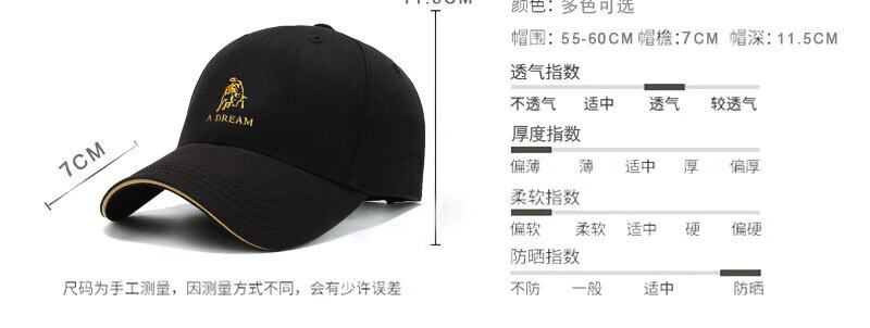Larlen Paul Men's Hat Pure Cotton Spring and Autumn New Trendy Brand Baseball Cap Women's Fashion Casual Versatile Sunshade Duck Tongue Calf Style - Black (Gold Thread Embroidery)