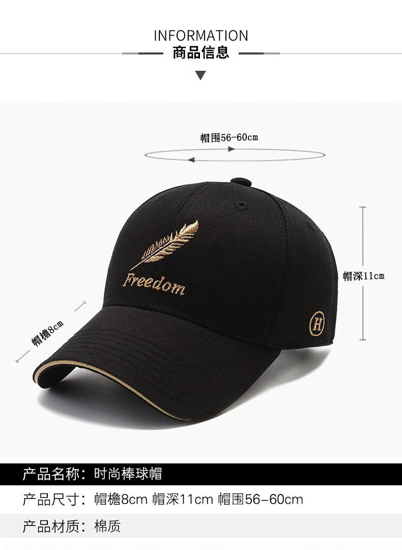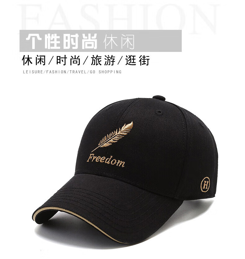 Gu Jianmu hat men and women four seasons new peaked cap Korean style trendy outdoor leisure fashion feather embroidery versatile baseball cap feather style black