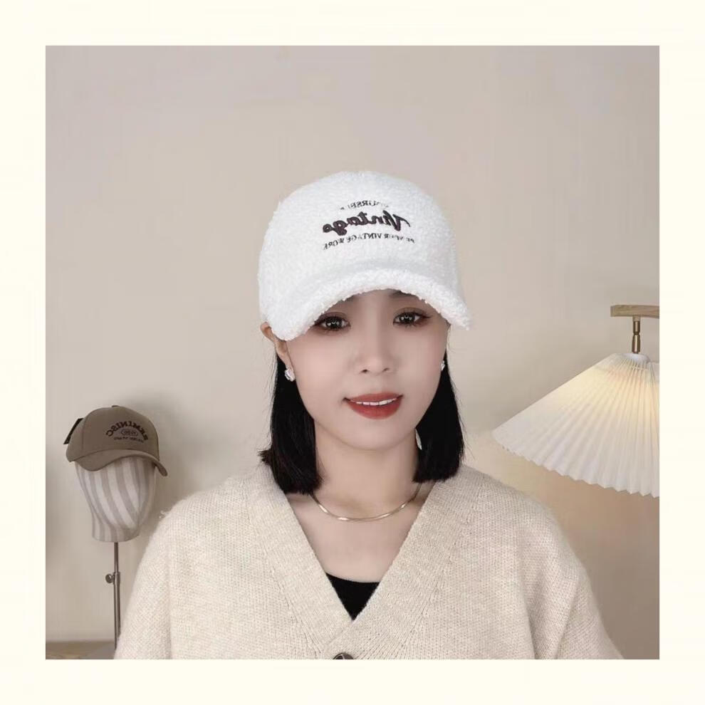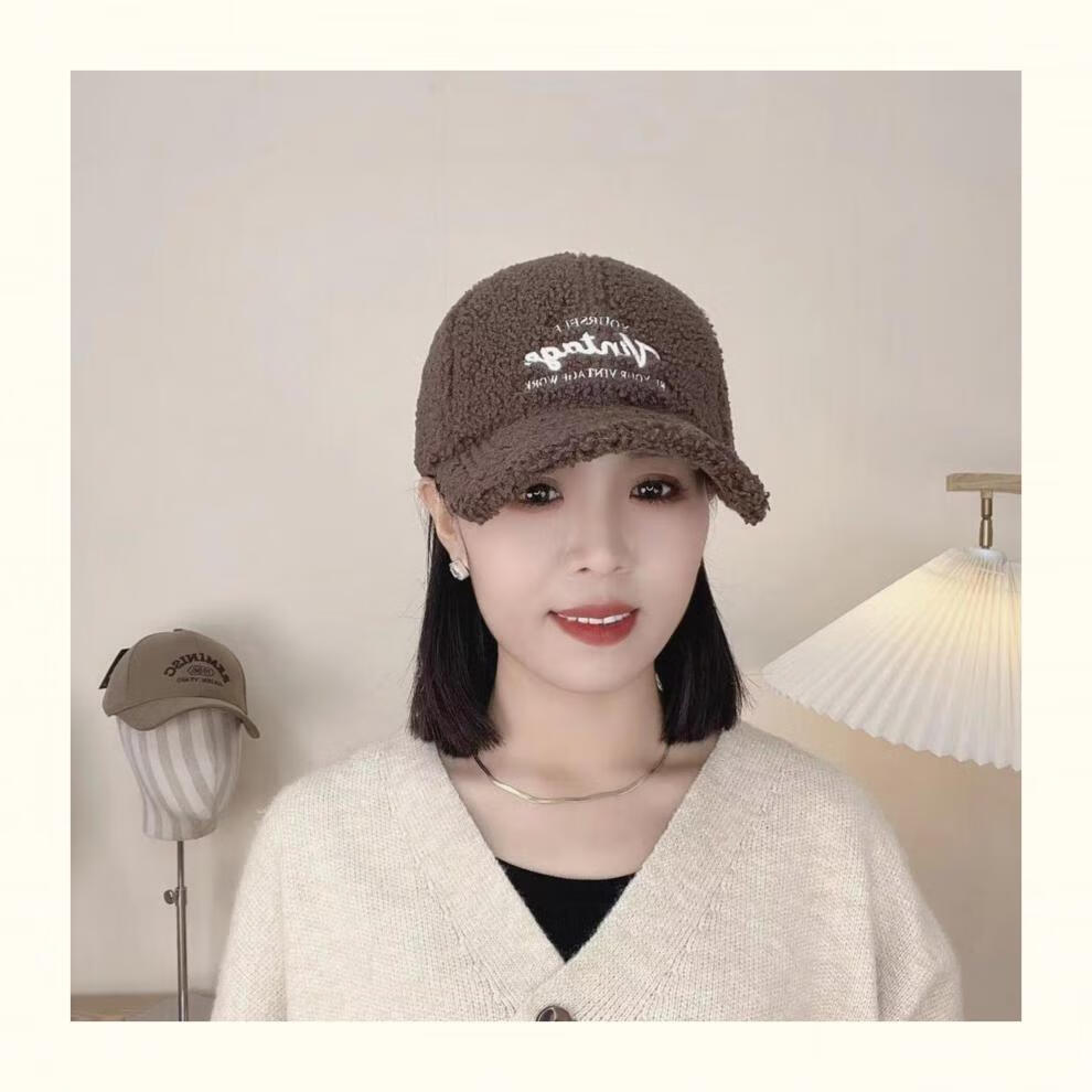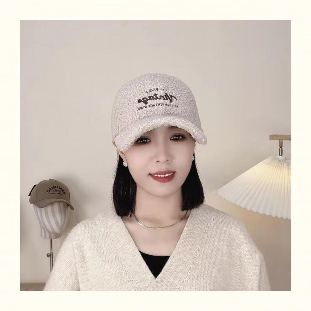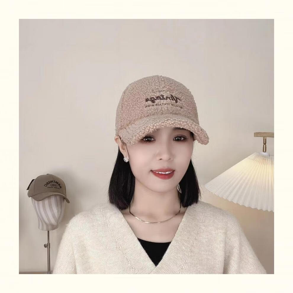 Yu Zhaolin Lamb Plush Baseball Cap Women's Autumn and Winter New Fashion Versatile Warm Furry Peaked Cap Cute Sun Hat Khaki M (54-58c) Adjustable