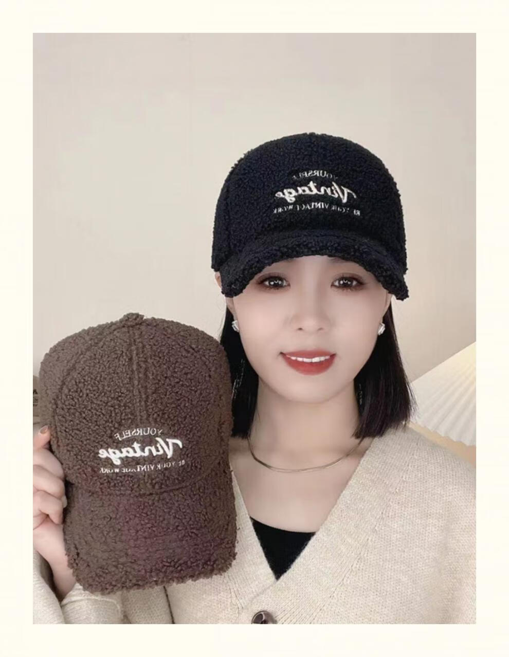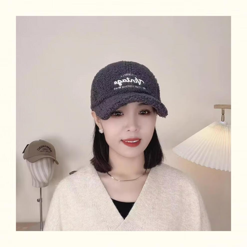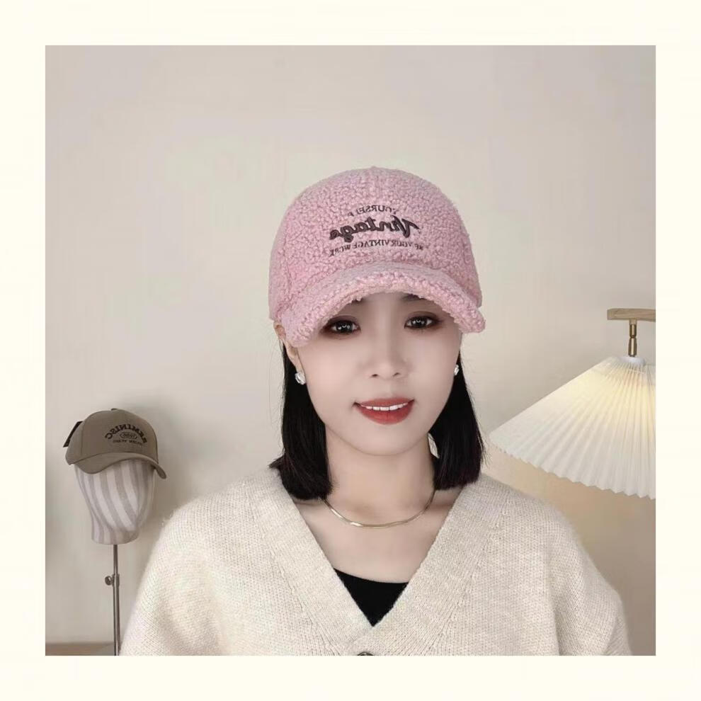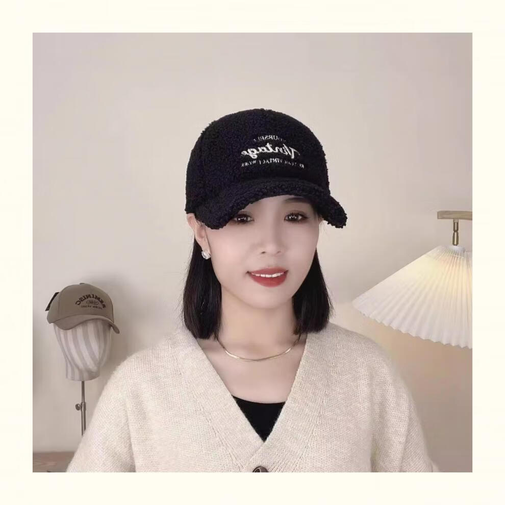 Yu Zhaolin Lamb Plush Baseball Cap Women's Autumn and Winter New Fashion Versatile Warm Furry Peaked Cap Cute Sun Hat Khaki M (54-58c) Adjustable
