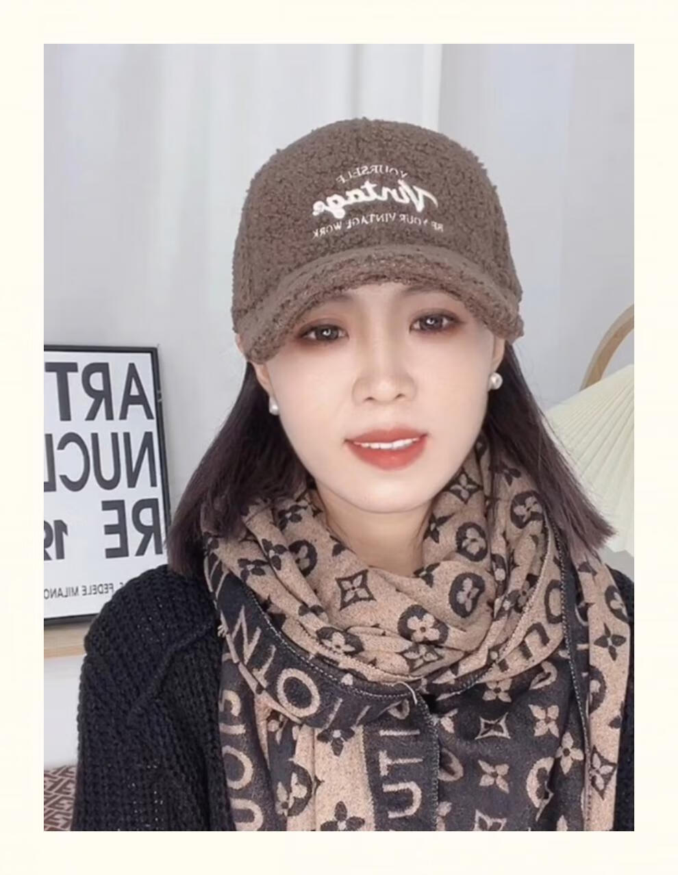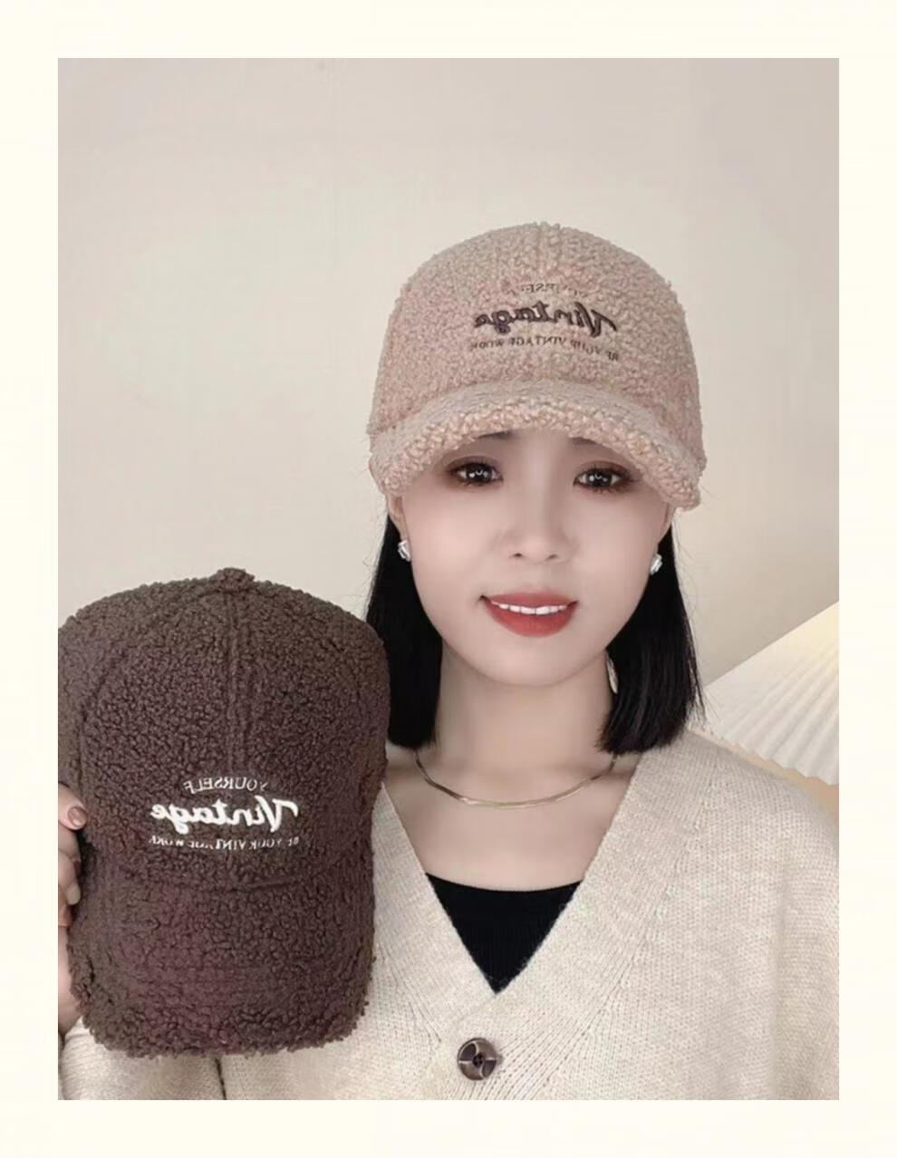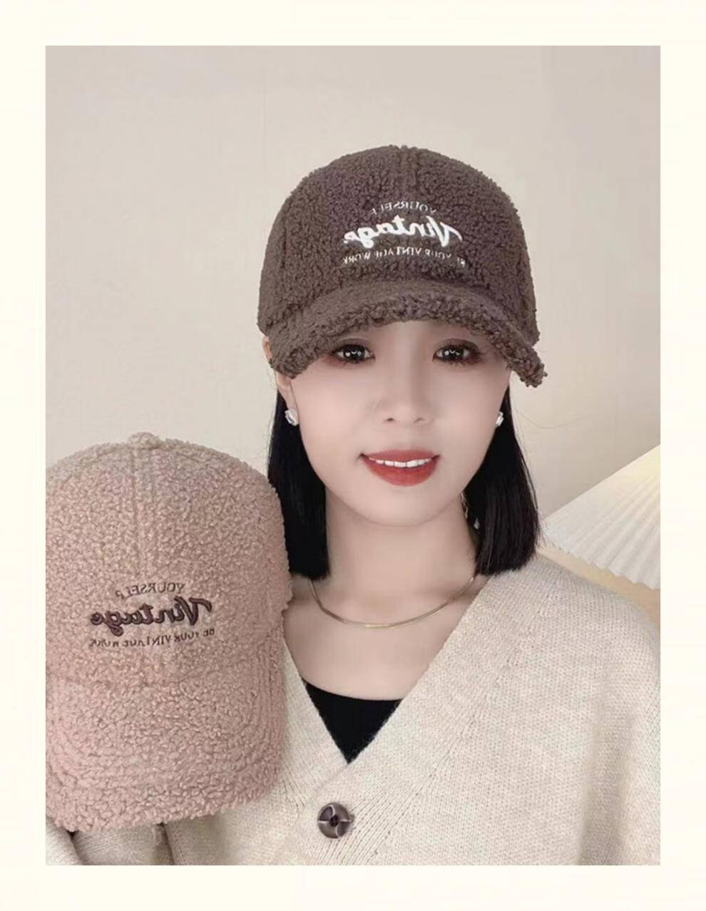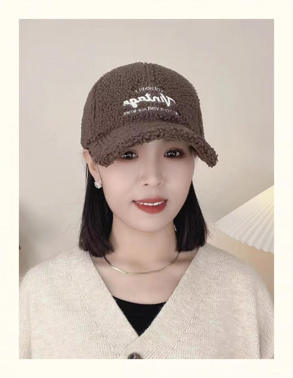 Yu Zhaolin Lamb Plush Baseball Cap Women's Autumn and Winter New Fashion Versatile Warm Furry Peaked Cap Cute Sun Hat Khaki M (54-58c) Adjustable