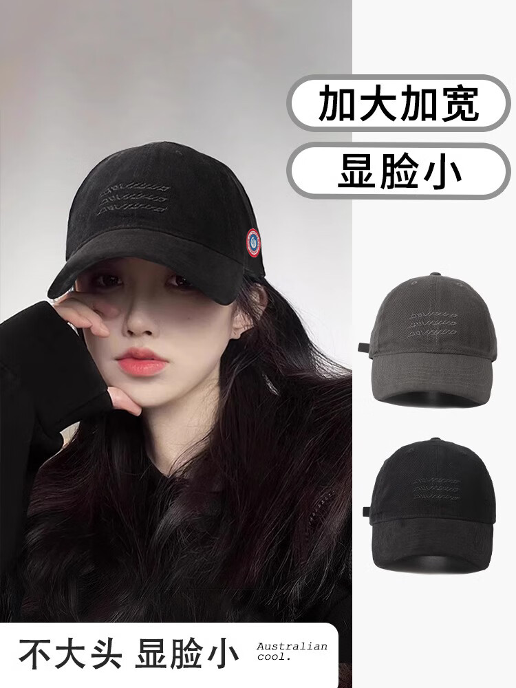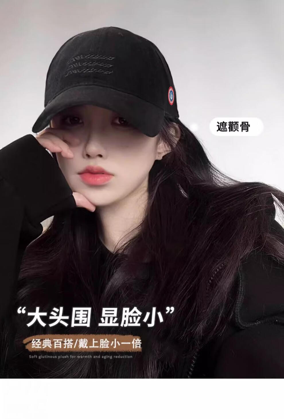 SCOTT GOOSE Baseball Cap Women's 2025 New Fashion Simple Personality Showing Face Small Retro Sunscreen Peaked Cap Korean Version Versatile Hat Dark Black M Adjustable (54-60cm)