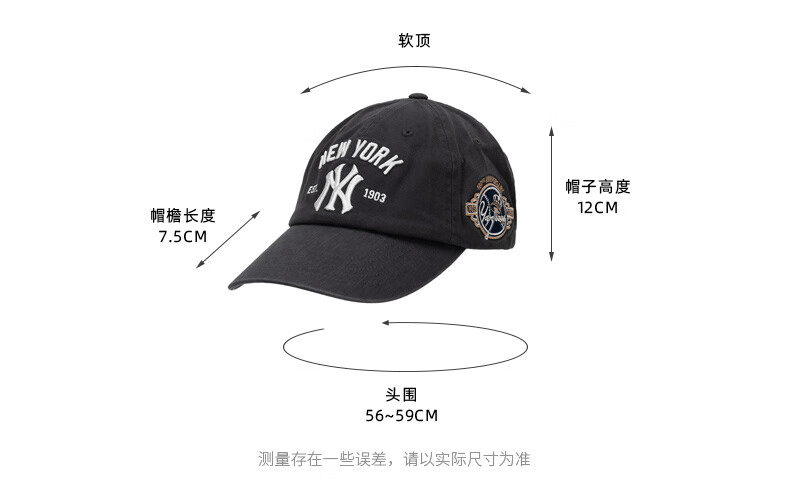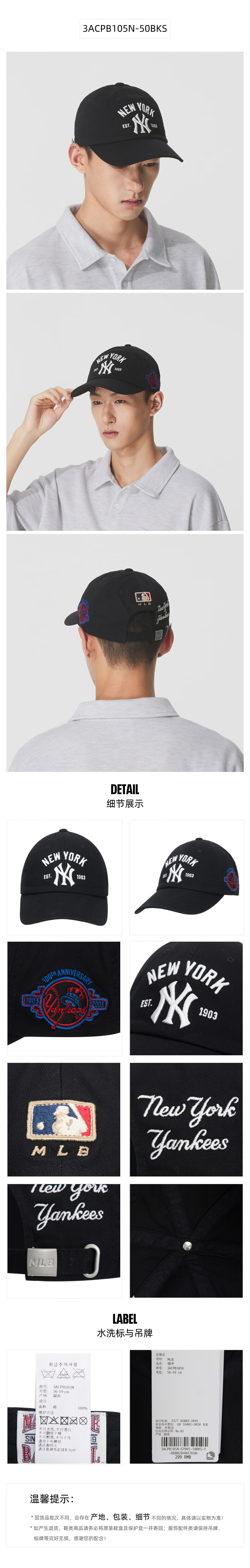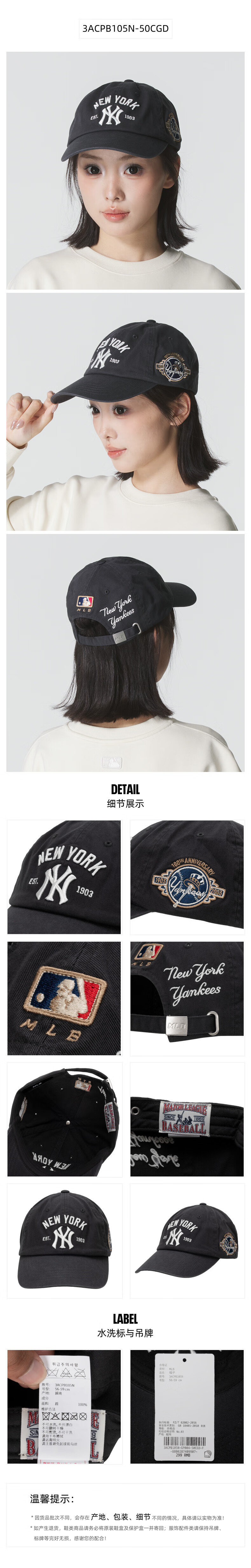 Major League Baseball (MLB) official Zhang Linghe same style hat for men and women, fashionable summer sun visor baseball cap, peaked cap, big head outdoor hat, New York Yankees/black/KARINA same style, one size F