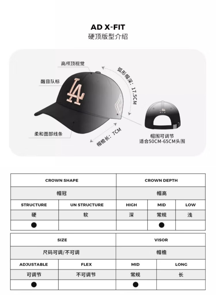MLB men's and women's embroidered LOGO sports fashion hard-top baseball caps Los Angeles Dodgers/Black/Large Logo F