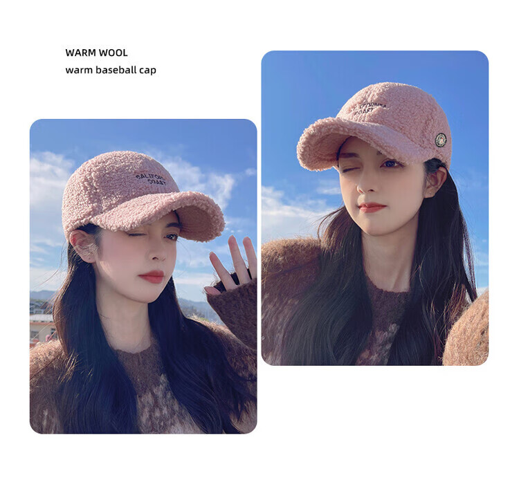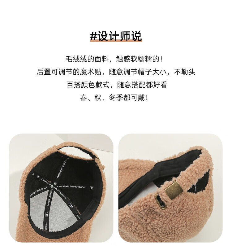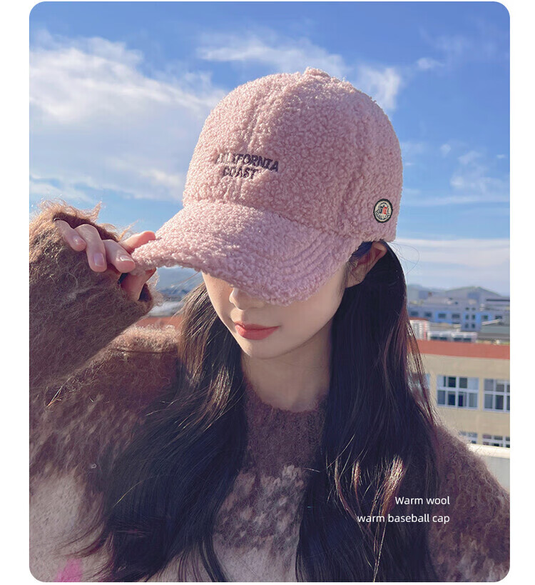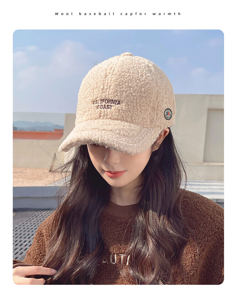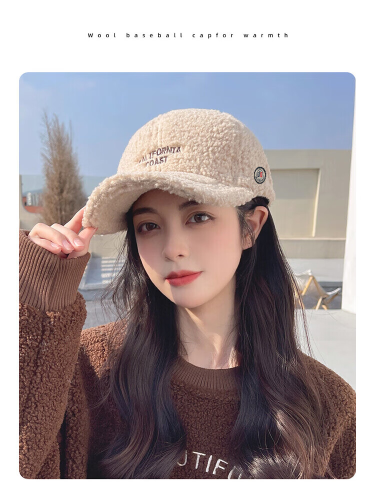 Mengbilin new lamb wool hat for women in autumn and winter, fashionable and versatile plush peaked cap, thickened warm cotton hat, baseball cap, beige, one size fits all, adult one size adjustable