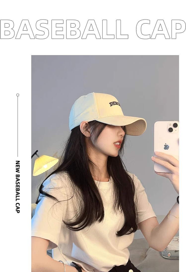 Korean fashion baseball hat for women 2025 new summer big head circumference showing face small versatile men's sun protection hat beige-1 piece
