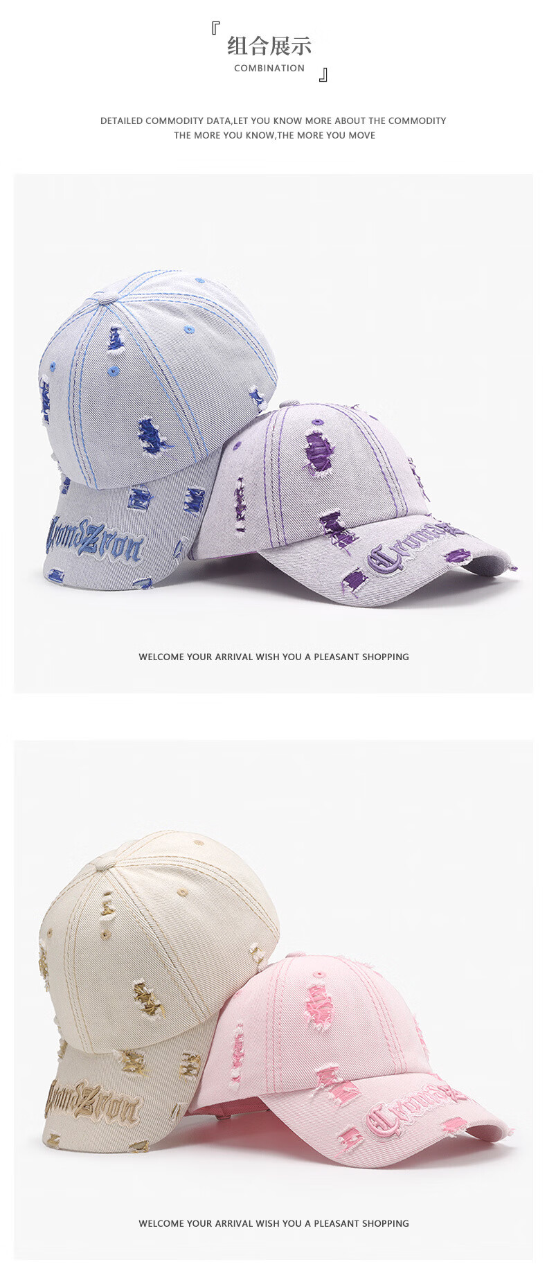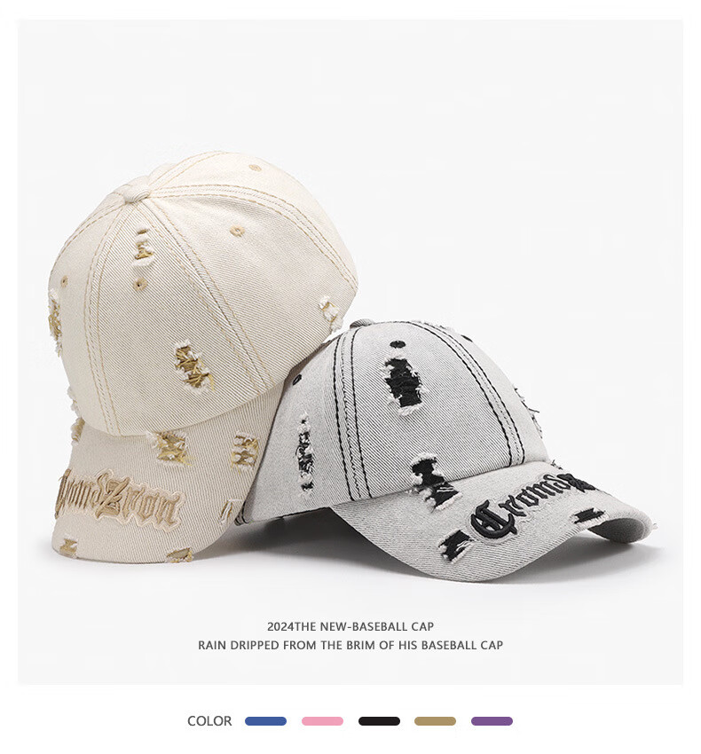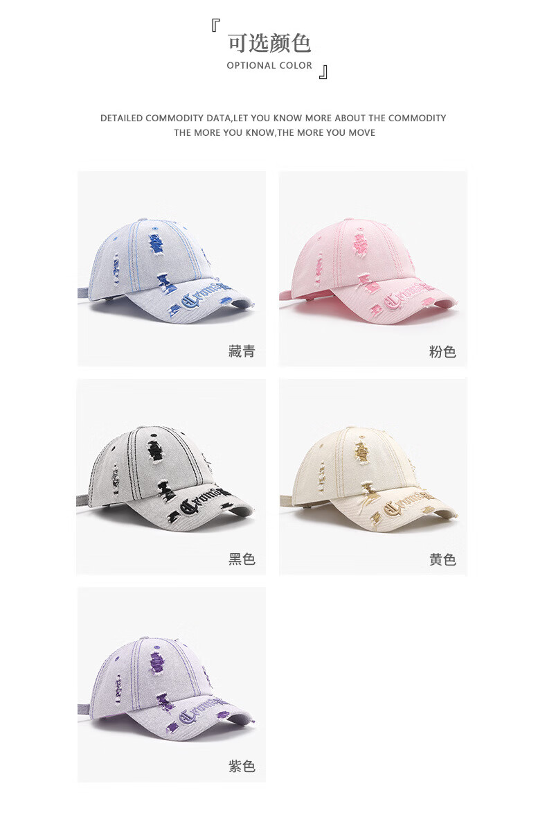 WAYKEA spring color-blocked hole letter embroidery men's large head circumference personalized fashion baseball cap women's outdoor curved brim 24A124 pink adjustable