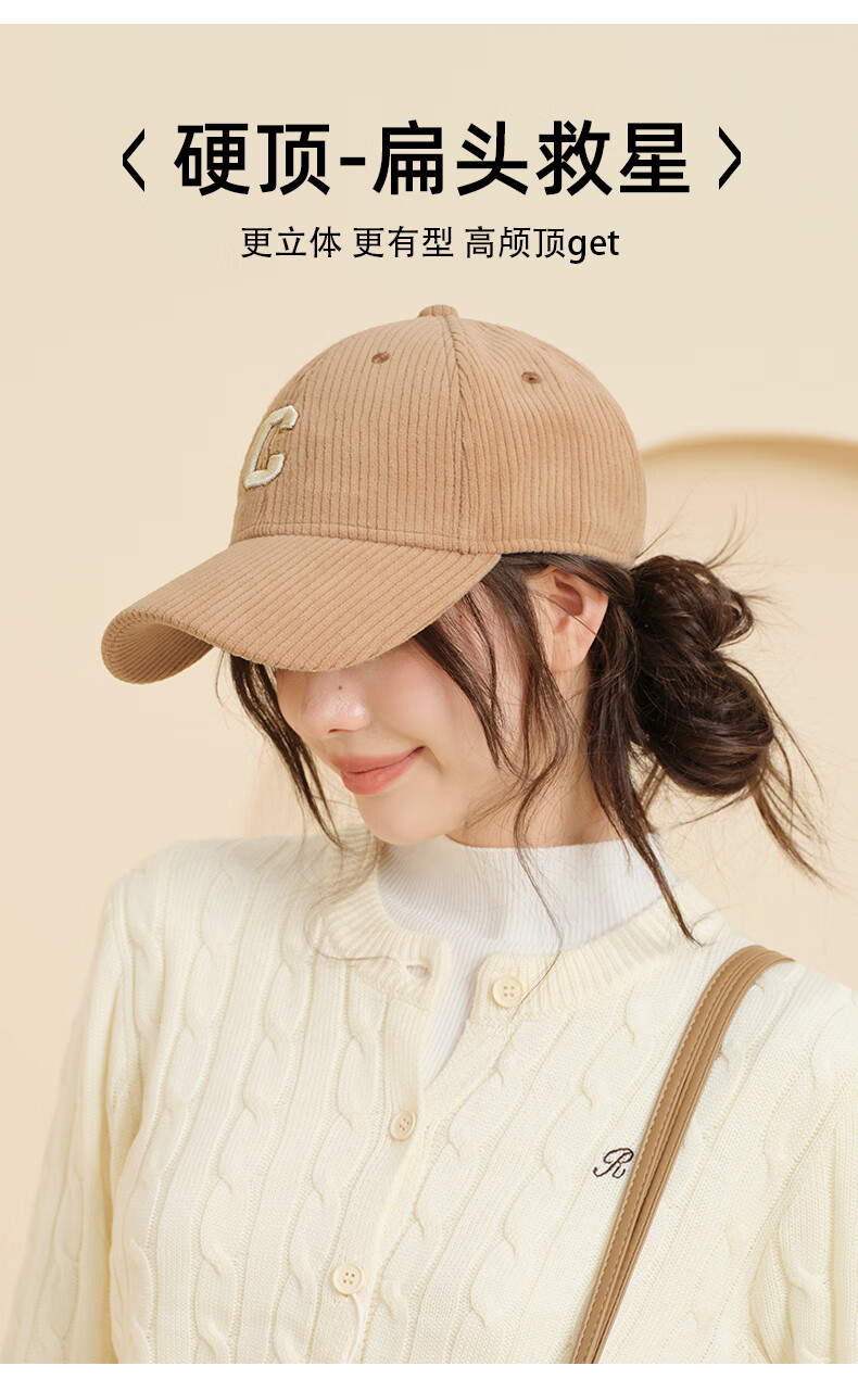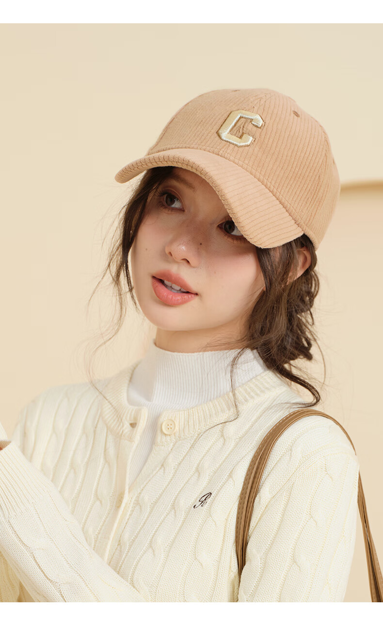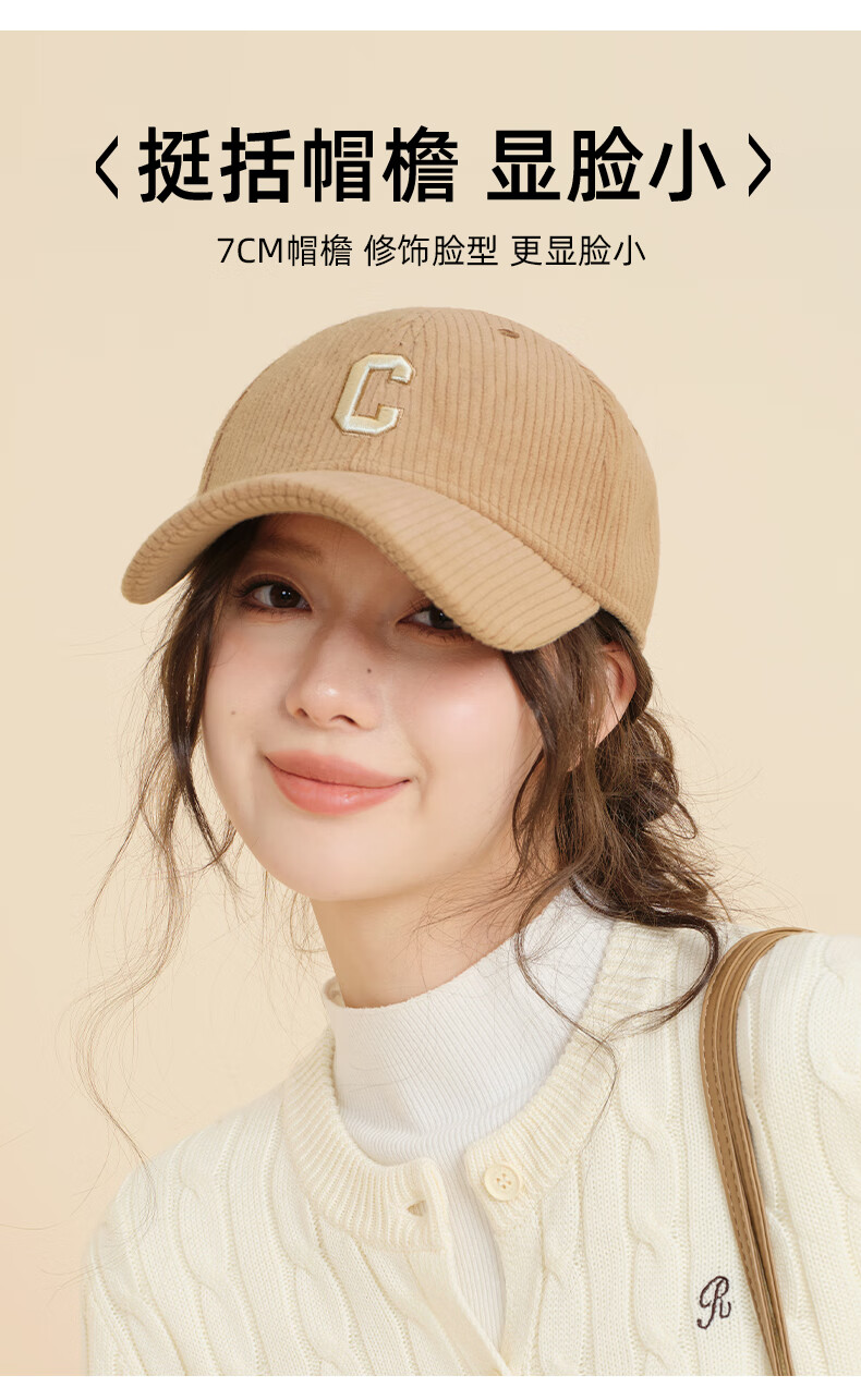 CACUSS Autumn and Winter Baseball Cap Women's New Fashion Versatile Face Revealing Small Hat Warm Cycling Peaked Cap Large Head Circumference Light Coffee Adjustable (57-59cm)