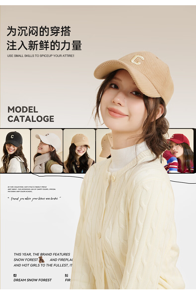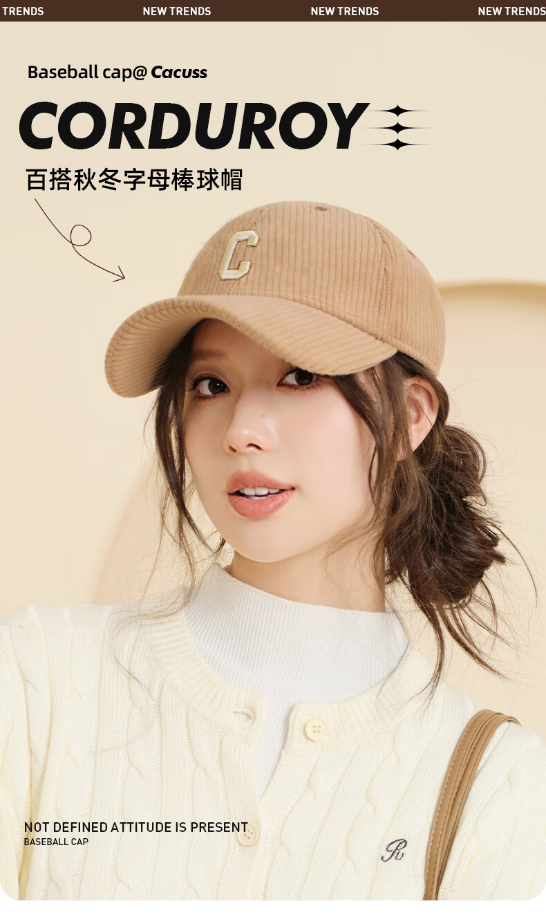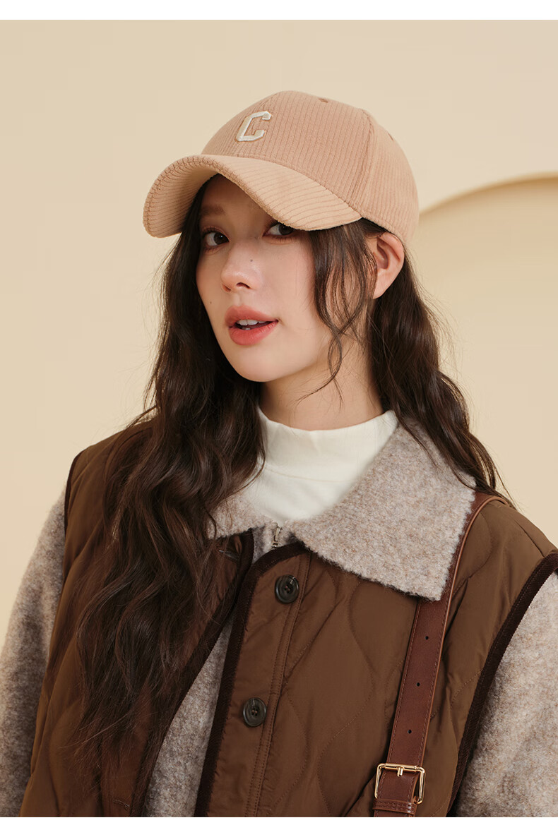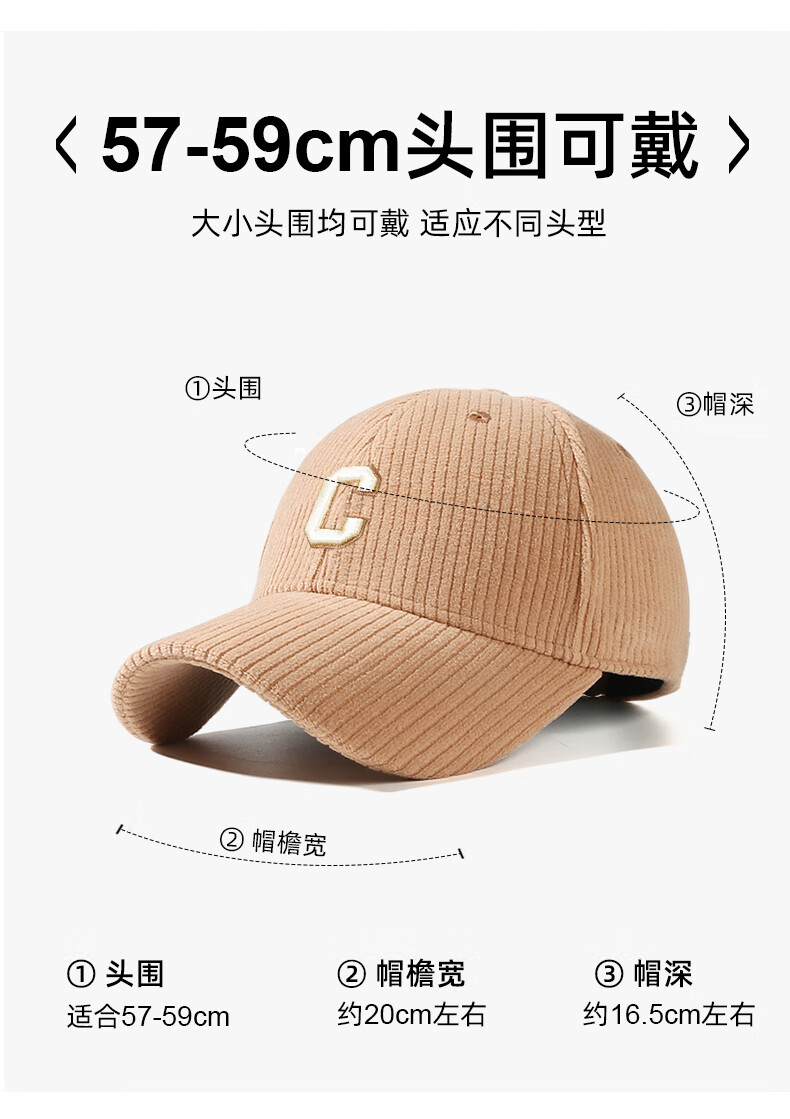 CACUSS Autumn and Winter Baseball Cap Women's New Fashion Versatile Face Revealing Small Hat Warm Cycling Peaked Cap Large Head Circumference Light Coffee Adjustable (57-59cm)