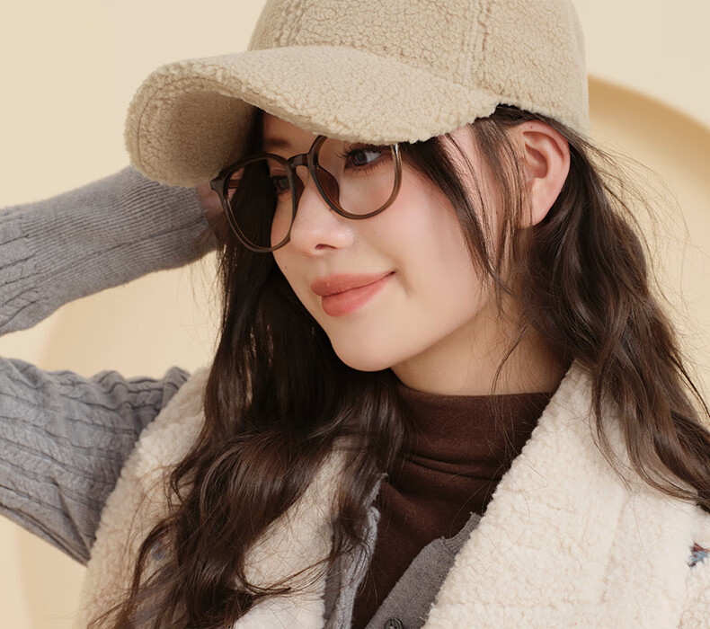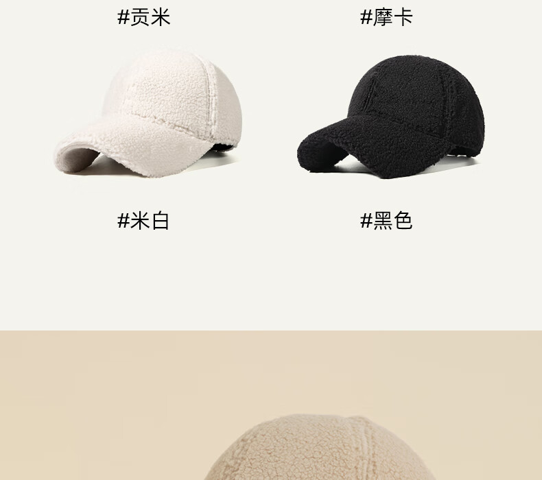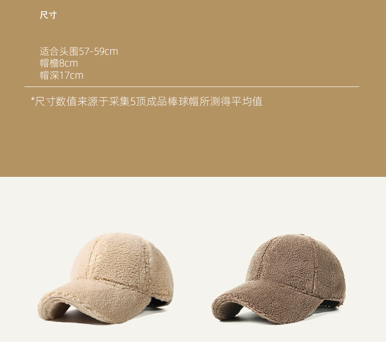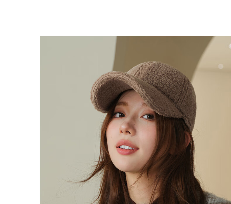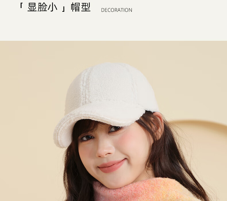 CACUSS hat women's autumn and winter new fashion baseball cap imitation lamb velvet thickened warm face small duck cap for men Gongmi_ long main recommendation one size (56-59CM)