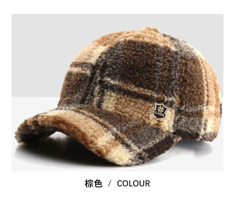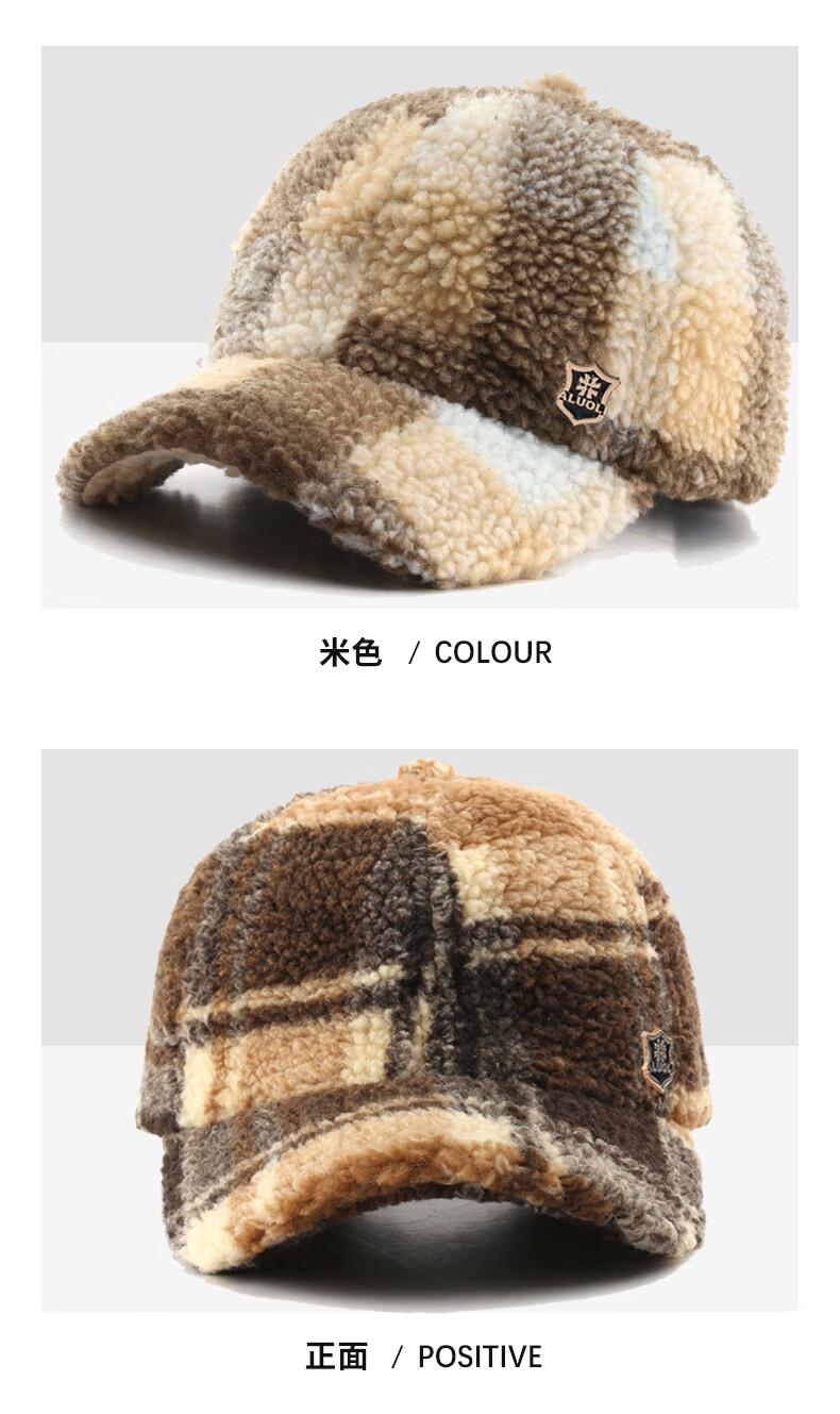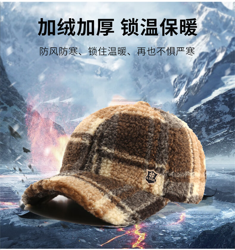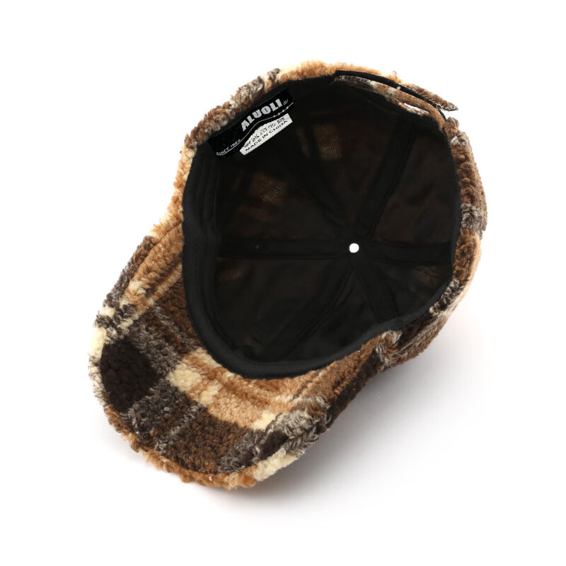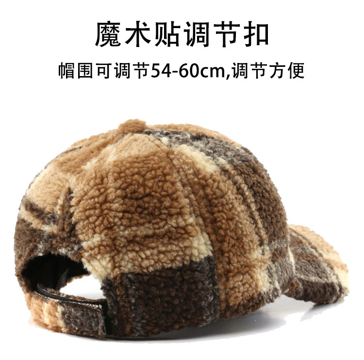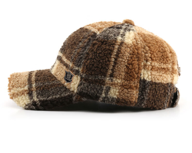 Winter Hat Women's Warm Lamb Wool Baseball Cap Men's Peaked Cap Fashion Trendy Brand Plaid Sun Hat Brown Adjustable (54-60cm)