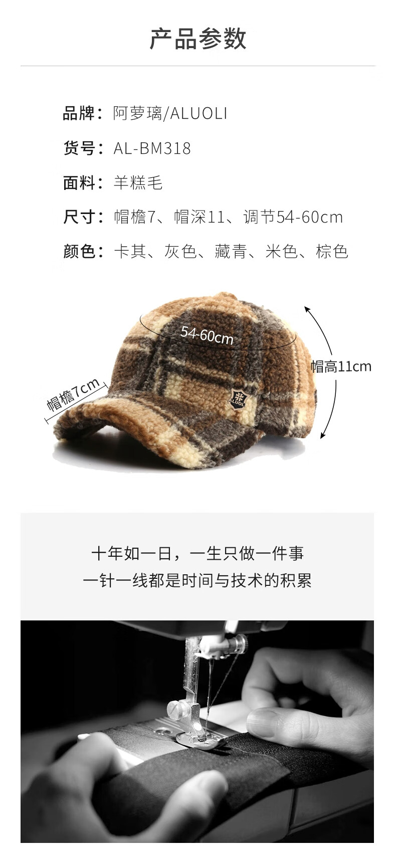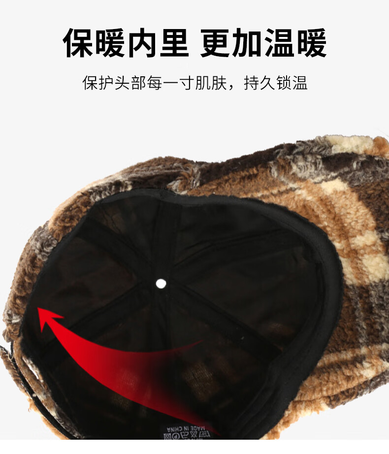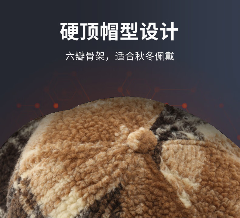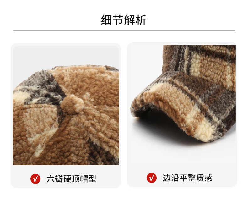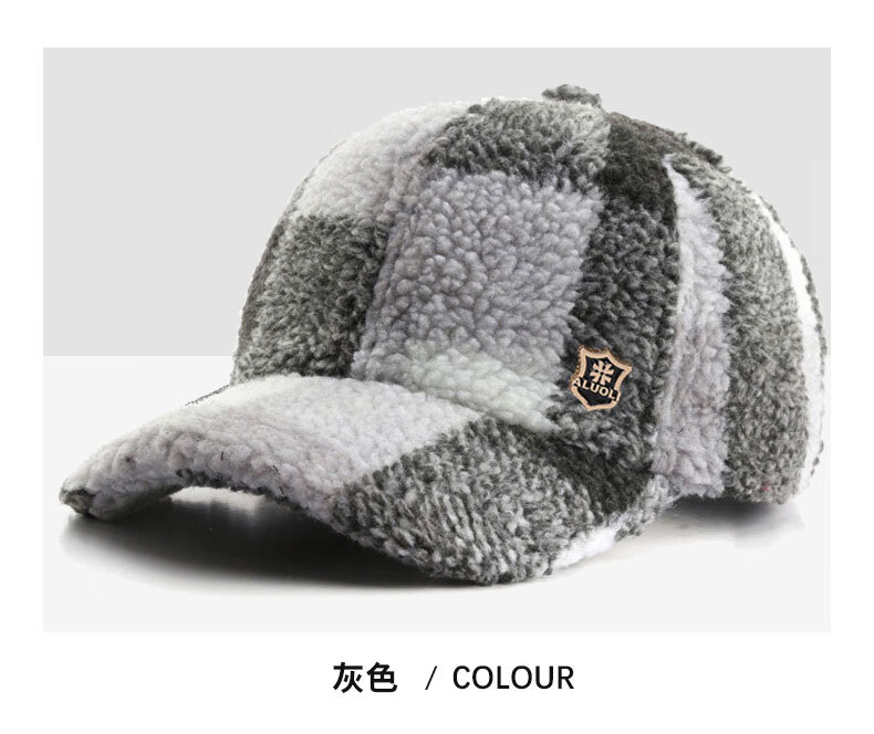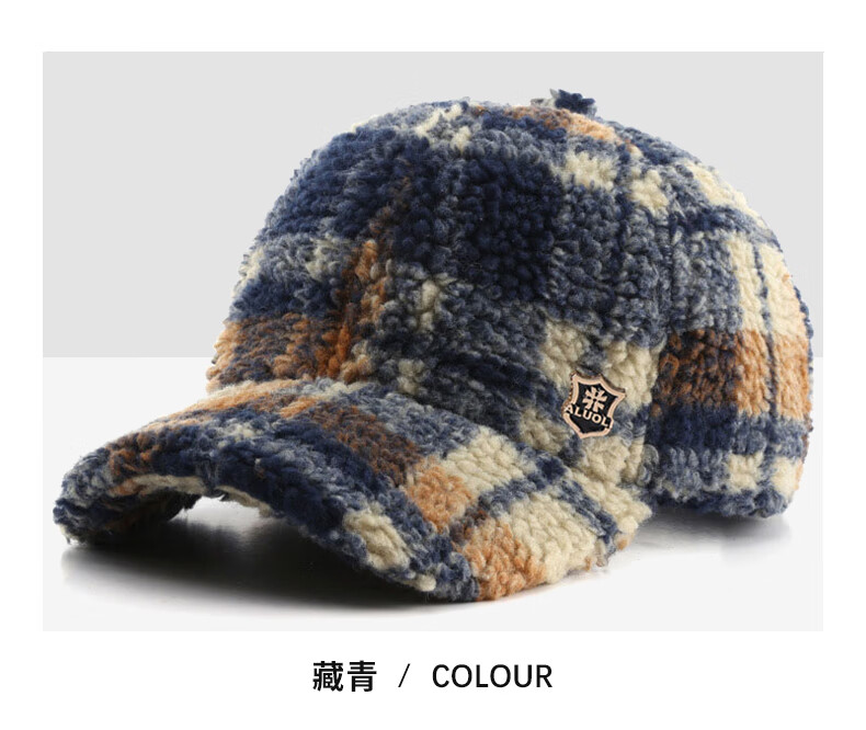 Winter Hat Women's Warm Lamb Wool Baseball Cap Men's Peaked Cap Fashion Trendy Brand Plaid Sun Hat Brown Adjustable (54-60cm)